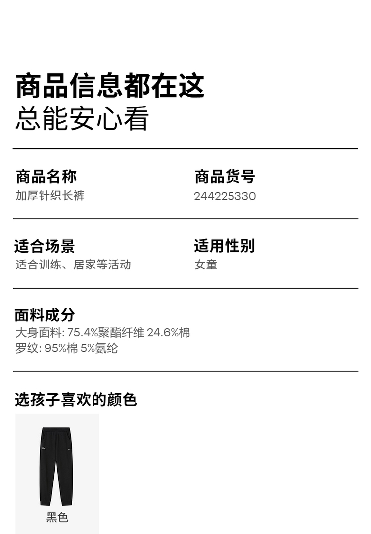 【品牌直发】Under Armour安德玛男女童加厚针织长裤244225330超低折扣