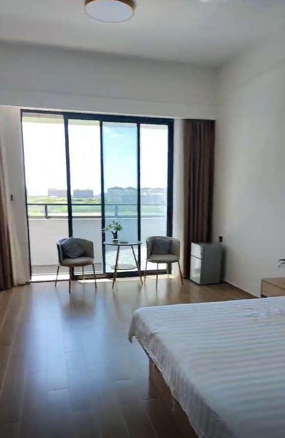 房间配备:沙发桌椅、洗衣机、电冰箱、热水器、电视、空调,WIFI、衣柜等,所有房型都有阳台
