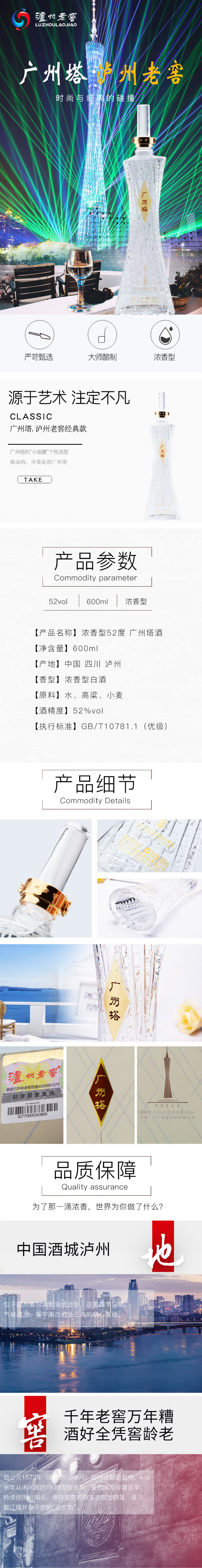 【单瓶298】泸州老窖 广州塔 浓香型白酒 52度 600ml单瓶 拍4发原箱