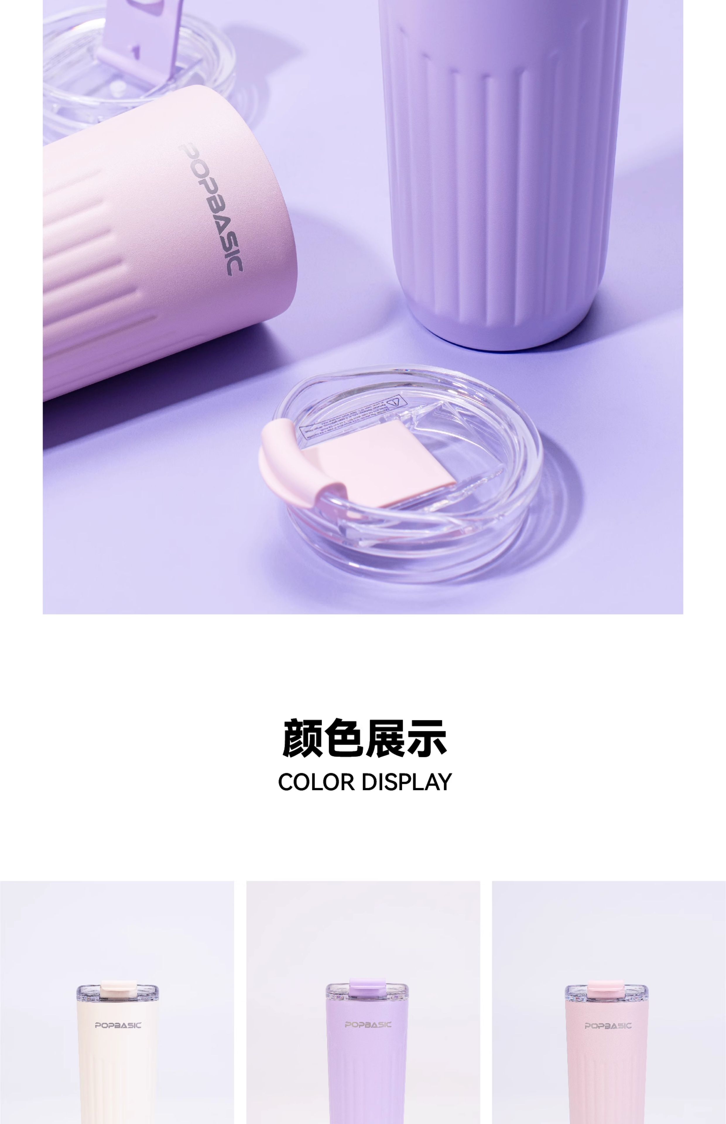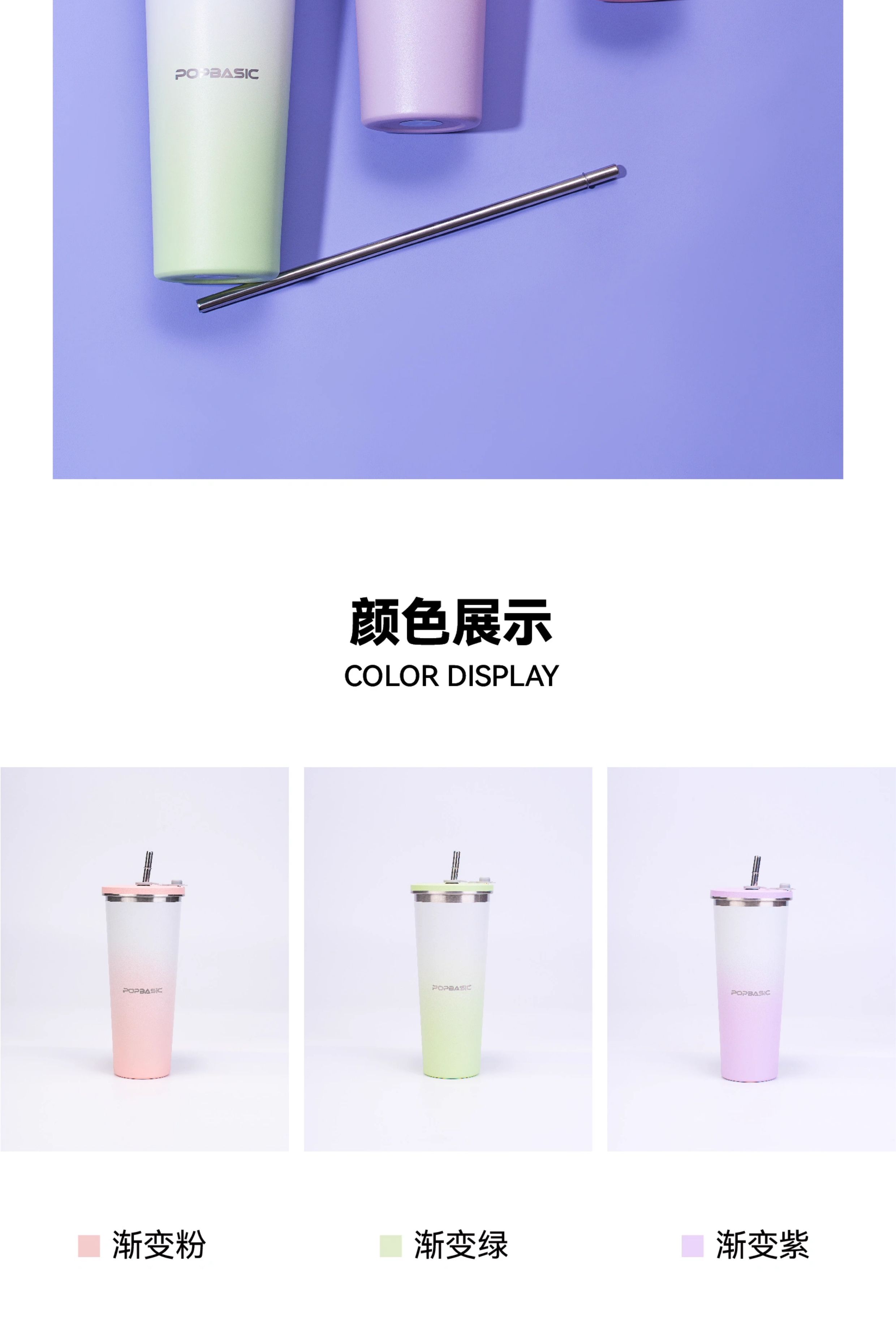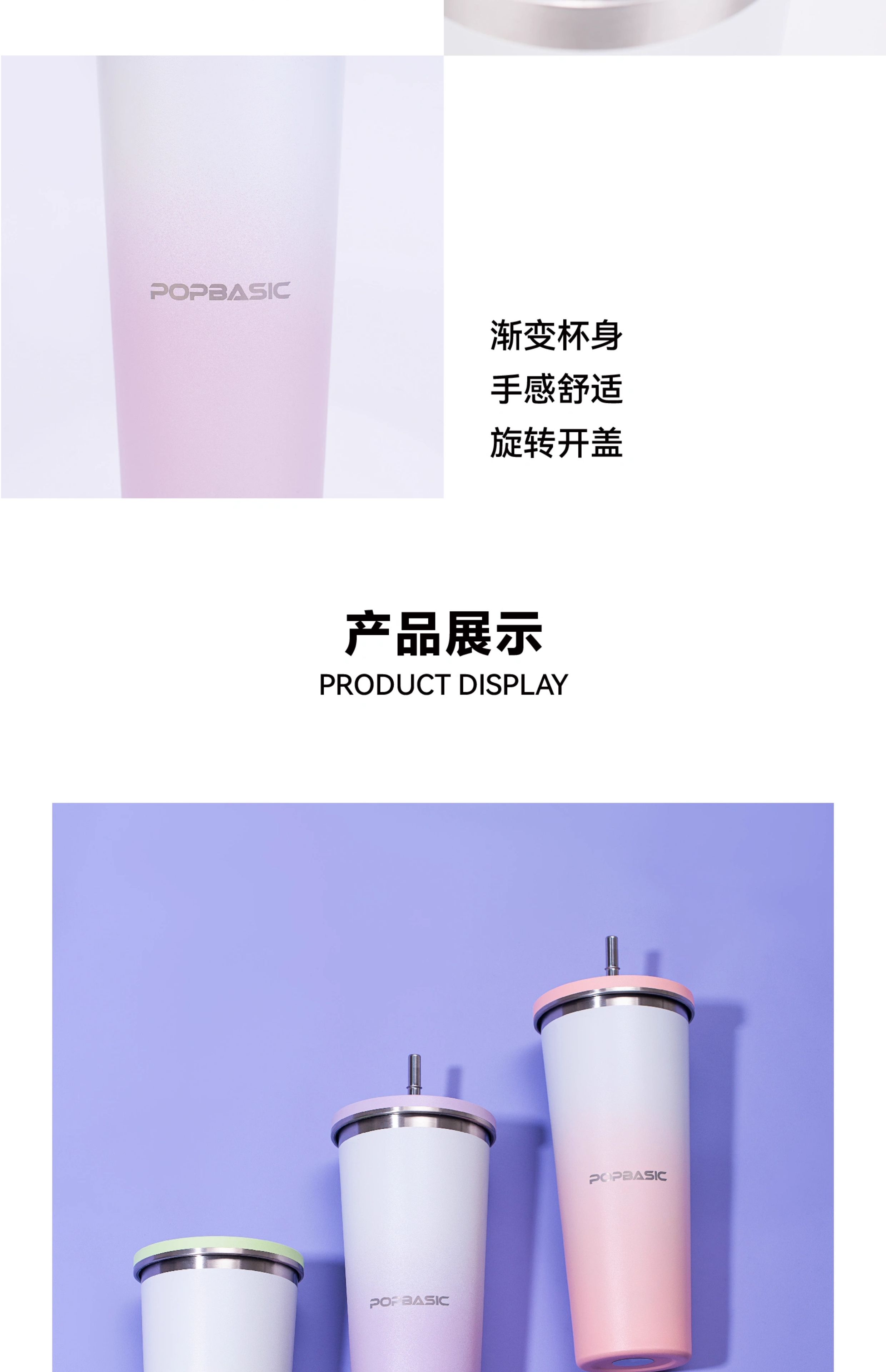 POPBASIC 新款简约高颜值咖啡杯保温保冷便携直饮水杯304不锈钢