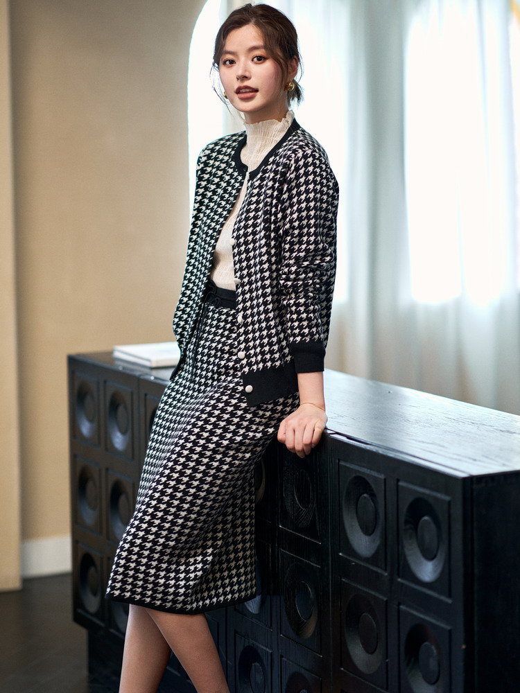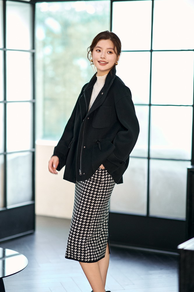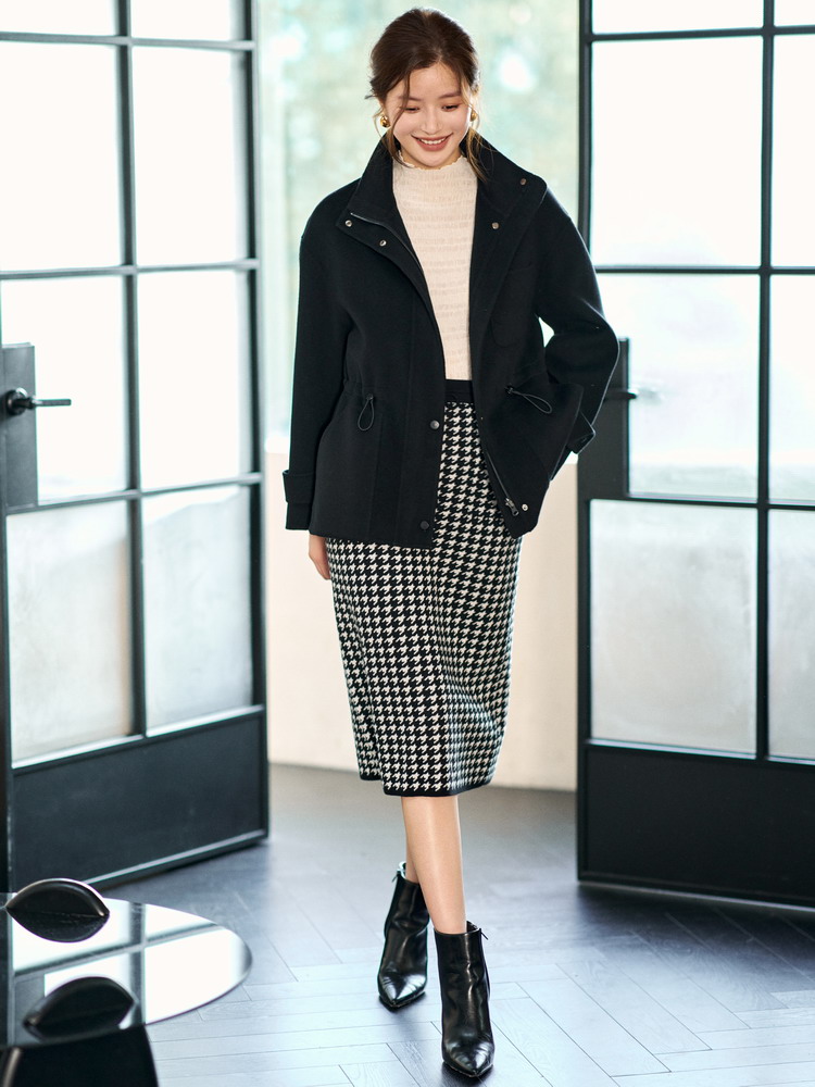 23区日系春季通勤棉羊毛混纺针织半身裙松紧腰直筒一步裙商场同款