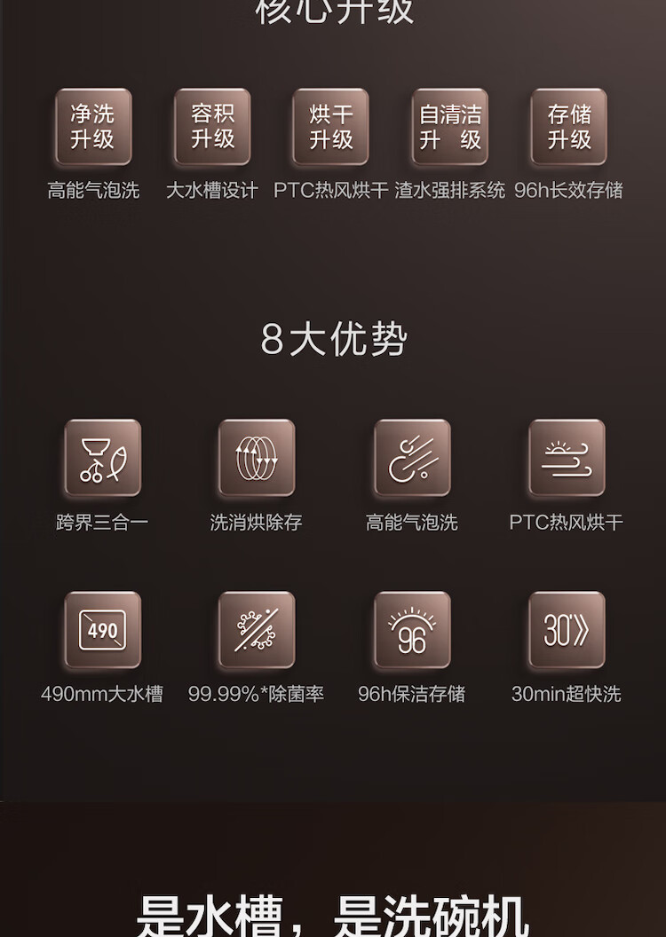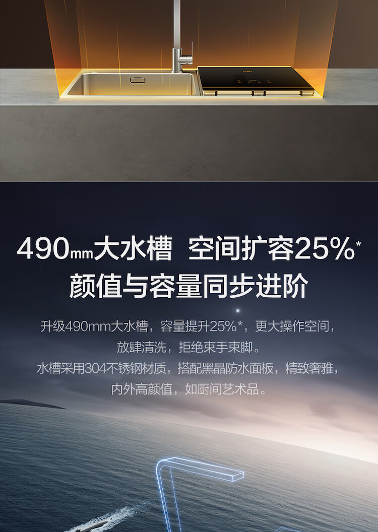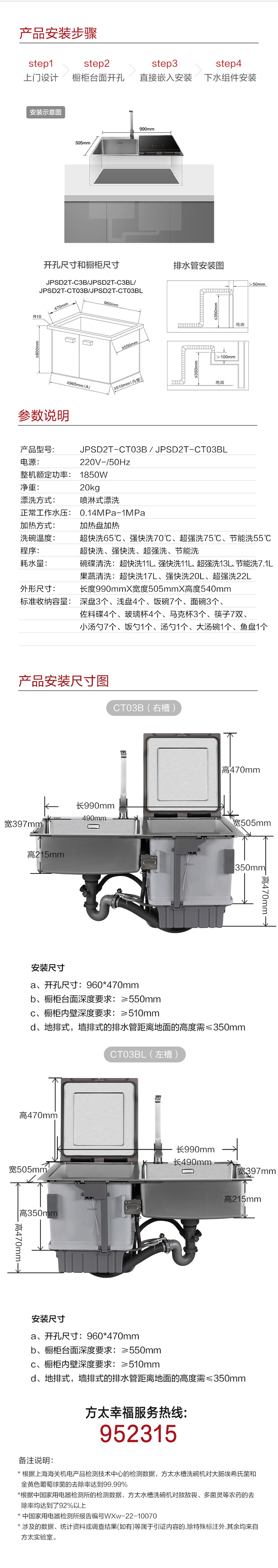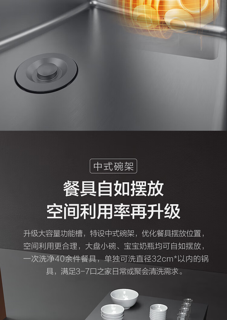 方太水槽洗碗机家用 高能气泡洗 升级41升大容量水槽 跨界三合一 加强除菌 洗海鲜果蔬去农残CT03BL