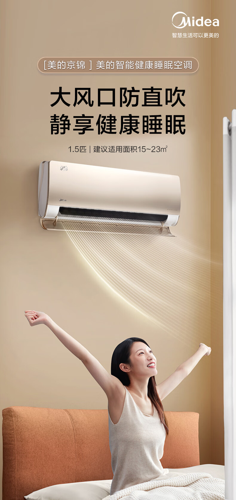 美的(Midea)空调 1.5匹 京锦 新一级能效变频空调挂新KFR-35GW/BDN8Y-QJ200(1)A