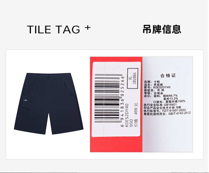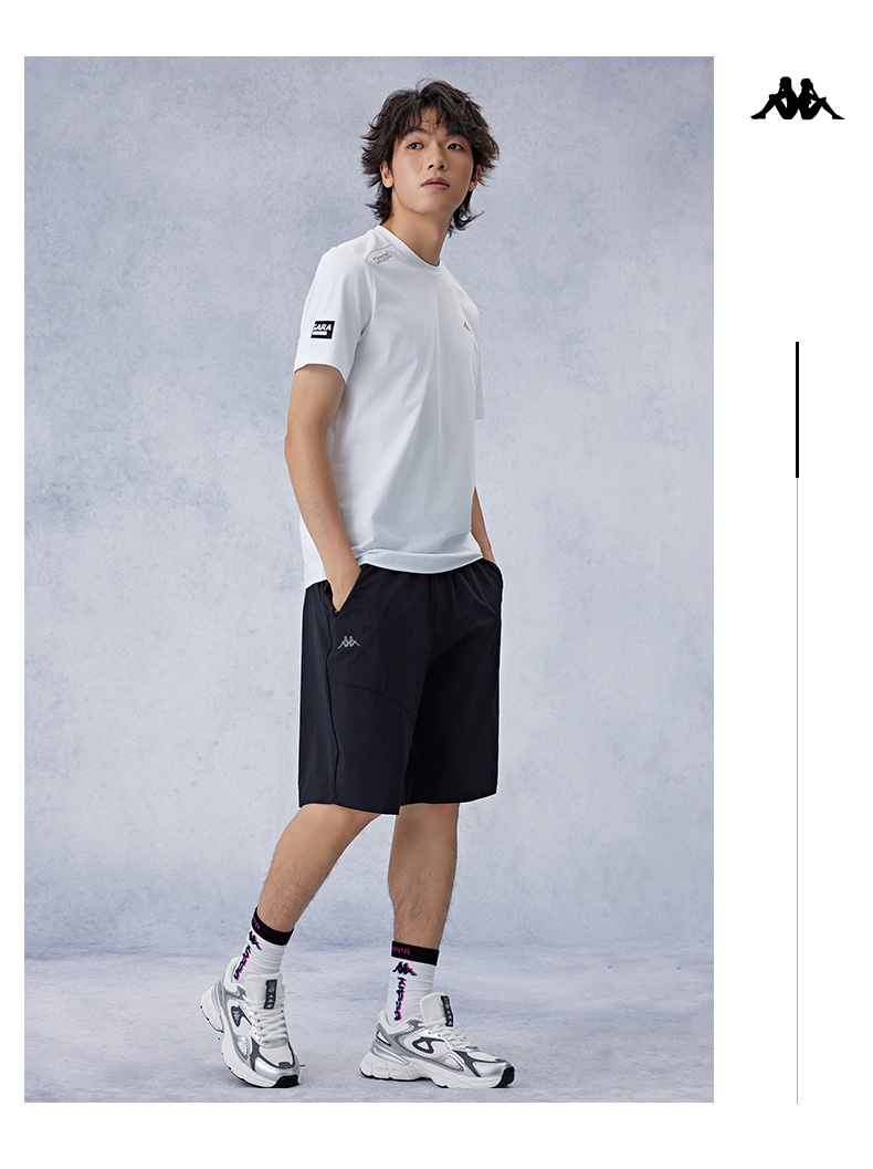 Kappa卡帕背靠背防泼水弹力跑步运动短裤男士美式球裤训练五分裤K0E52DY40