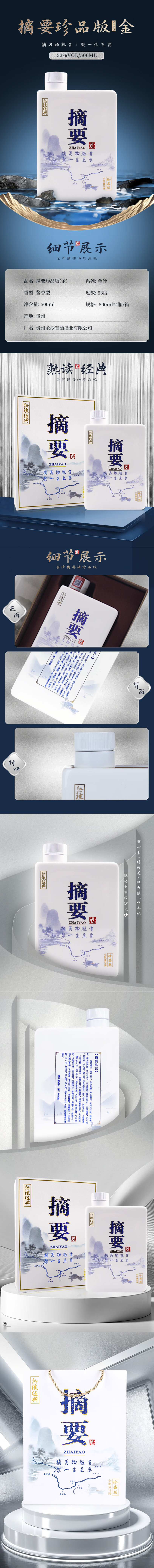 【高端品鉴】2021年 金沙摘要酒珍品版 摘要酒金 酱香型白酒 53度 500ml单瓶 500ml*4原箱