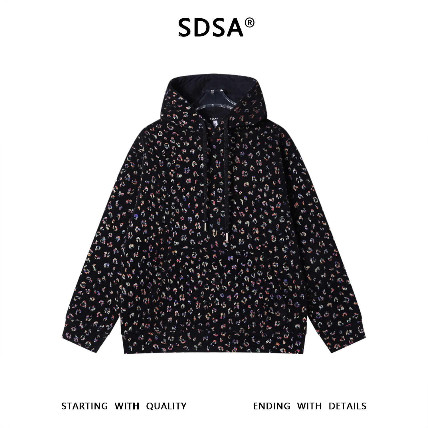 WY1430SDSA男士秋冬新款痞帅男装韩版满印彩色刺绣抽绳连帽卫衣百搭时尚