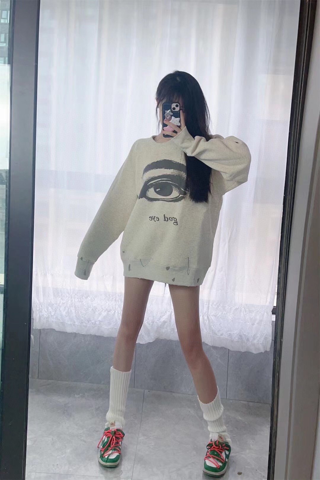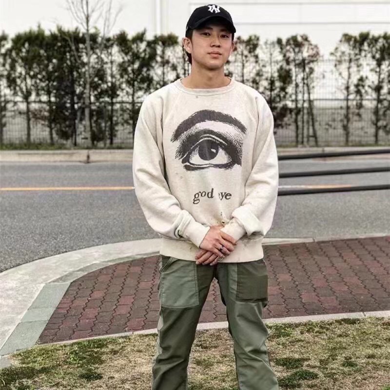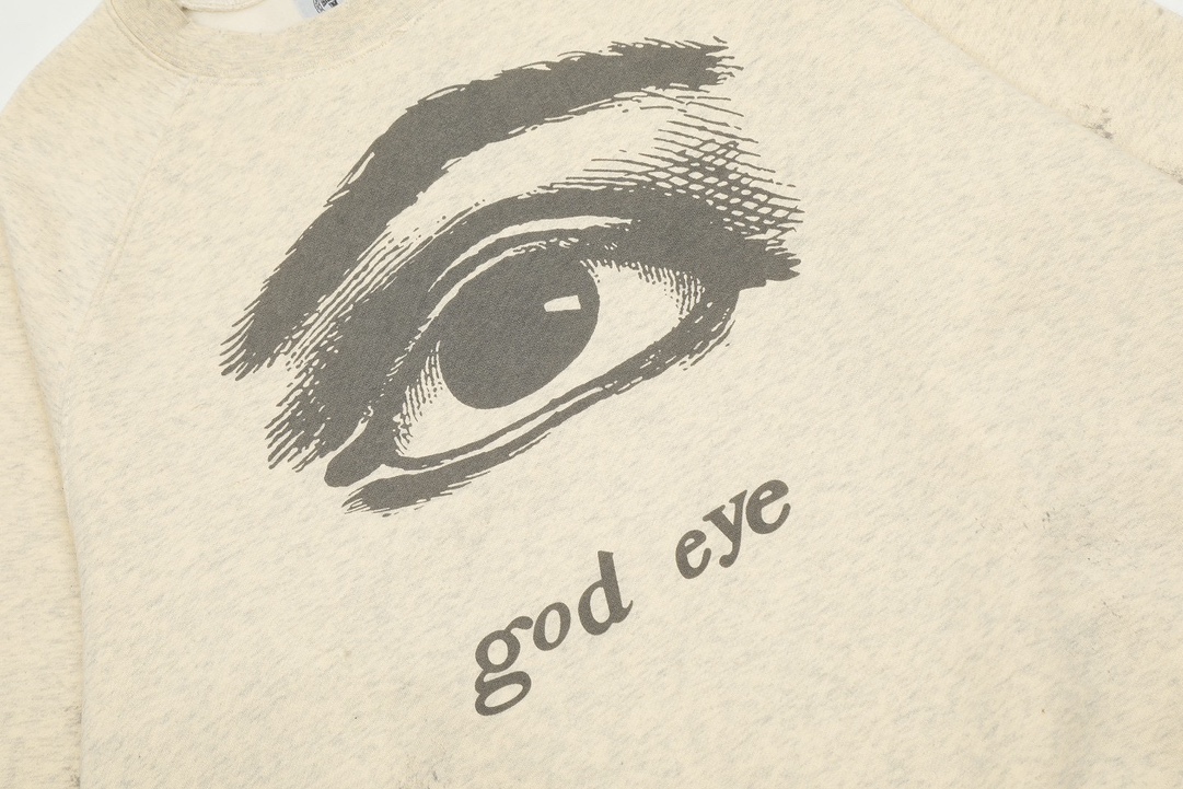 Saint Michael god eyes printed vintage raglan sweatshirt复古洗水风格眼睛卫衣 颜色:洗水灰