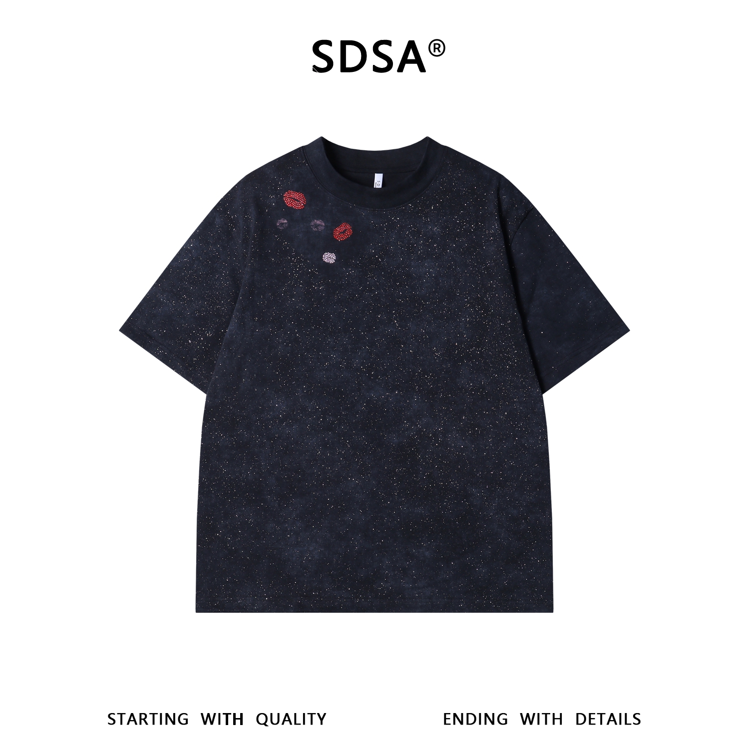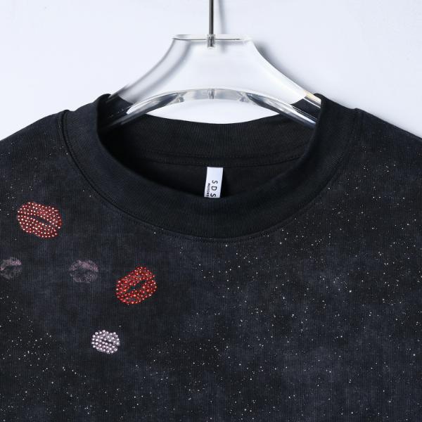 26T171SDSA男装2026新款高贵轻奢韩版撞色烫钻红唇设计圆领短袖T恤百搭