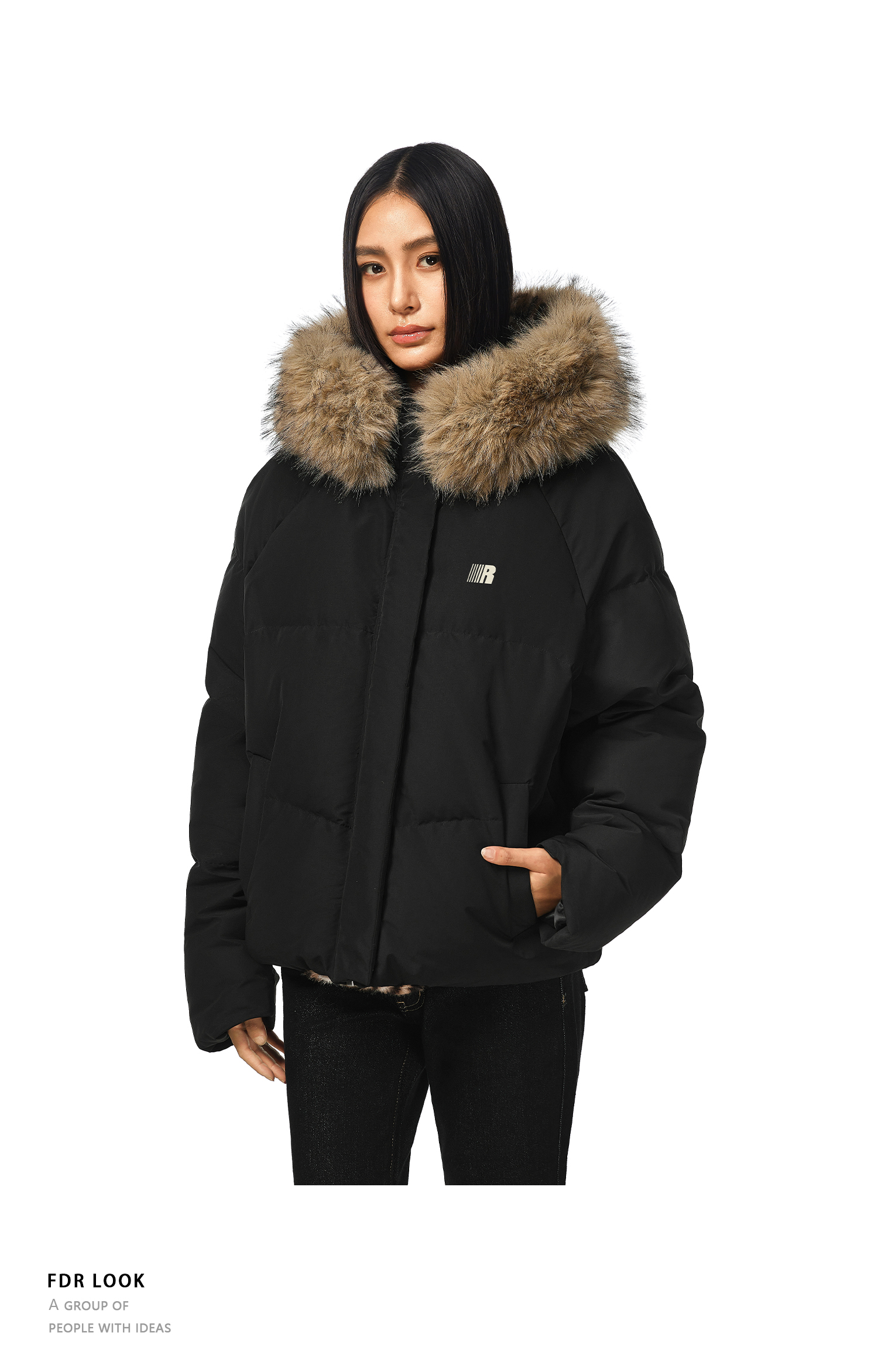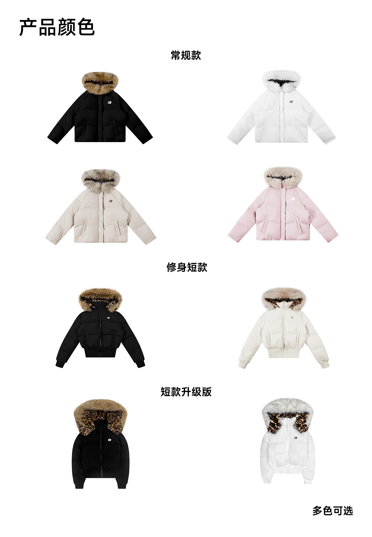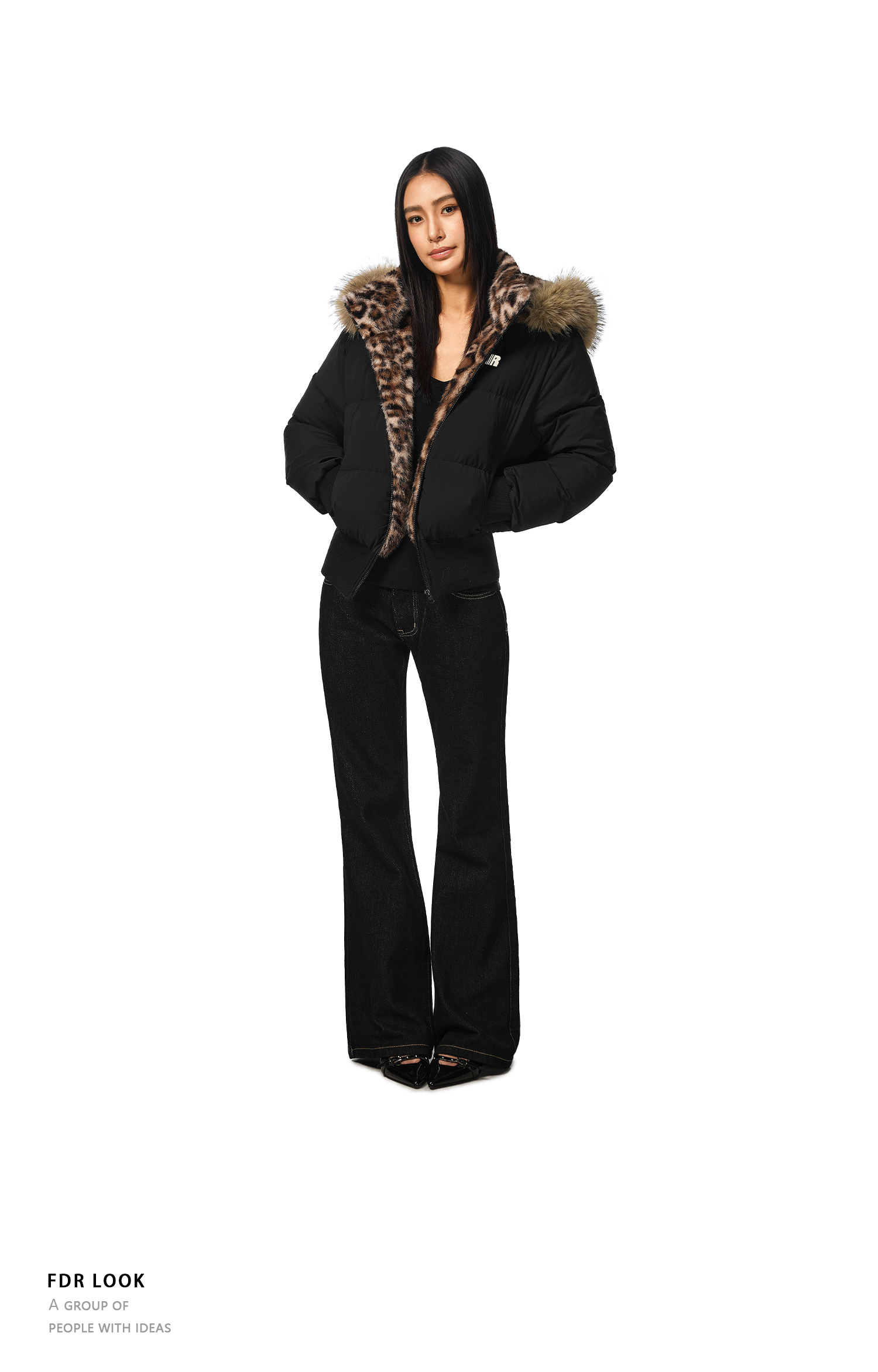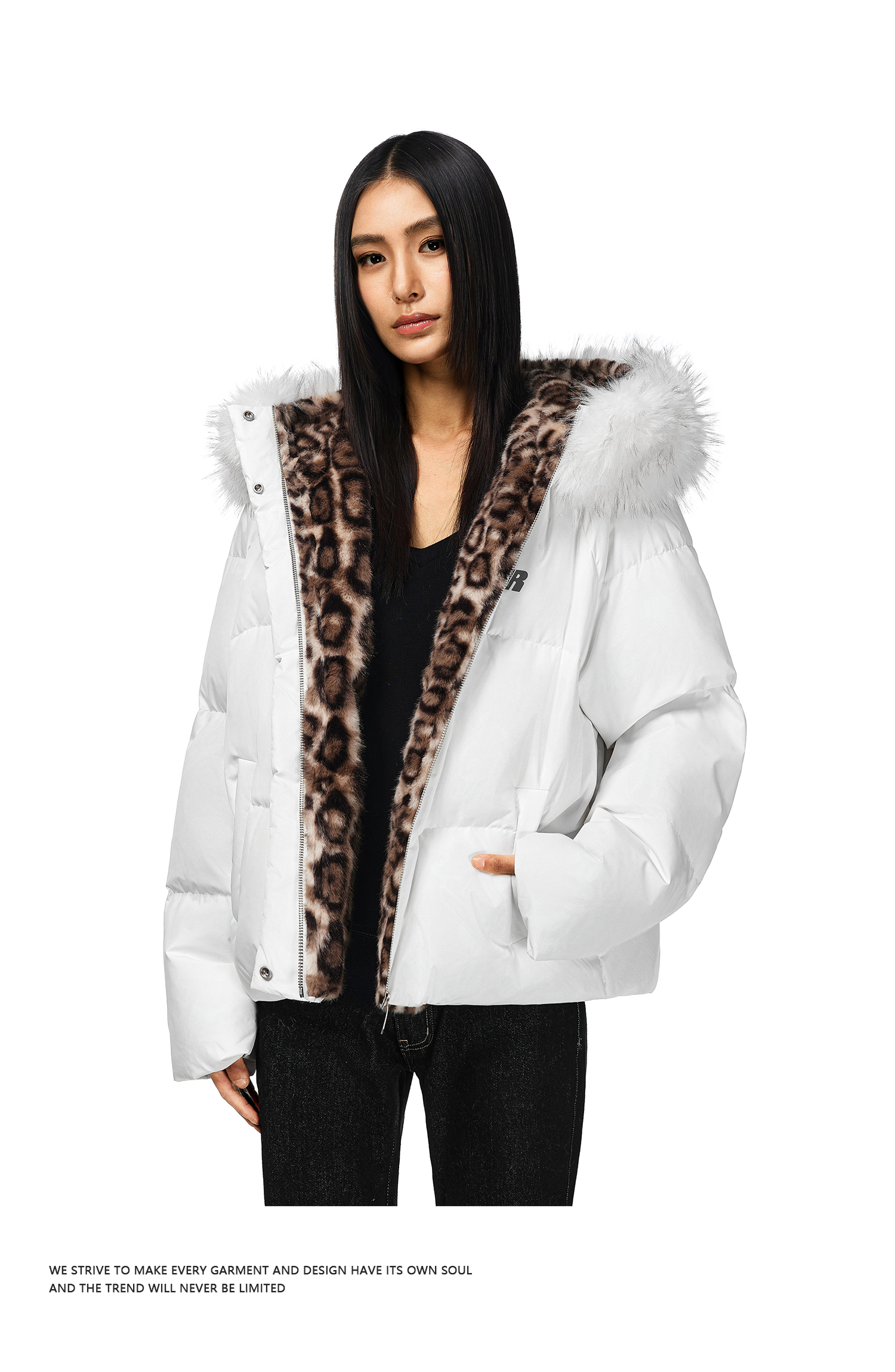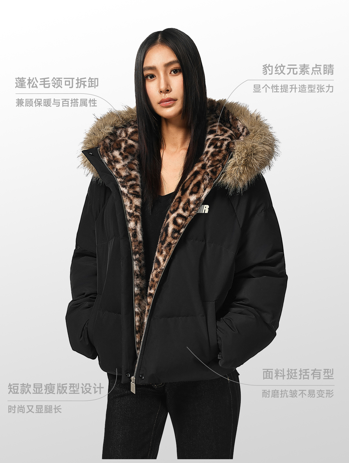 FDR官方店 连帽毛领拼接豹纹外套男款2025巨好看的羽绒服冬季女款