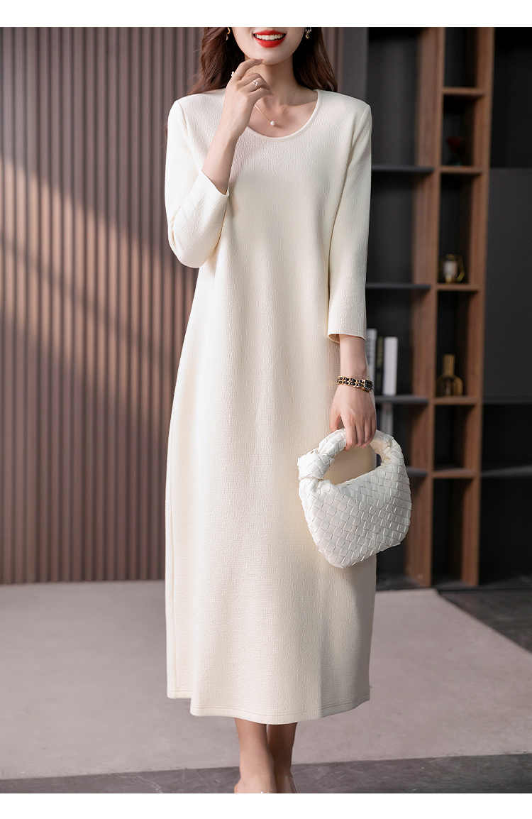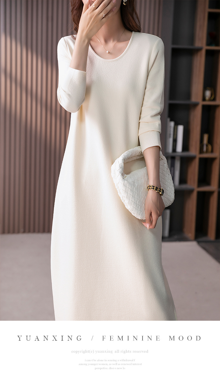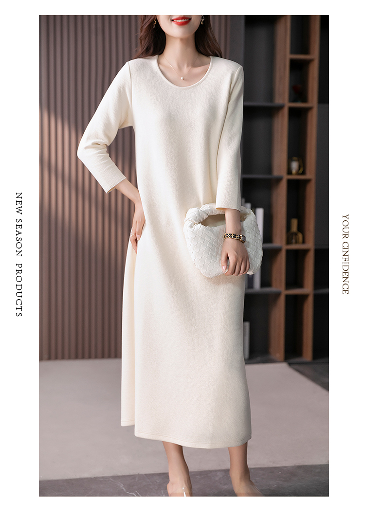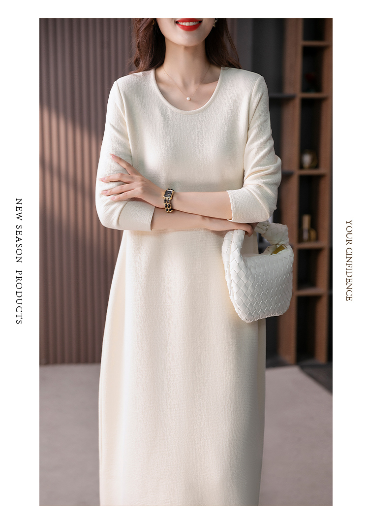 89167原形U领显瘦连衣裙女肌理感2024春季新款休闲宽松长裙子高级感