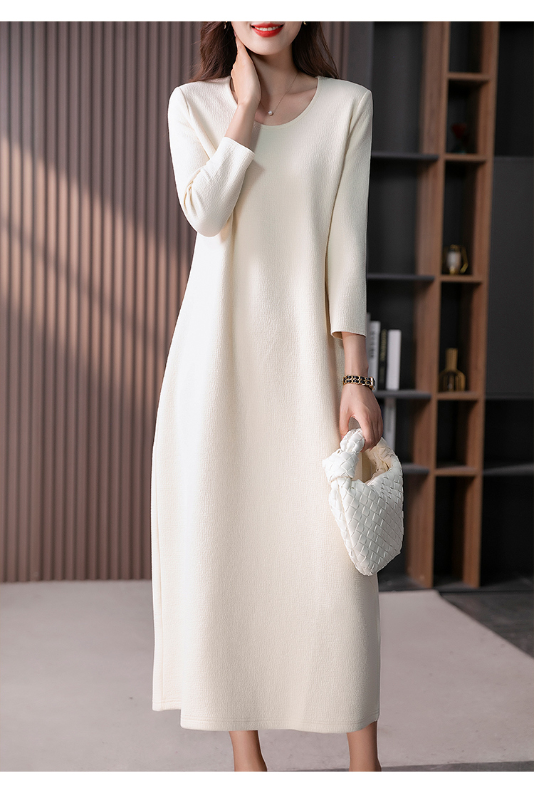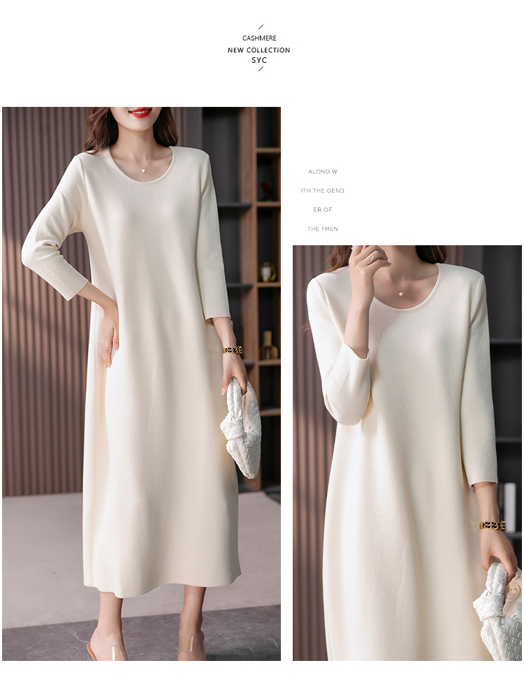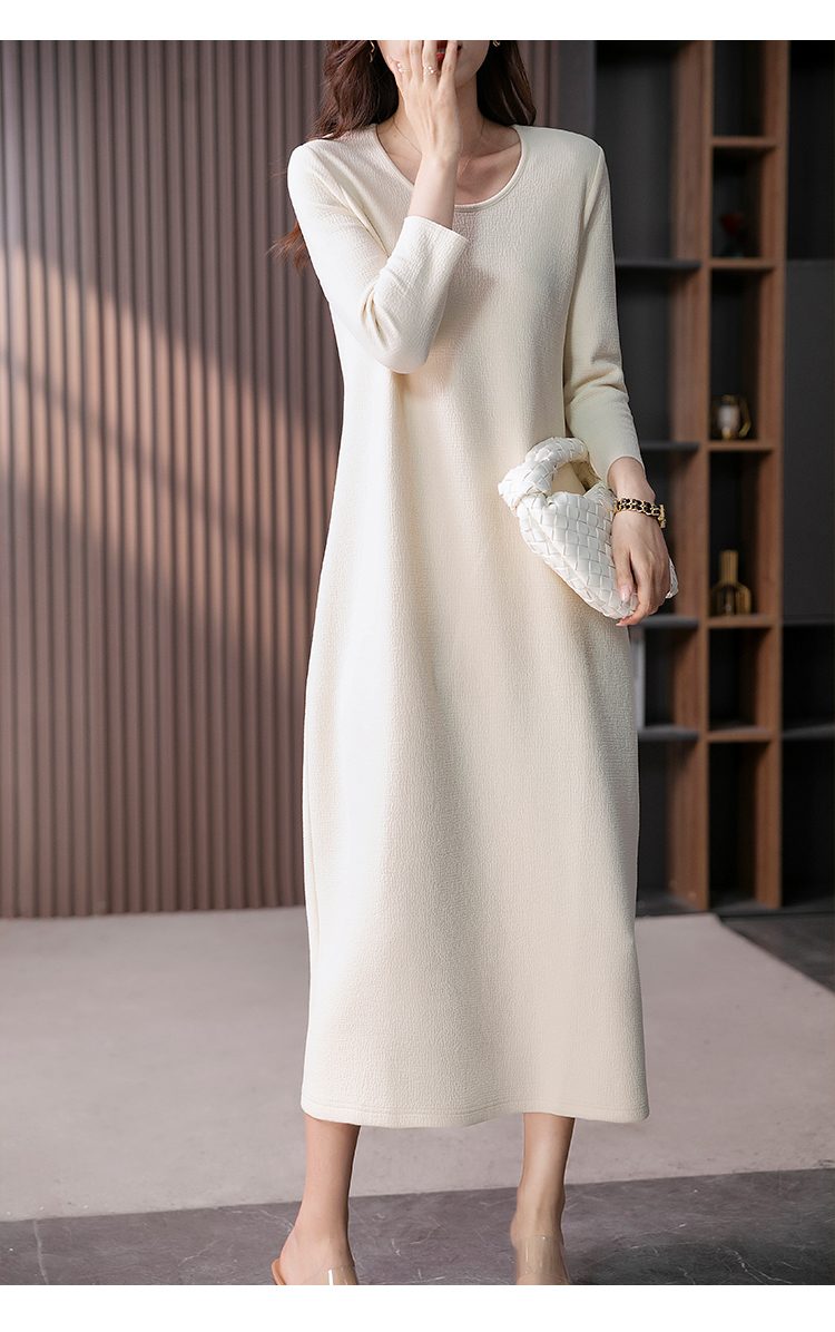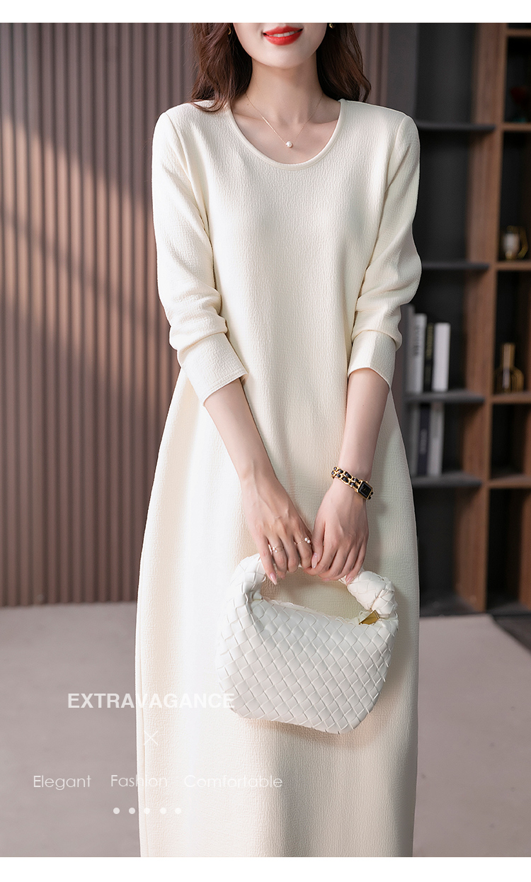 89167原形U领显瘦连衣裙女肌理感2024春季新款休闲宽松长裙子高级感