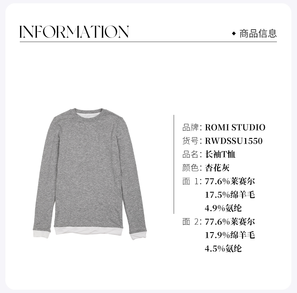 ROMI STUDIO“双面两穿”19.5μm超细羊毛撞色长袖T恤 RWDSSU1550