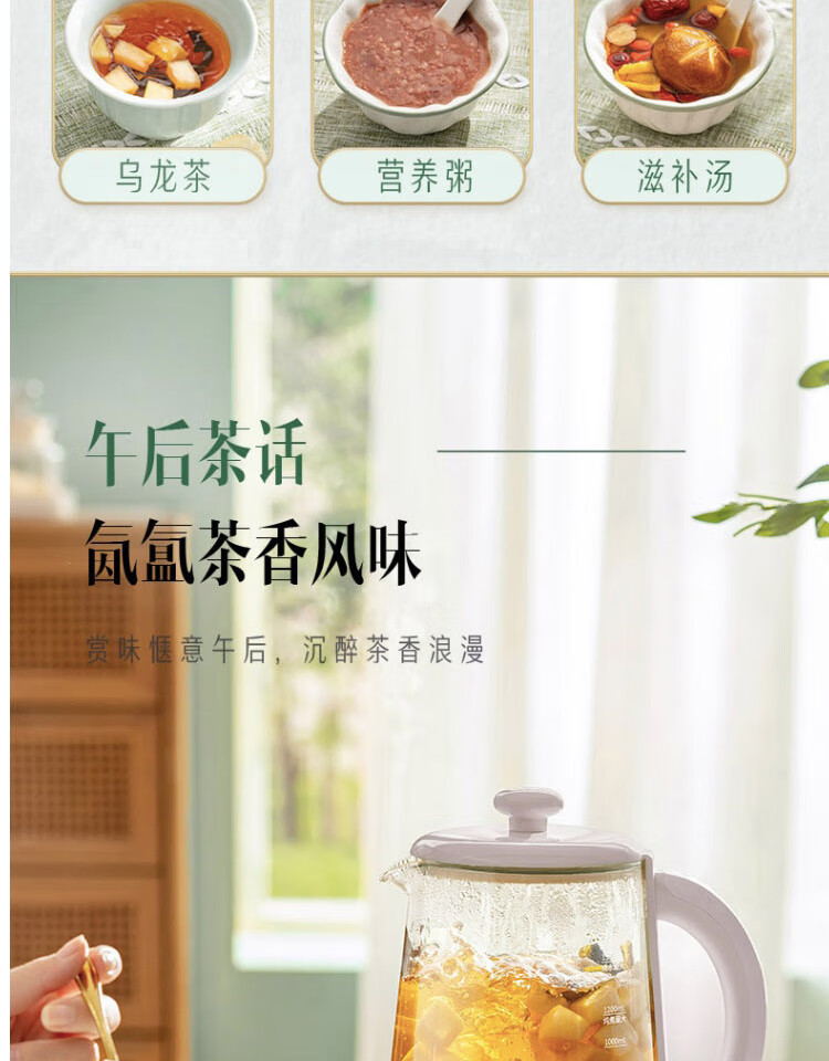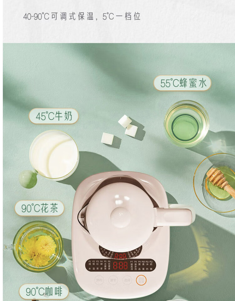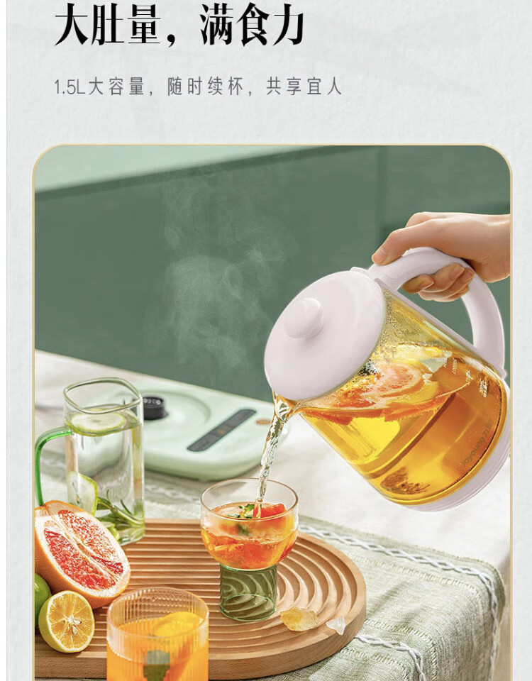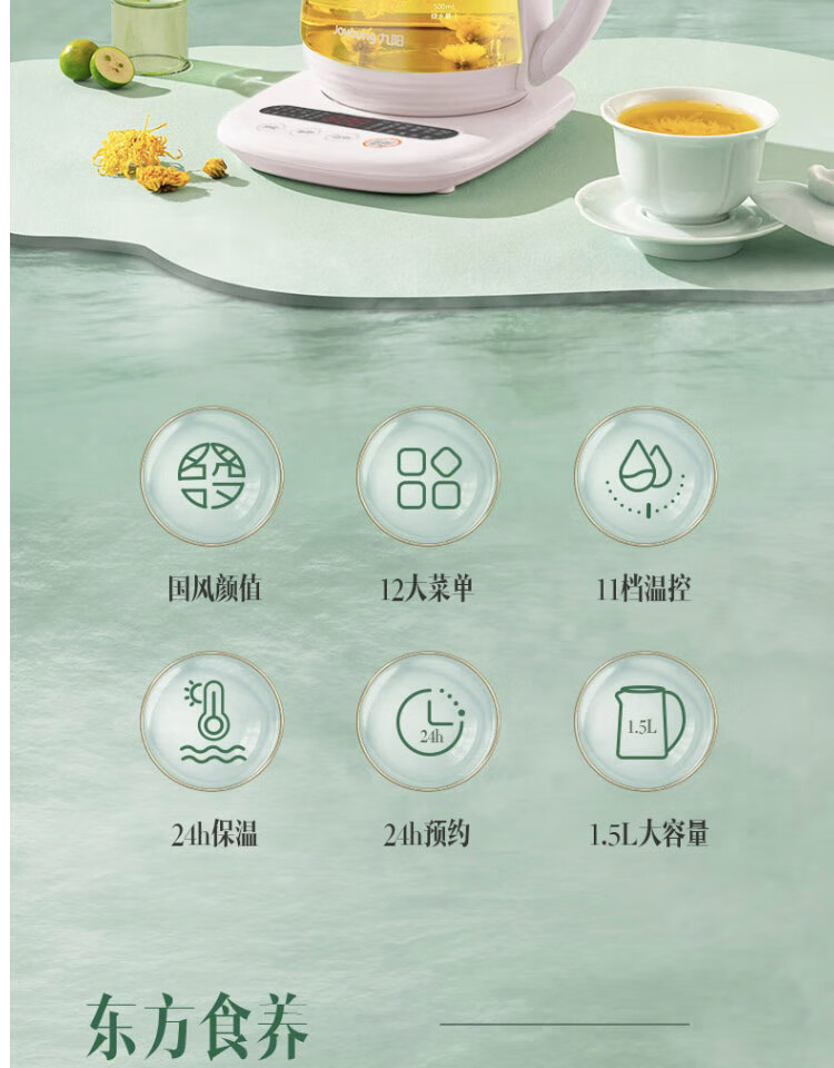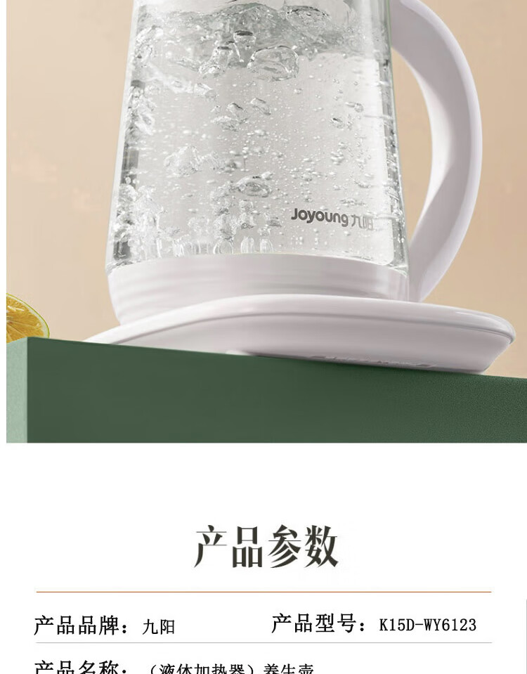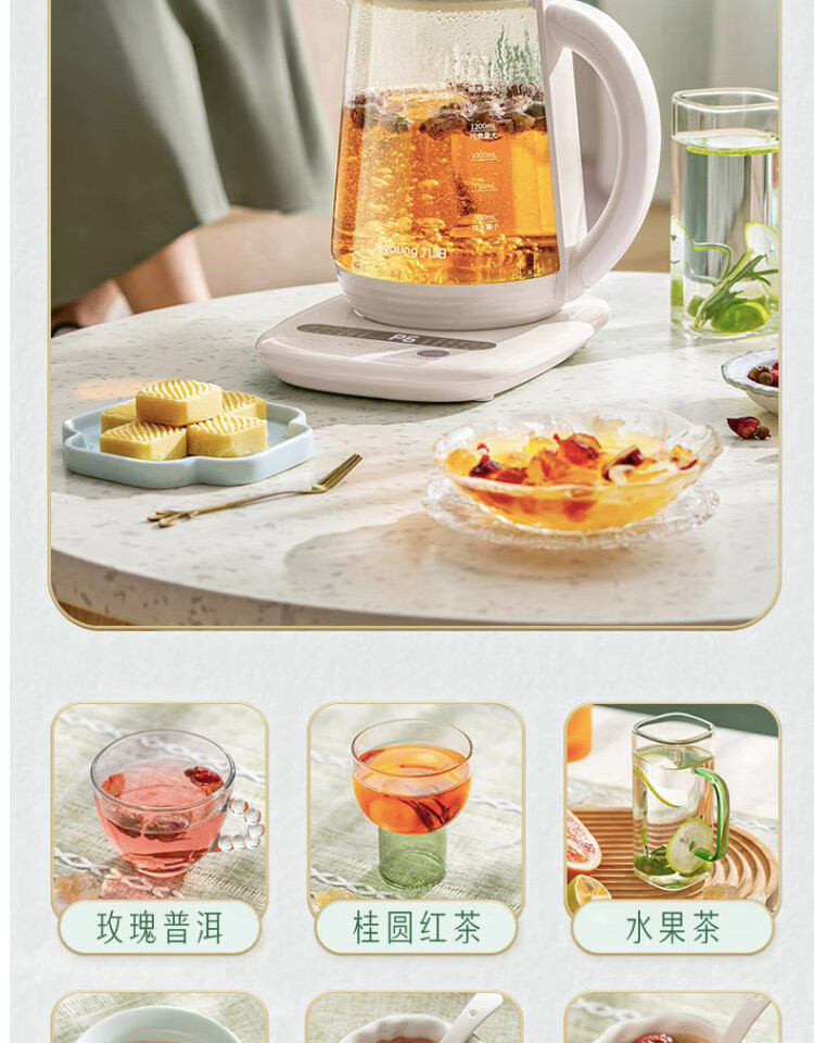 九阳(Joyoung)养生壶迷你玻璃花茶壶煮茶器 12大功能电水壶热水壶烧水壶 恒温水壶保温 K15D-WY6123