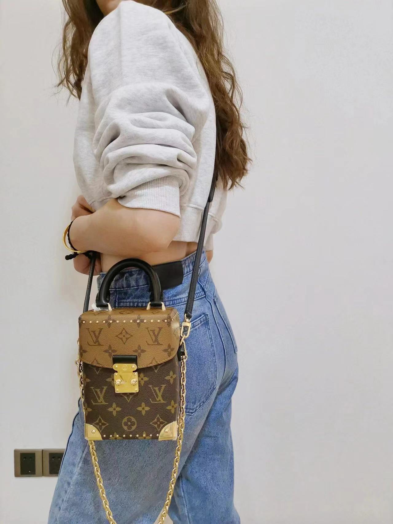 𝐂𝐀𝐌𝐄𝐑𝐀 𝐁𝐎𝐗 系列 M82465 免检版本# ■ 尺寸: 12.5*17.6*6𝐜𝐦 ■ 秋冬必入秀款𝙘𝙖𝙢𝙚𝙧𝙖 𝙗𝙤𝙭系列 简直就是一眼爆款! 反转拼色软盒子的设计搭配着小手柄 让整体包包看起来更加精致小巧又不失大气优雅! 四角五金也是妥妥的重工质感,原汁原味的小硬箱标配! 不得不说 又是一个“”爆款之王”不但颜值爆表 容量也满足了日常出行必备 更多的是它一包多背法!
