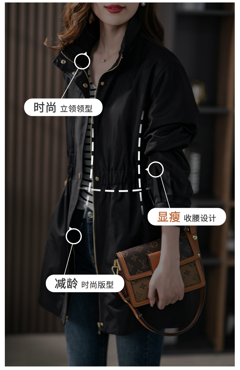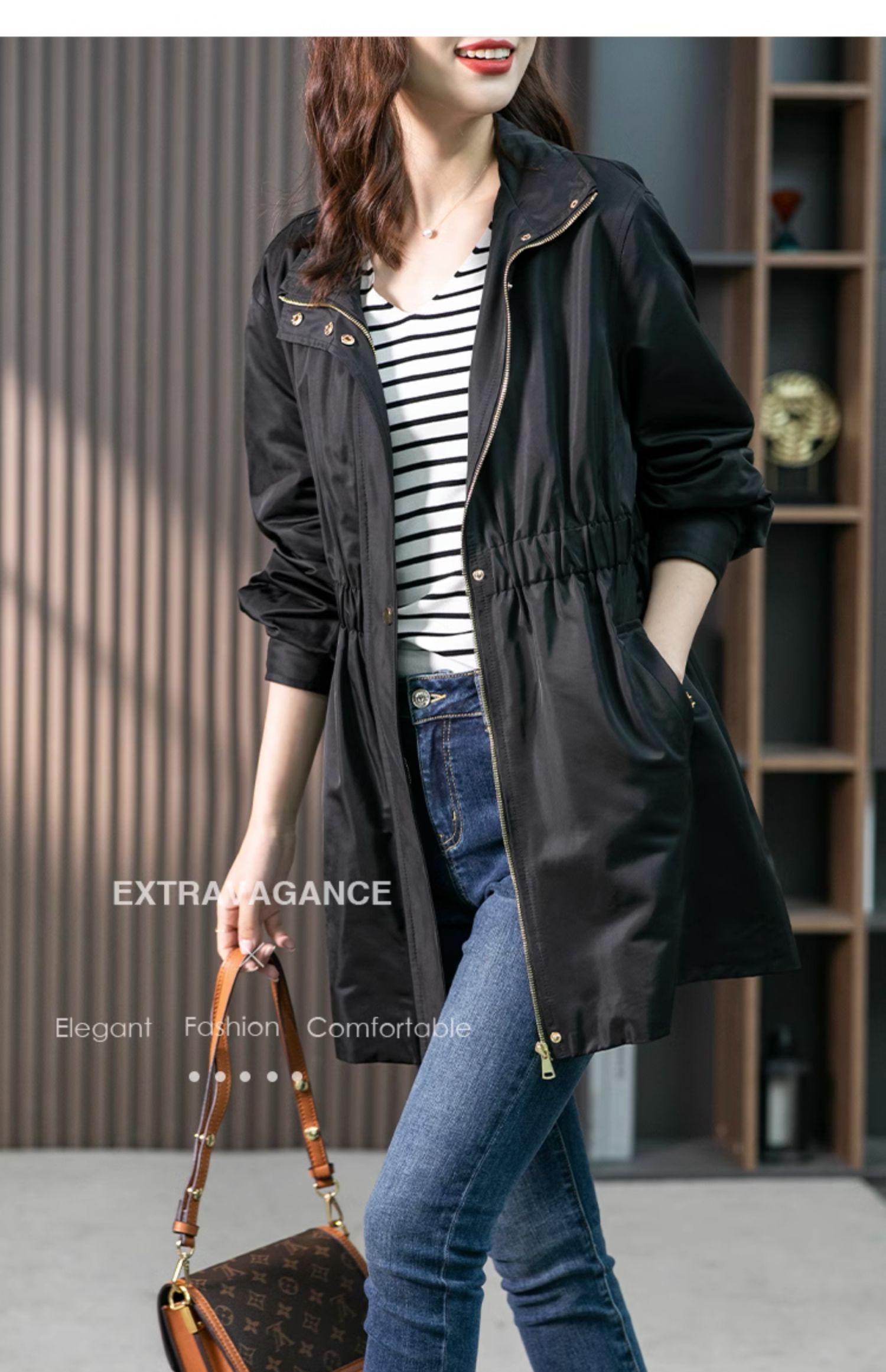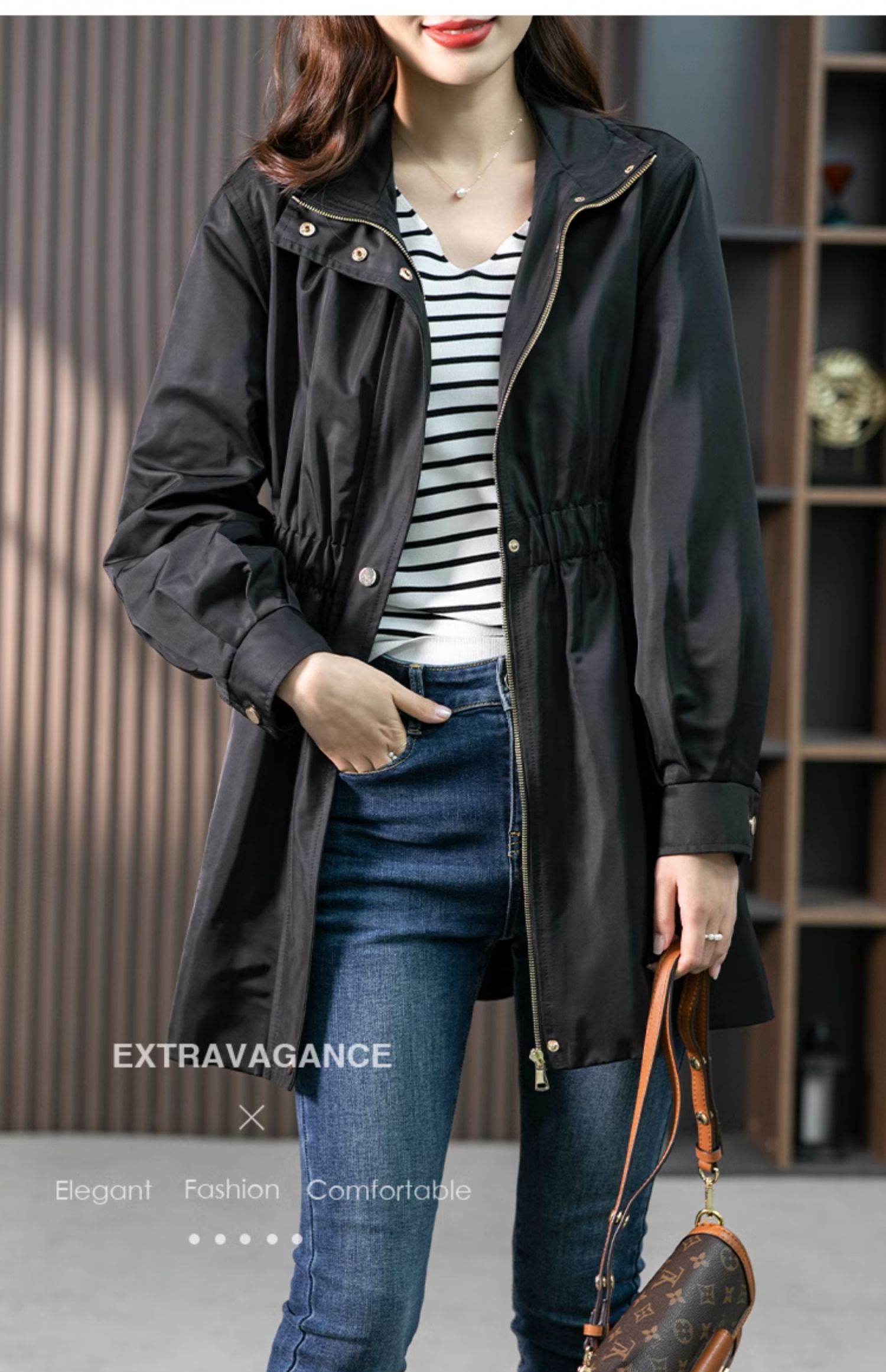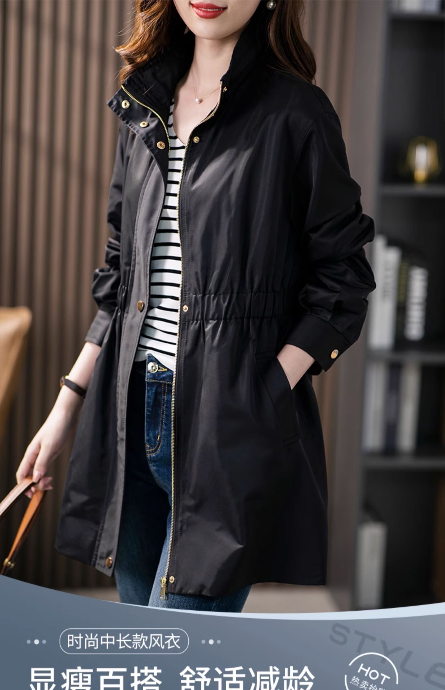YX【现货7天】收腰显瘦风衣女中长款2023秋季新款韩版舒适减龄休闲外套