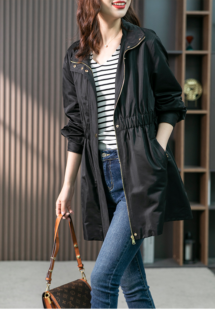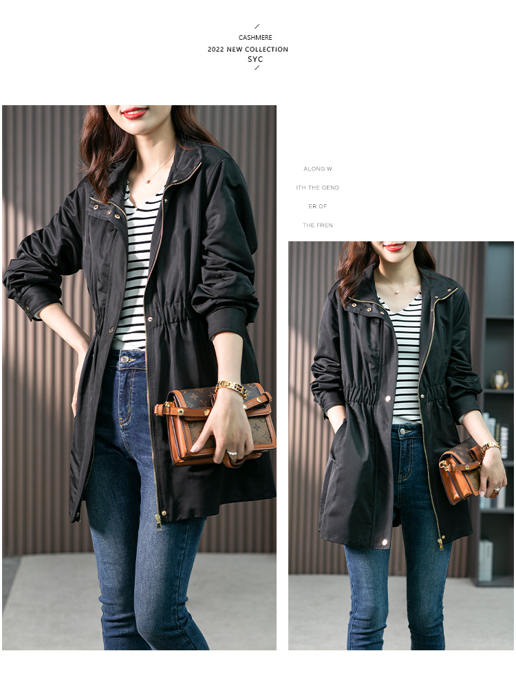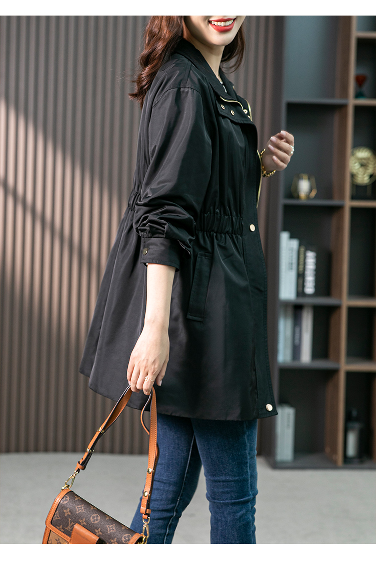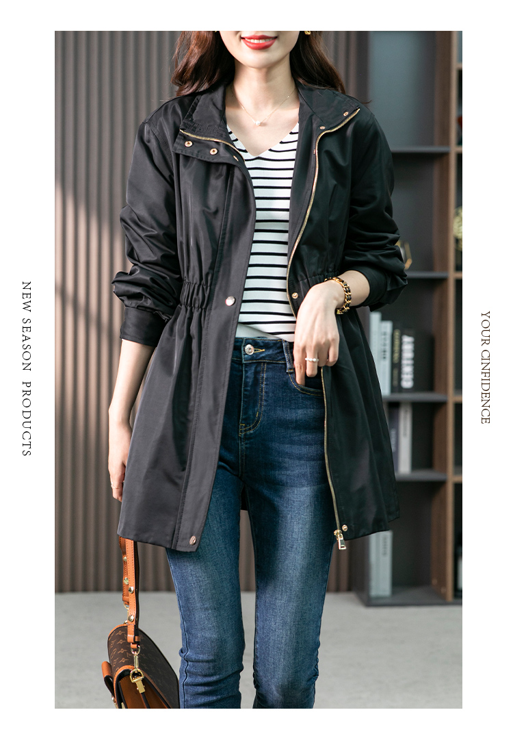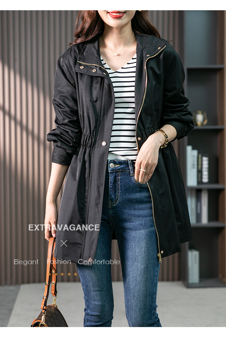 YX【现货7天】收腰显瘦风衣女中长款2023秋季新款韩版舒适减龄休闲外套