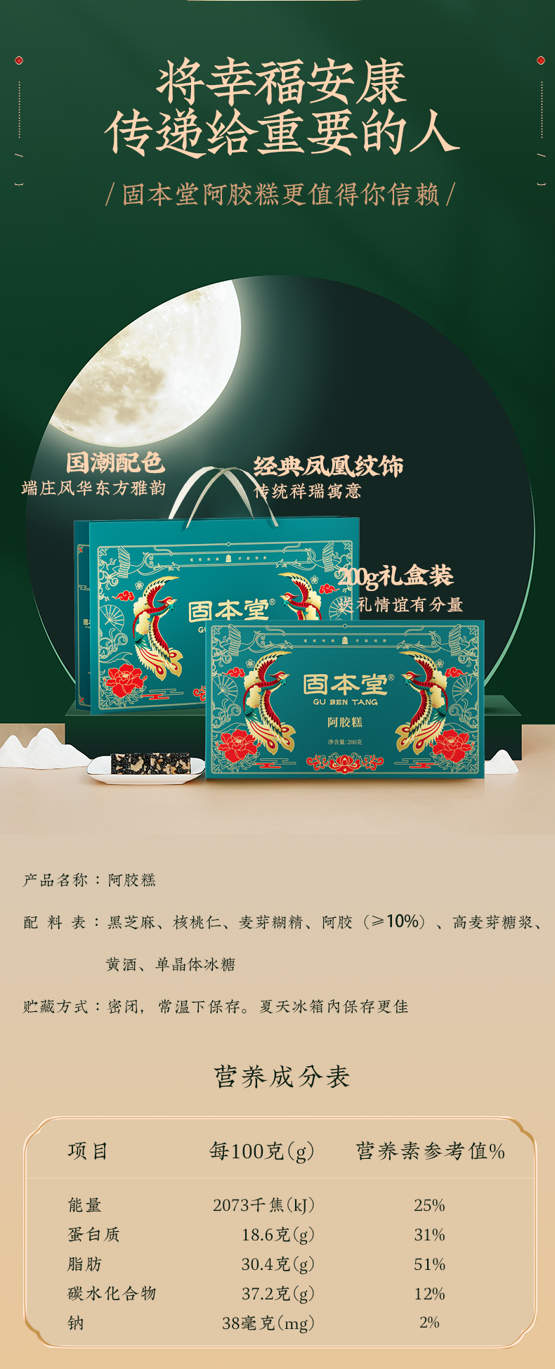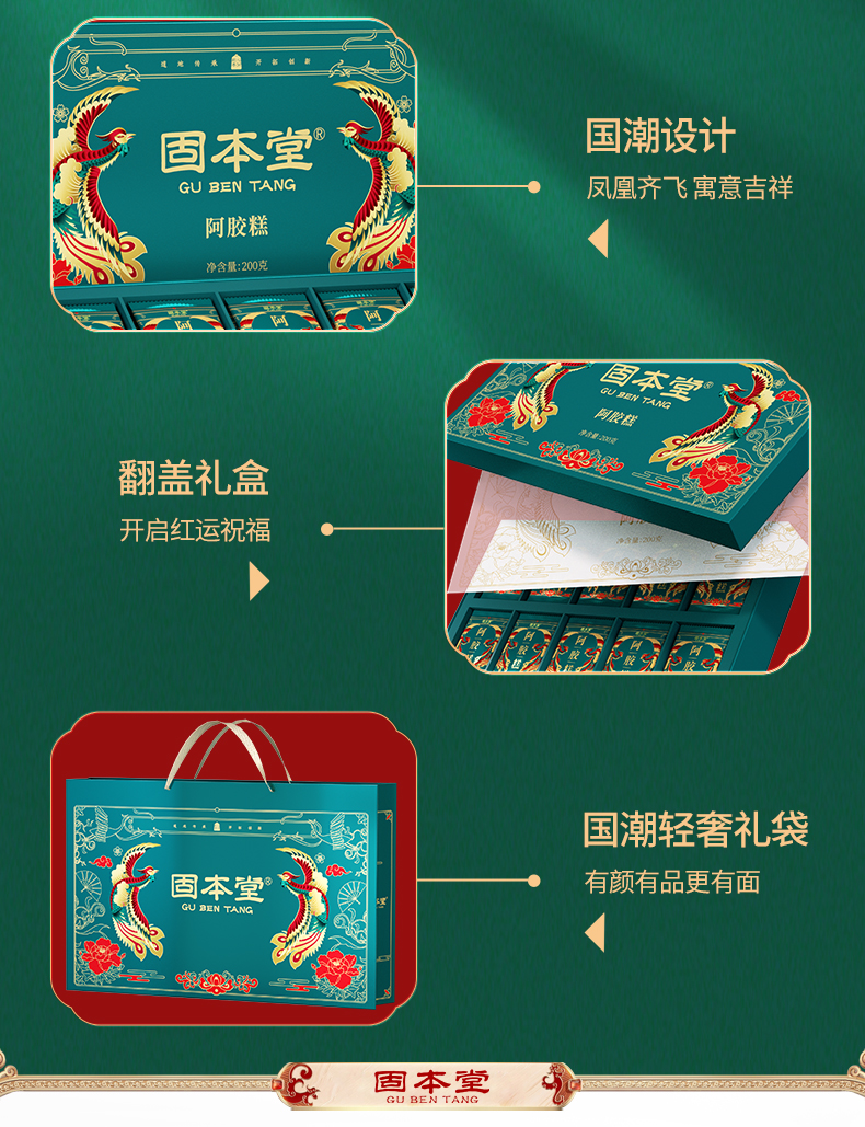 【固本堂】传统阿胶糕礼盒200g 补血养气 滋阴润肺 补肝益肾 适宜人群 贫血、肺燥咳嗽、肝肾阴虚者 改善手脚冰凉症状