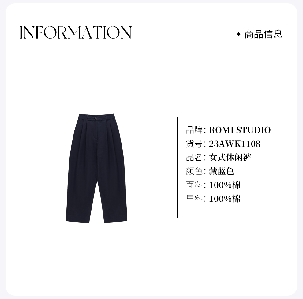 ROMI STUDIO“禅意静奢”100%棉高腰廓形简约亲肤百搭长裤23AWK1108
