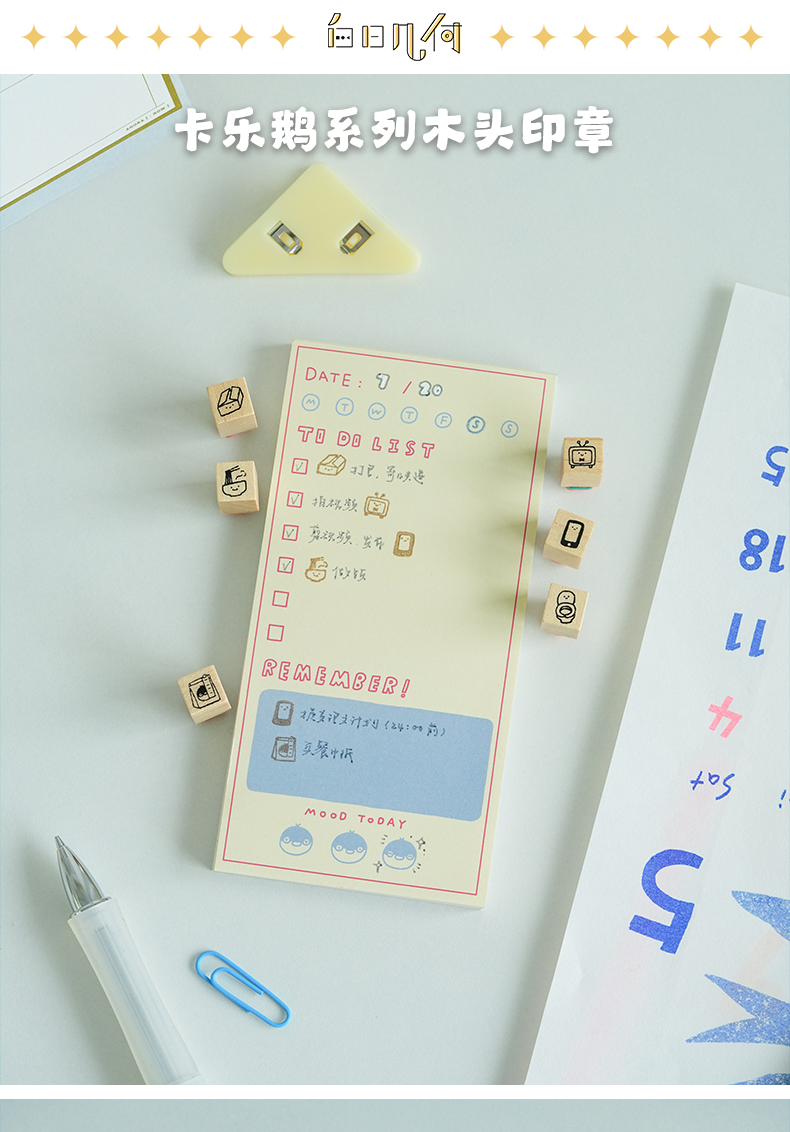 白日几何 卡乐鹅系列木头印章 单枚 生活记录 手帐可爱印章 日常 外卖 快递