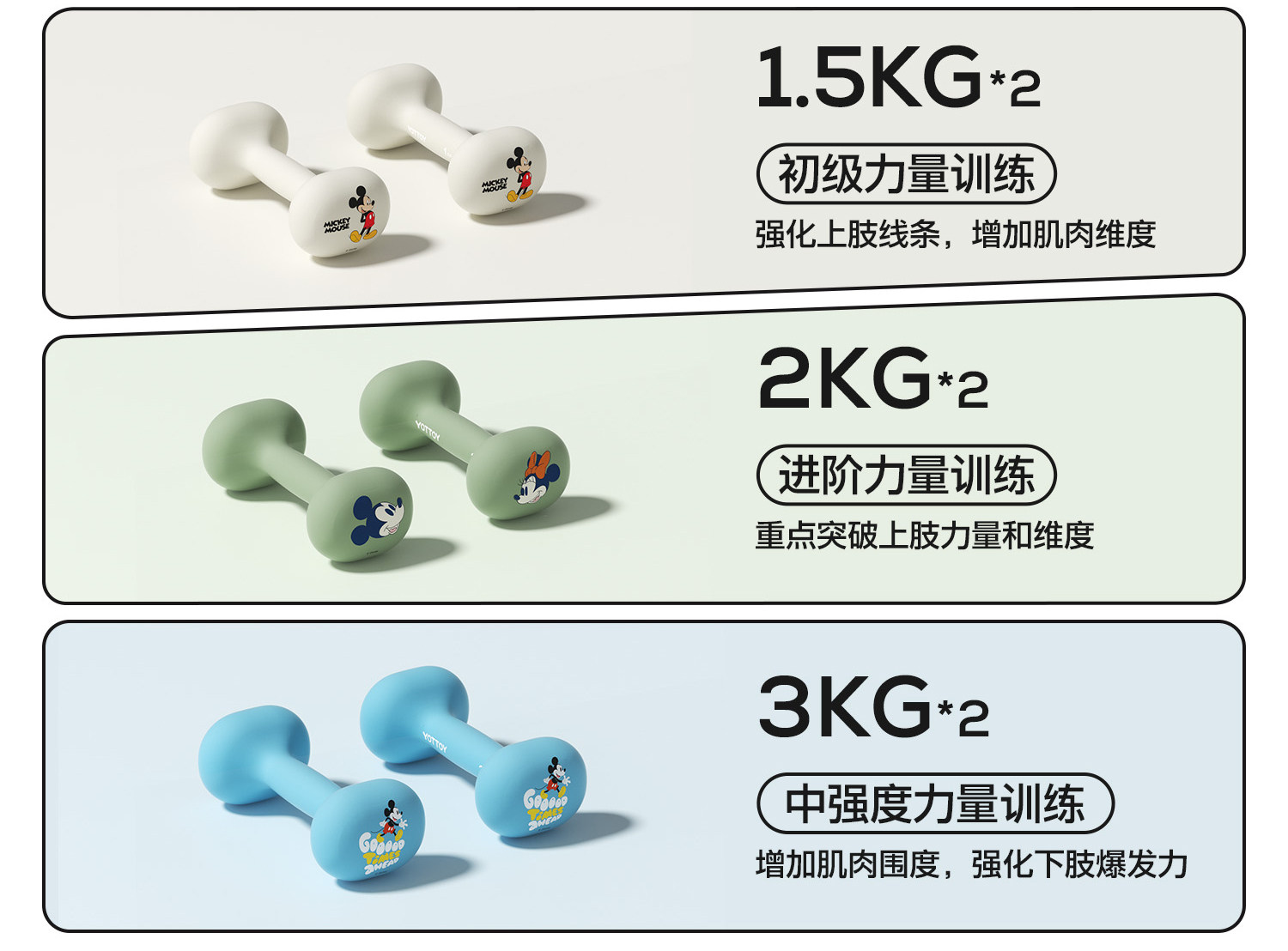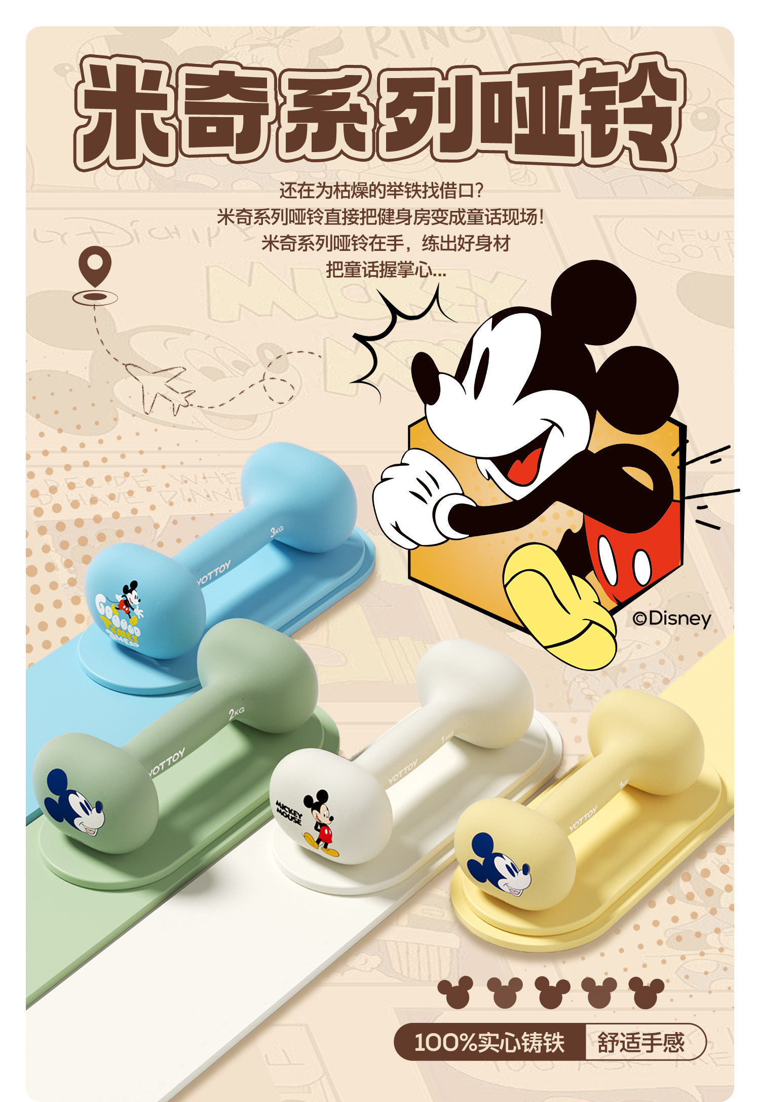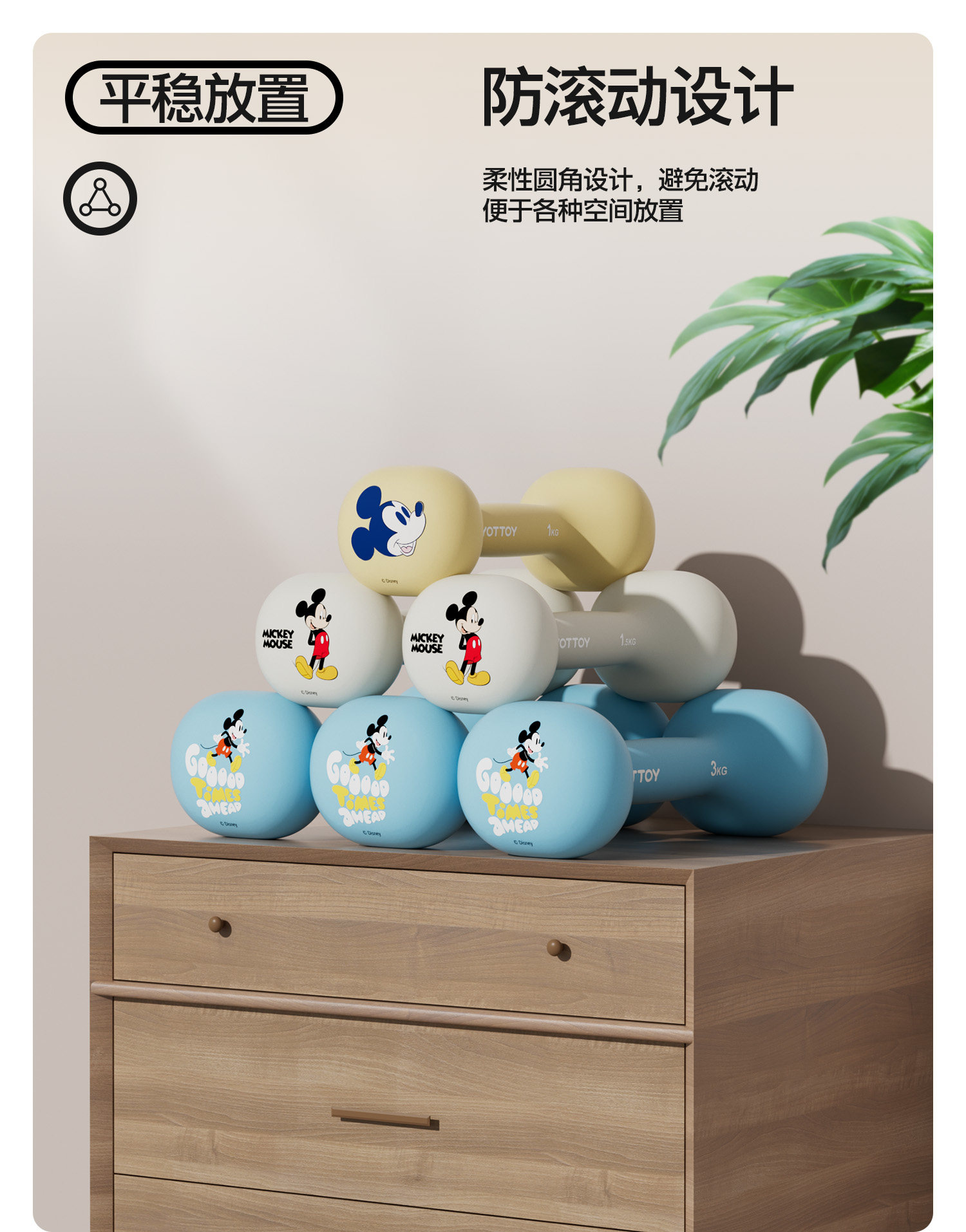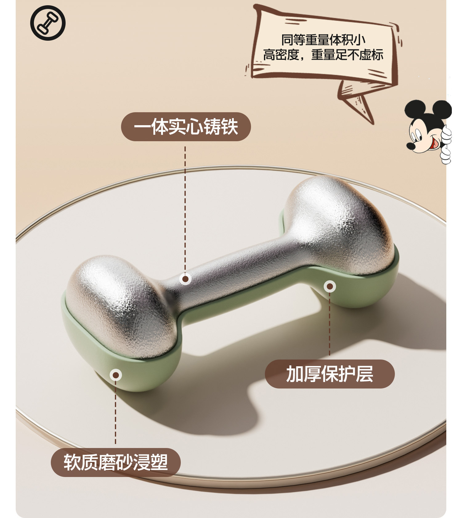 迪士尼小哑铃女士YOTTOY健身家用器材2kg一对3kg一对1kg实心铸铁铃壶新