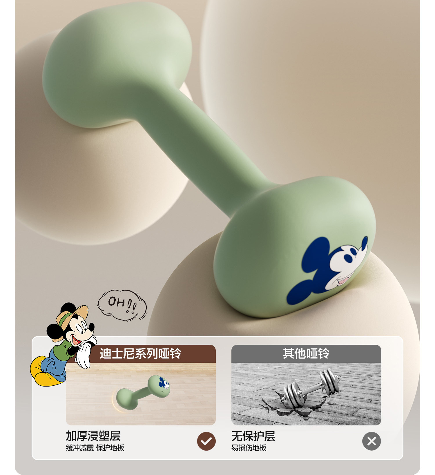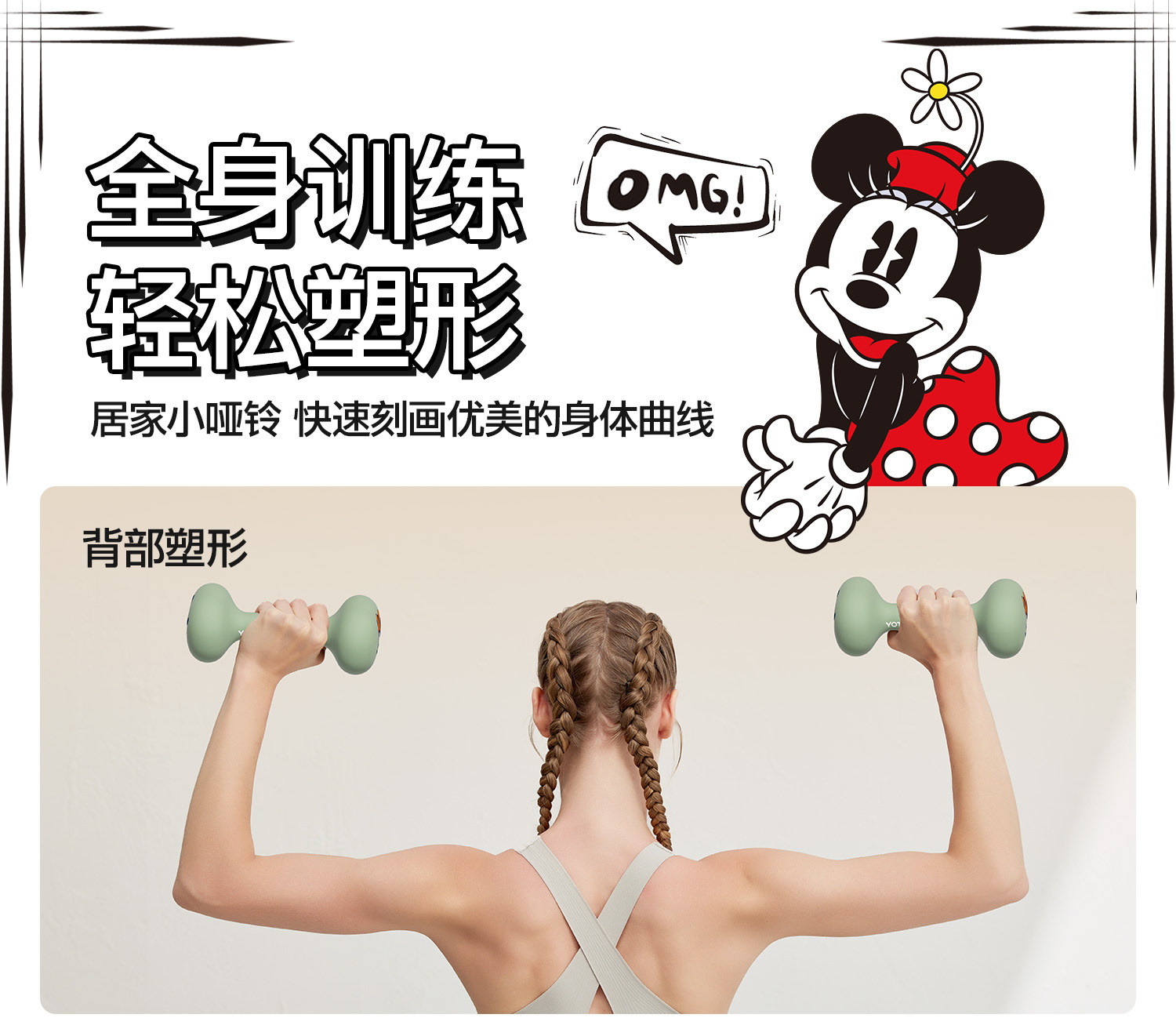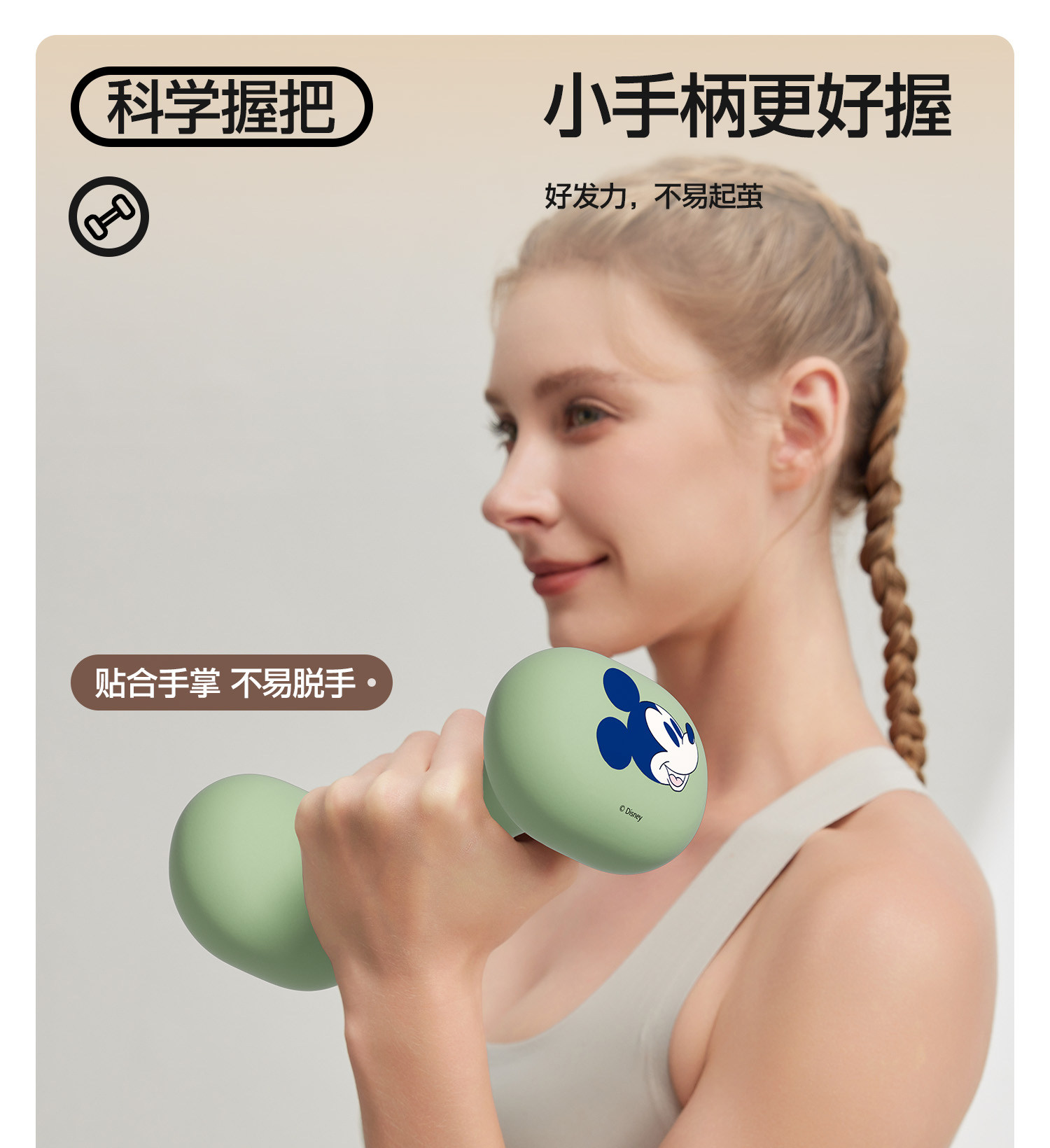 迪士尼小哑铃女士YOTTOY健身家用器材2kg一对3kg一对1kg实心铸铁铃壶新