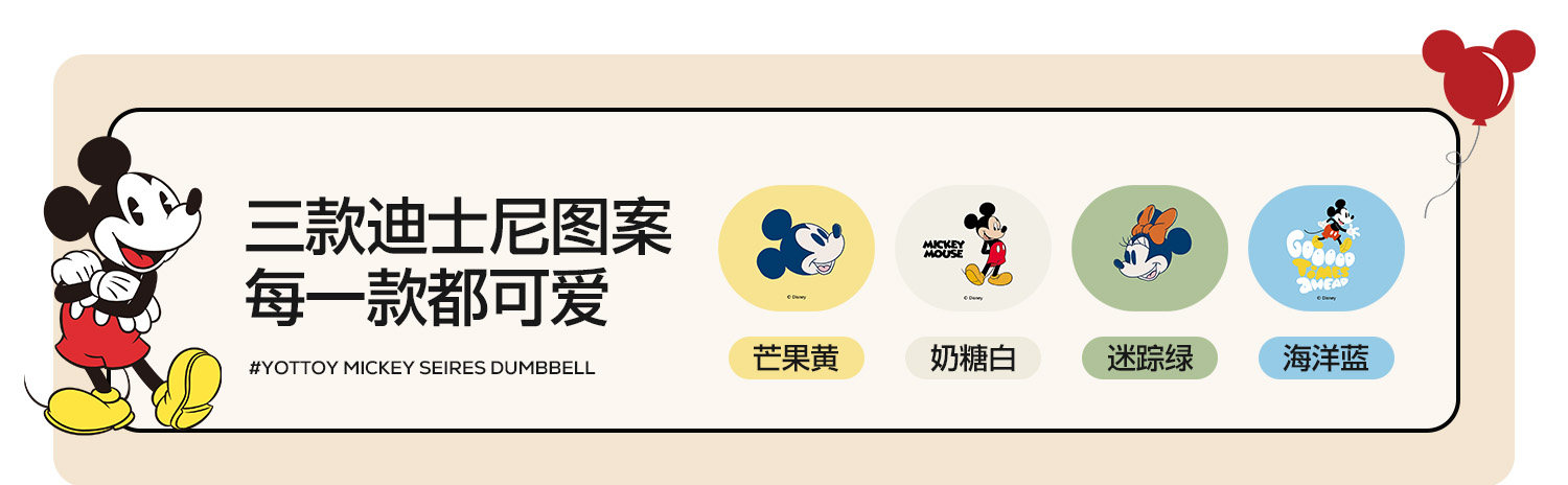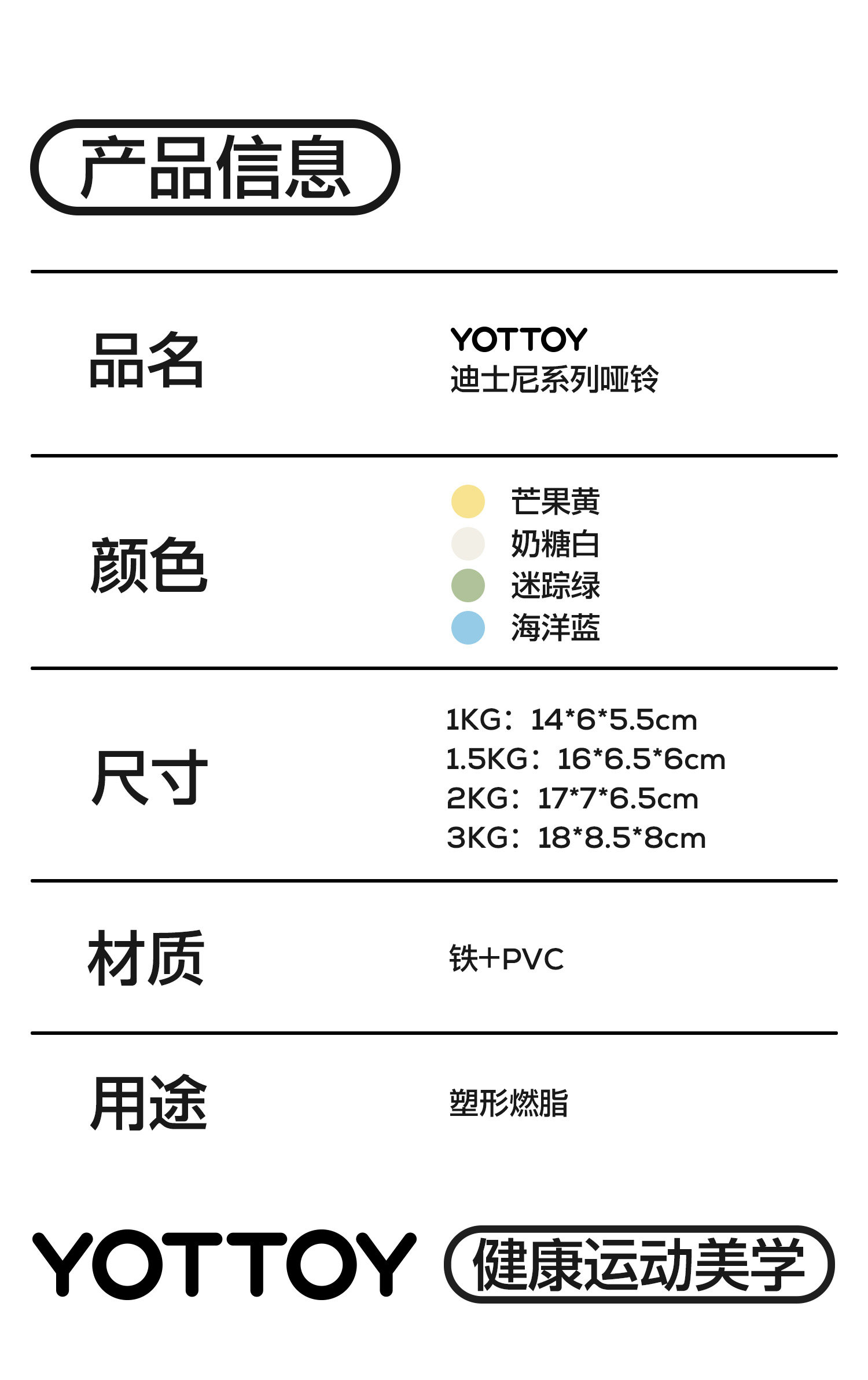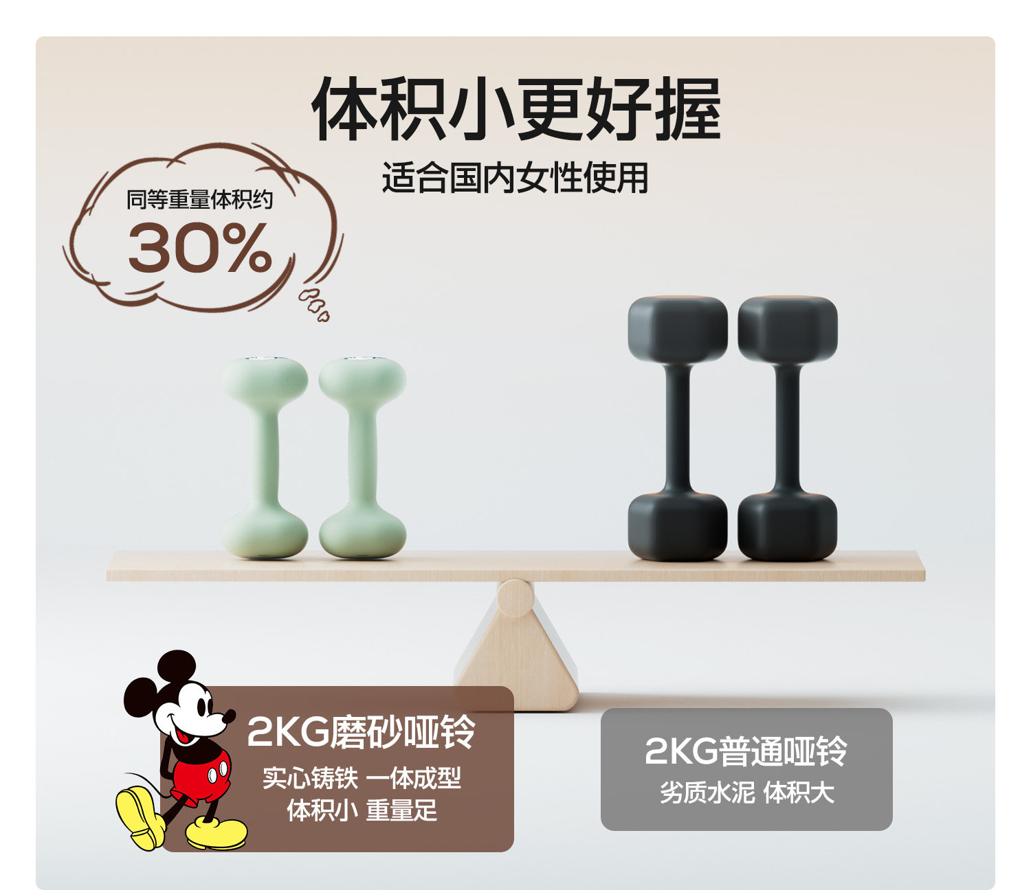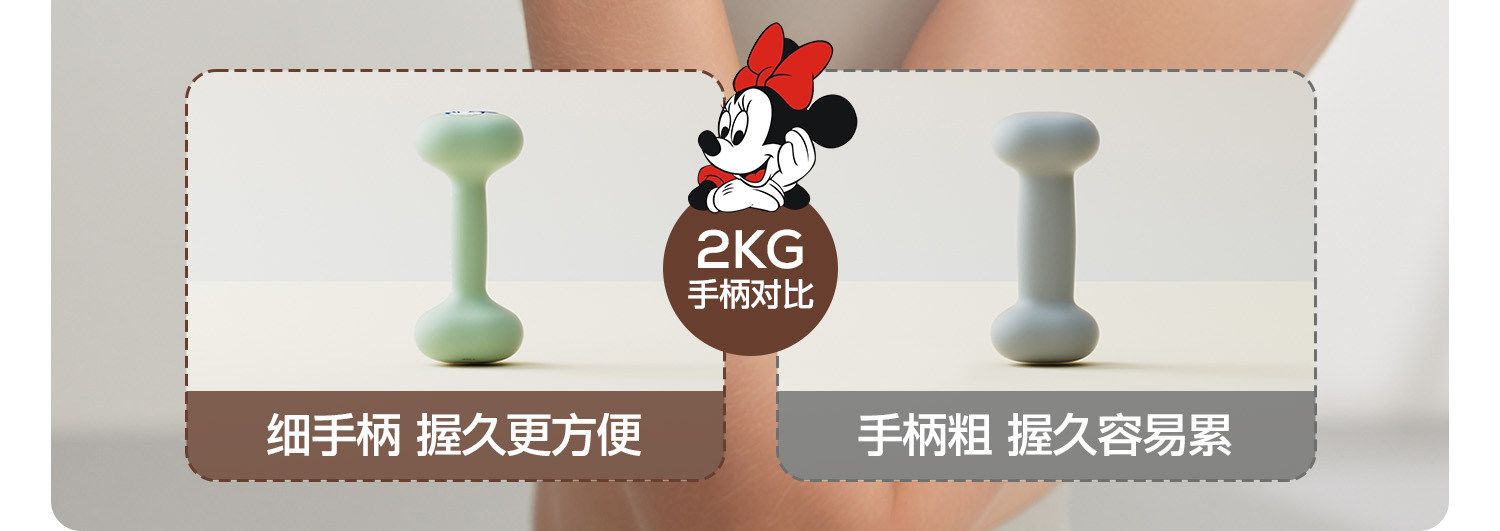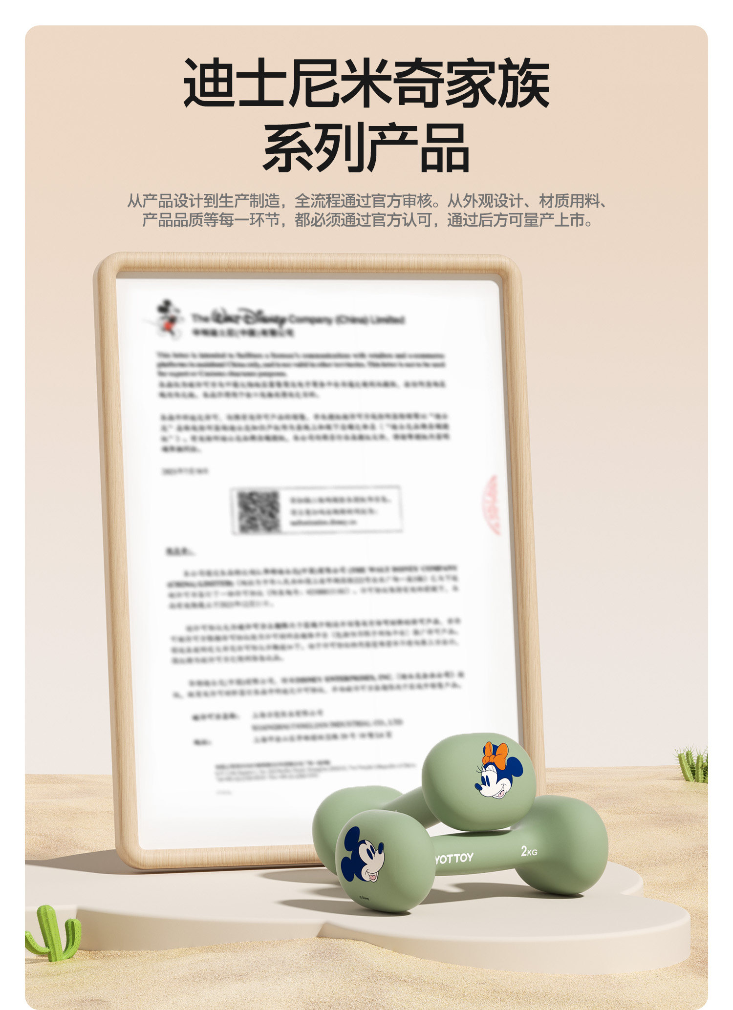 迪士尼小哑铃女士YOTTOY健身家用器材2kg一对3kg一对1kg实心铸铁铃壶新