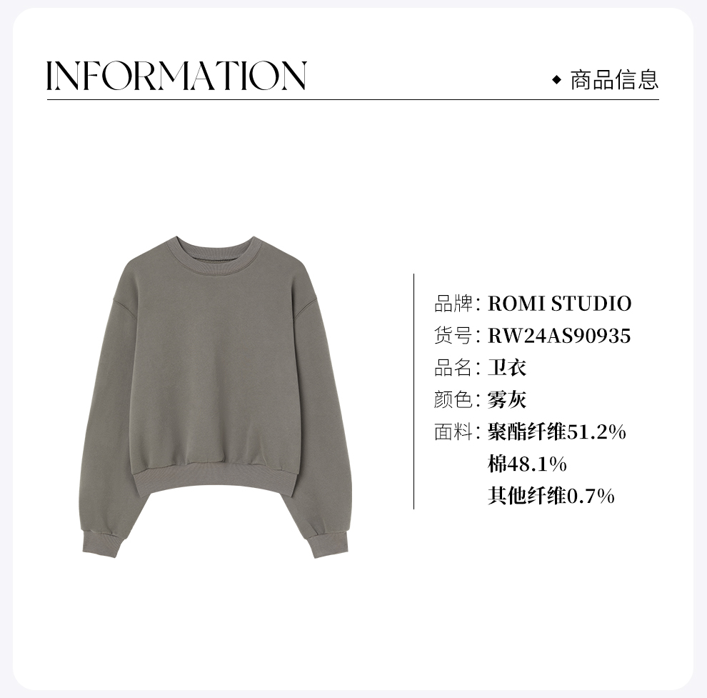 ROMI STUDIO“松弛随性” 内加绒落肩宽松圆领套头卫衣 RW24AS90935
