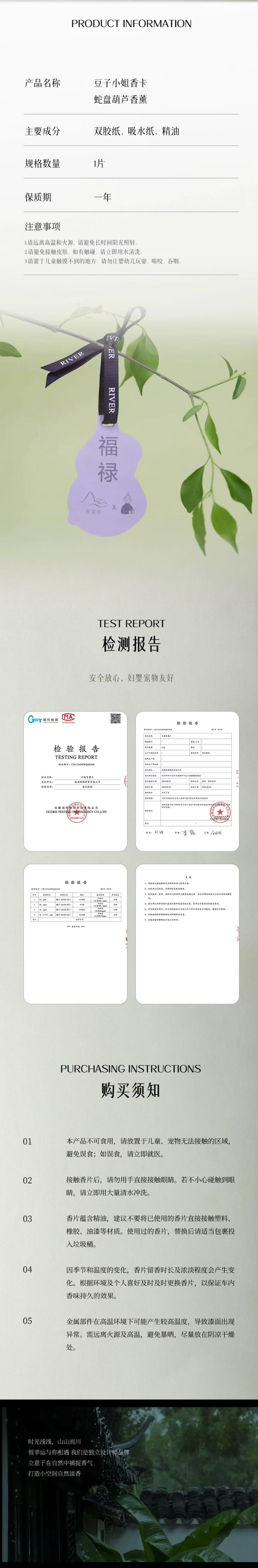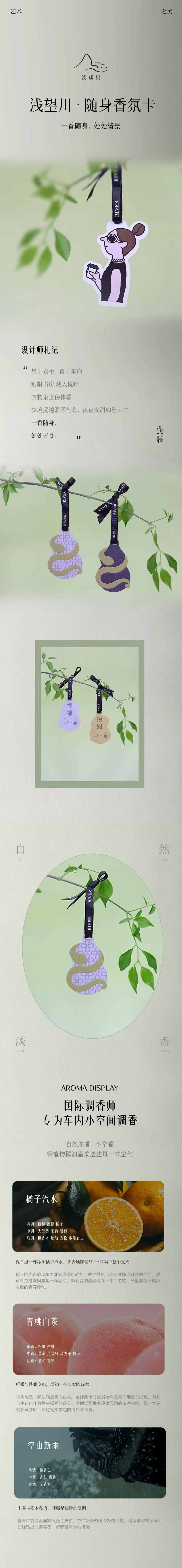原创白桃RIVER浅望川车载香薰汽车香氛衣柜香薰香片香氛卡挂件