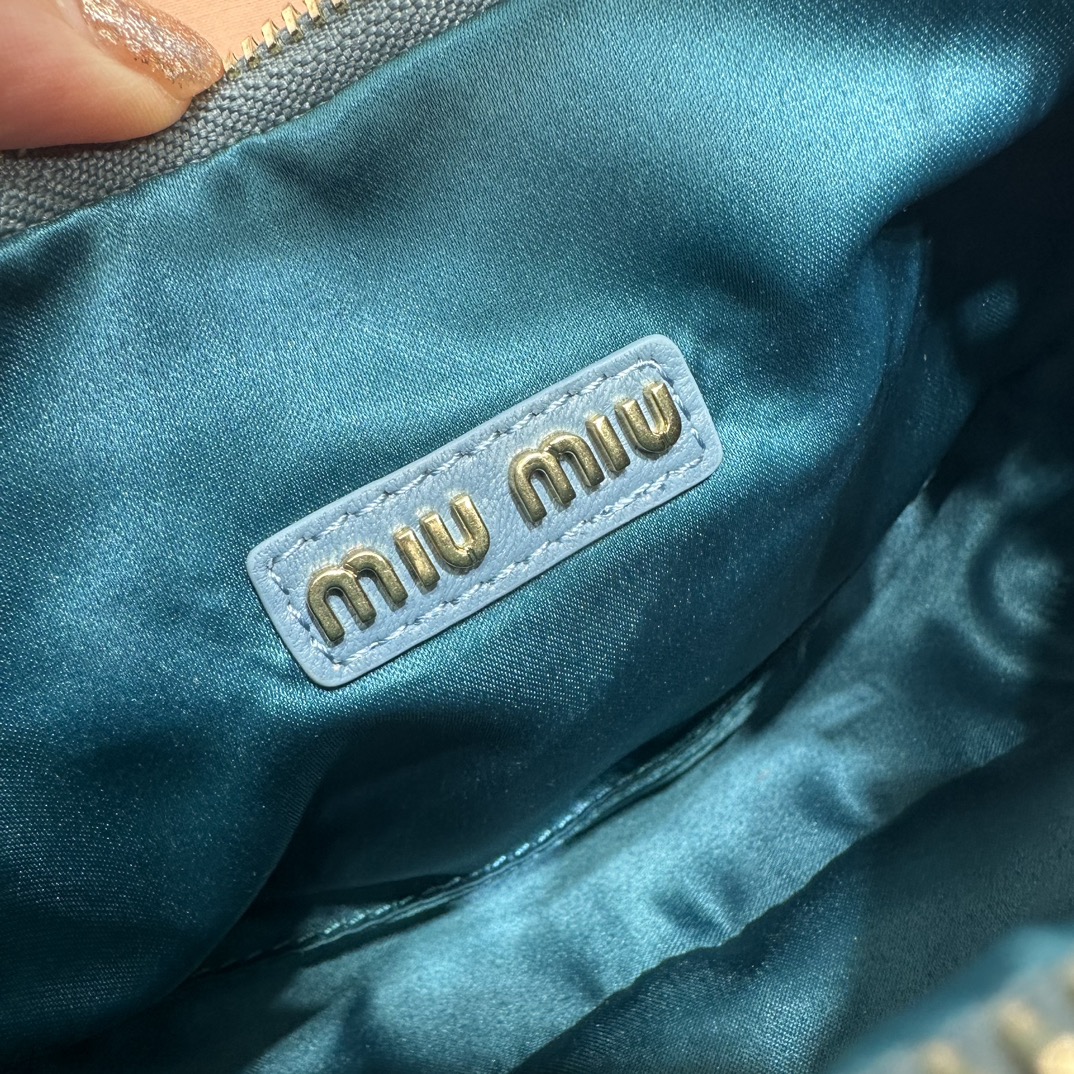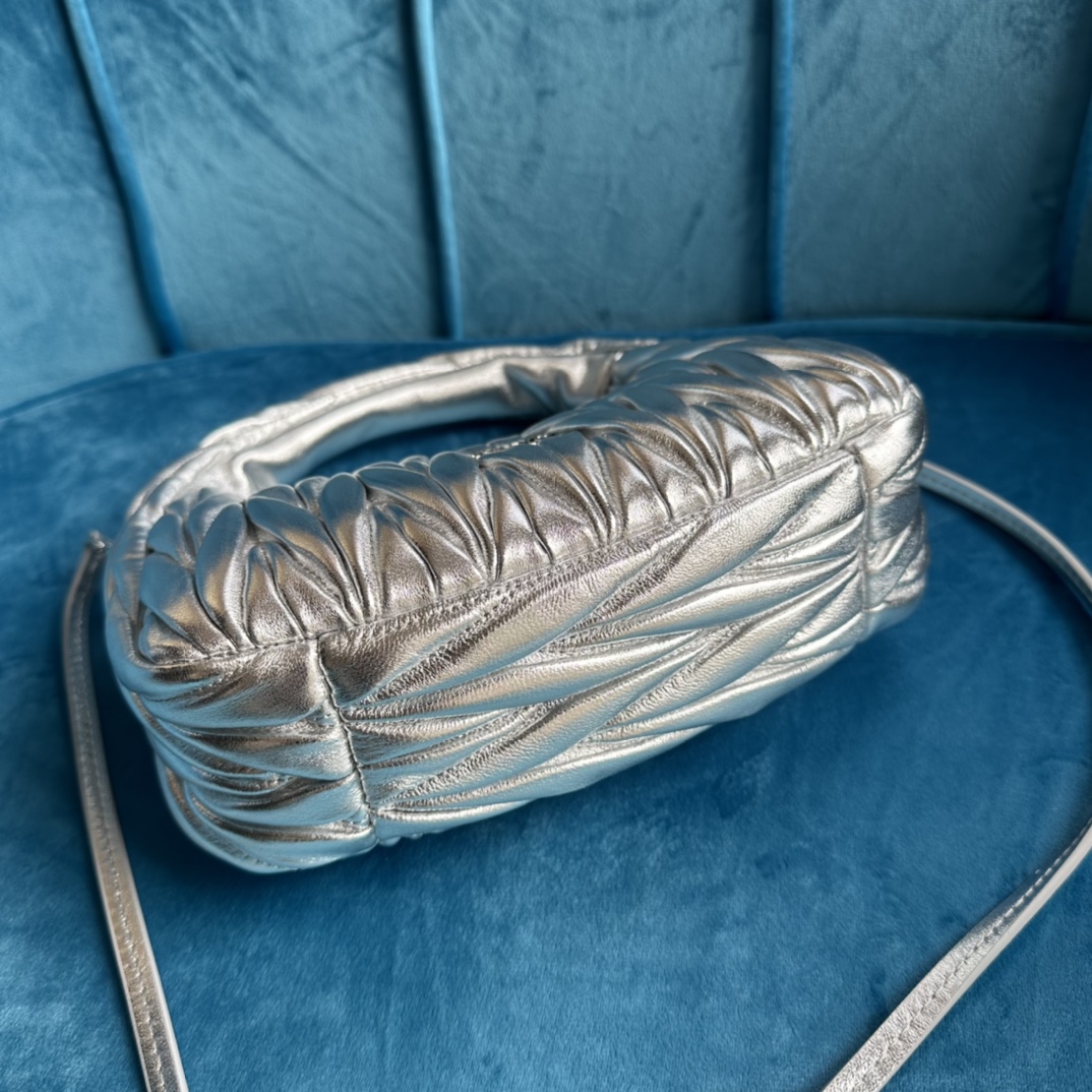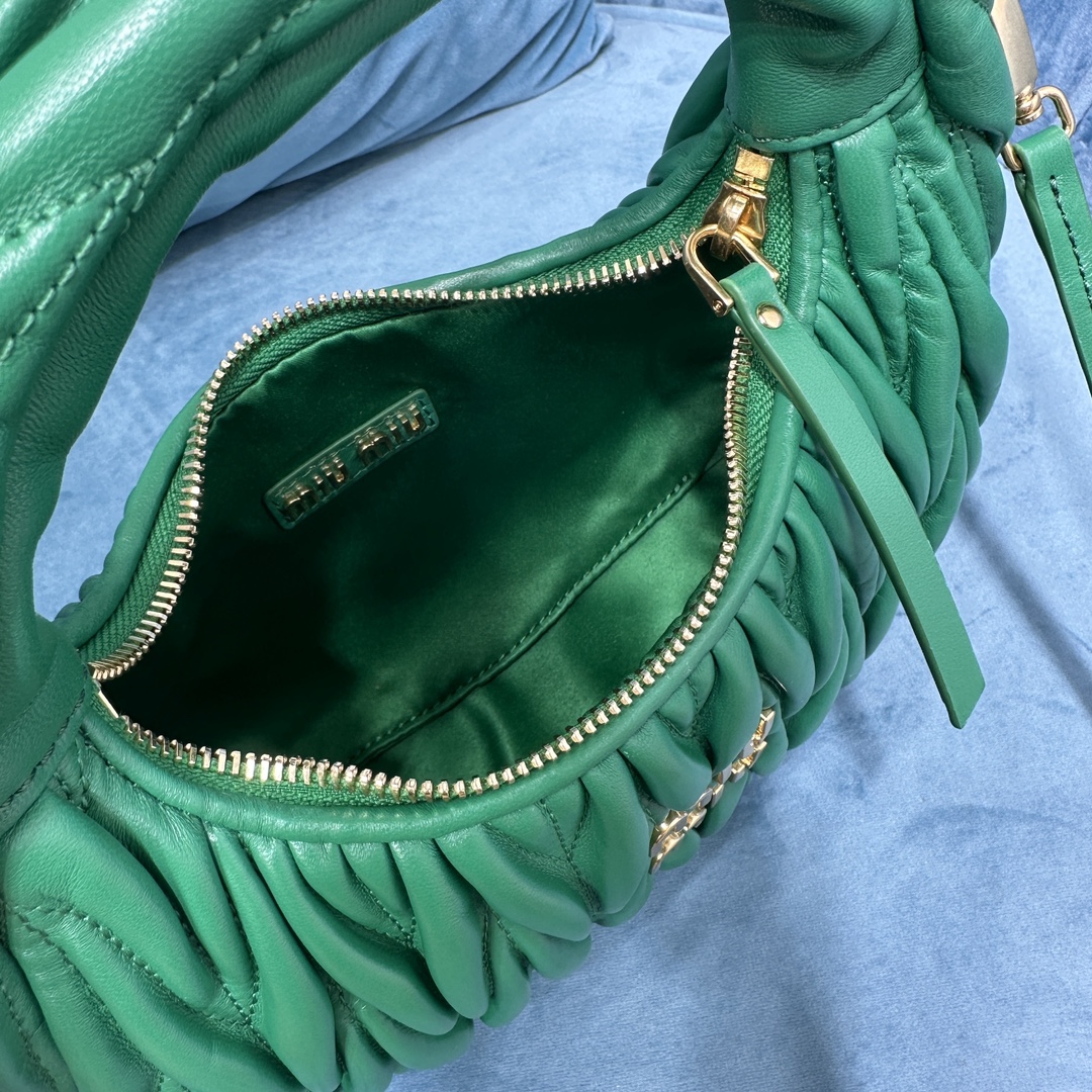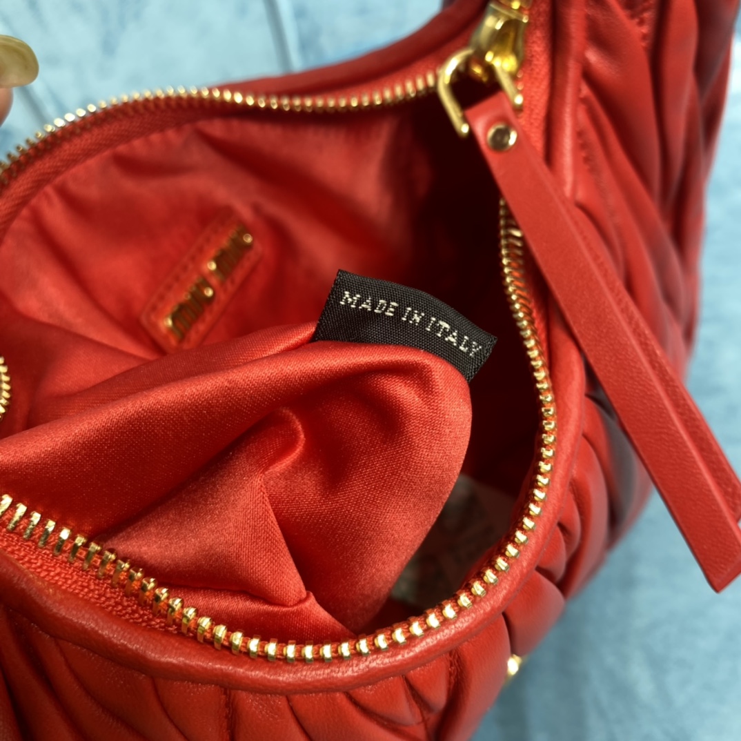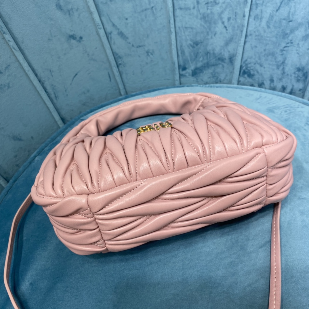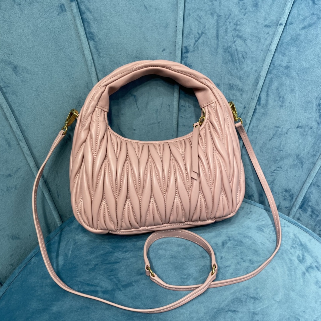 MiuMiu新品MiuWander手袋,采用进口小羊皮经典品牌标志性Matelasse纹理绣花,复古磨砂五金,利用圆孤的曲线,