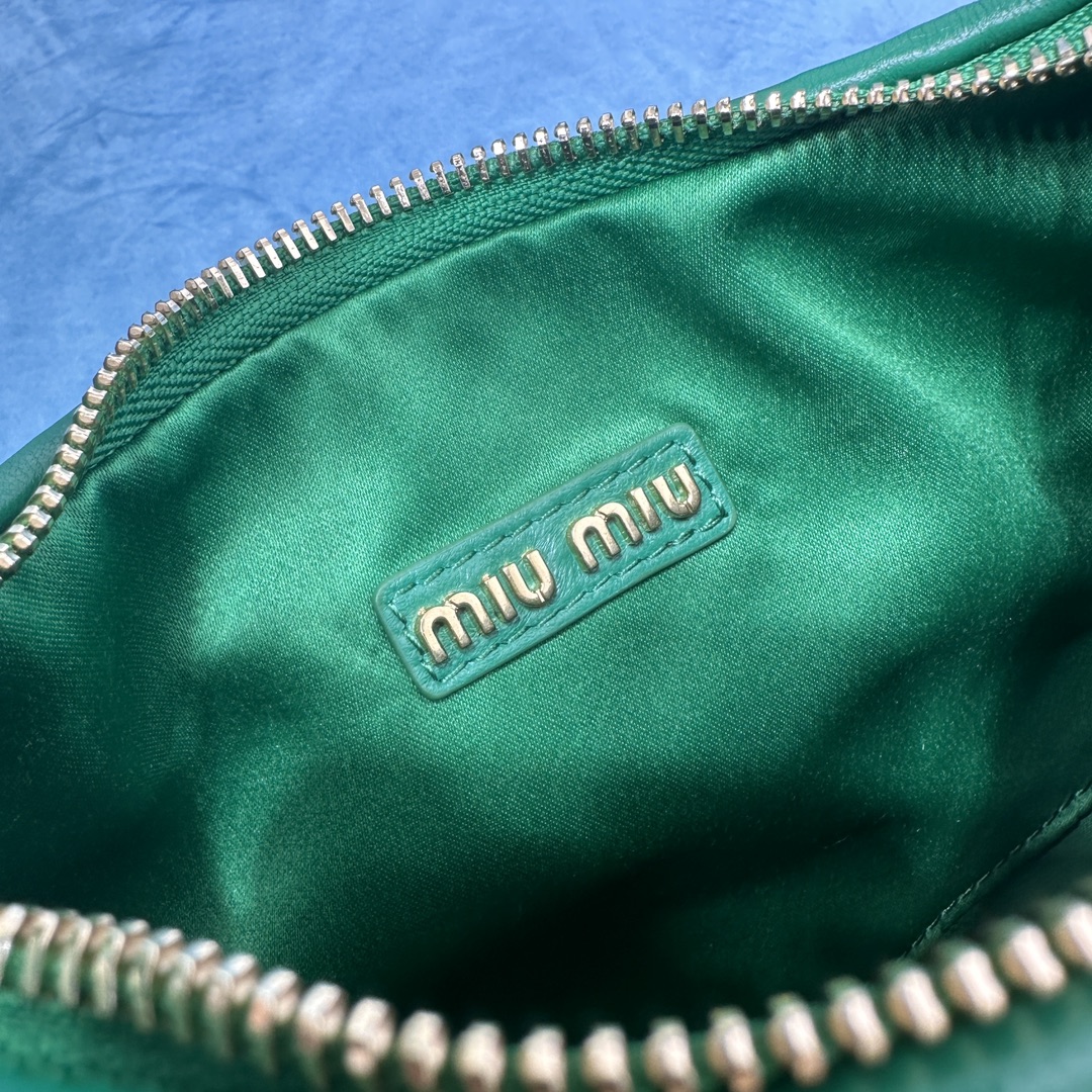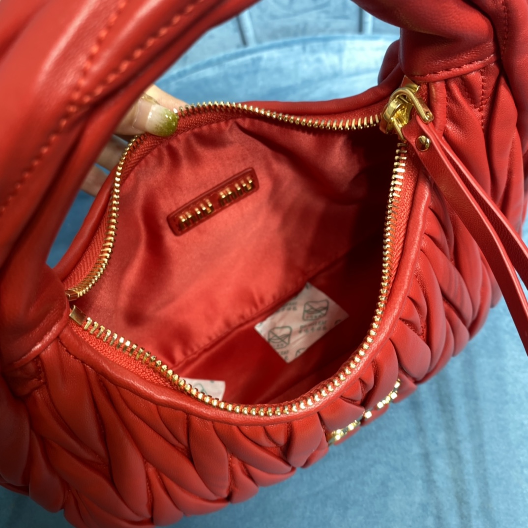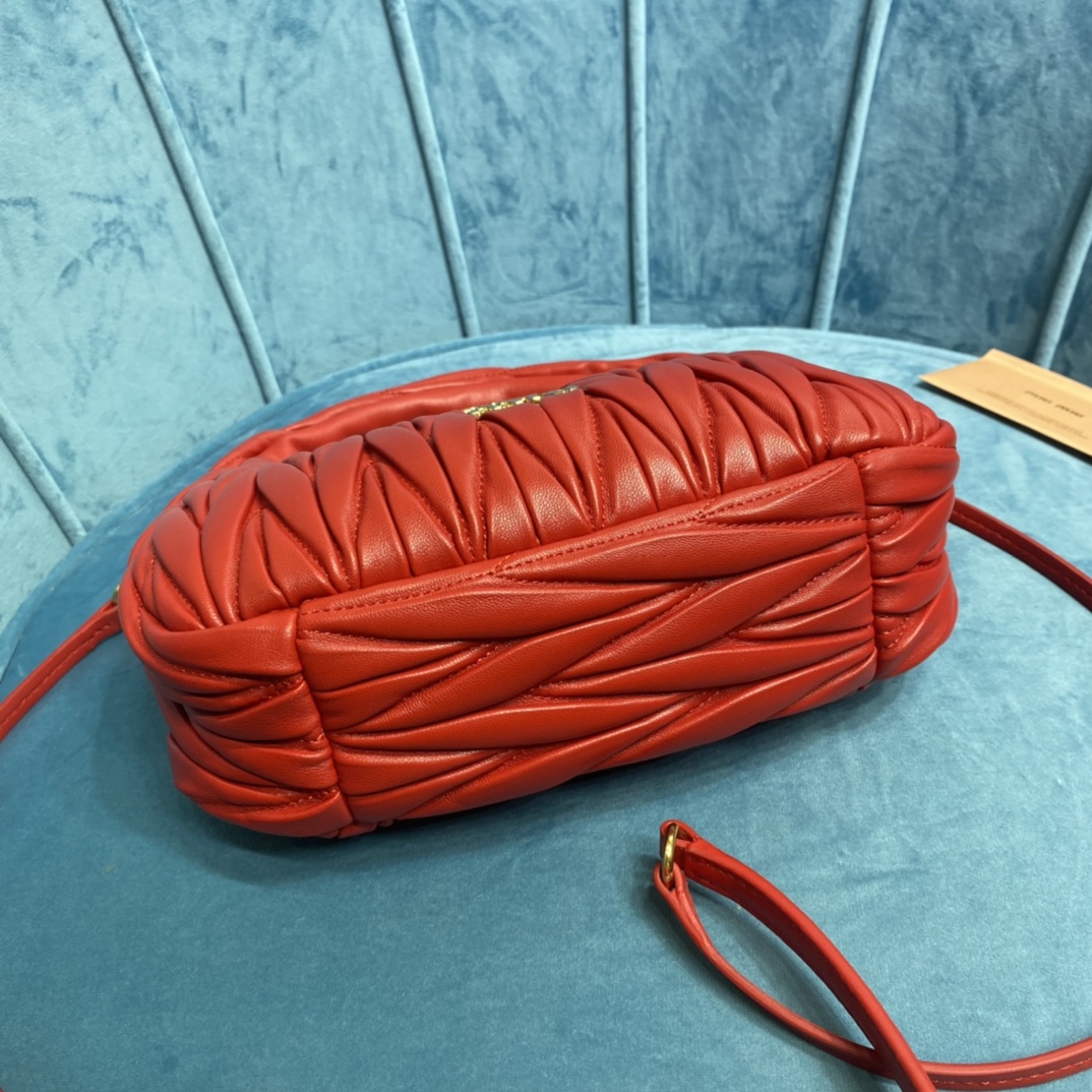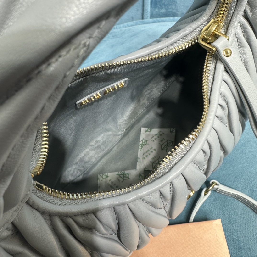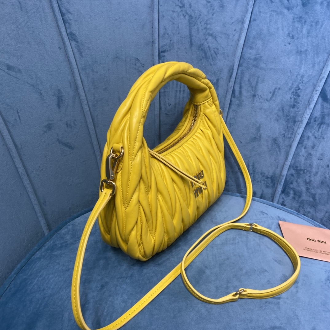 MiuMiu新品MiuWander手袋,采用进口小羊皮经典品牌标志性Matelasse纹理绣花,复古磨砂五金,利用圆孤的曲线,
