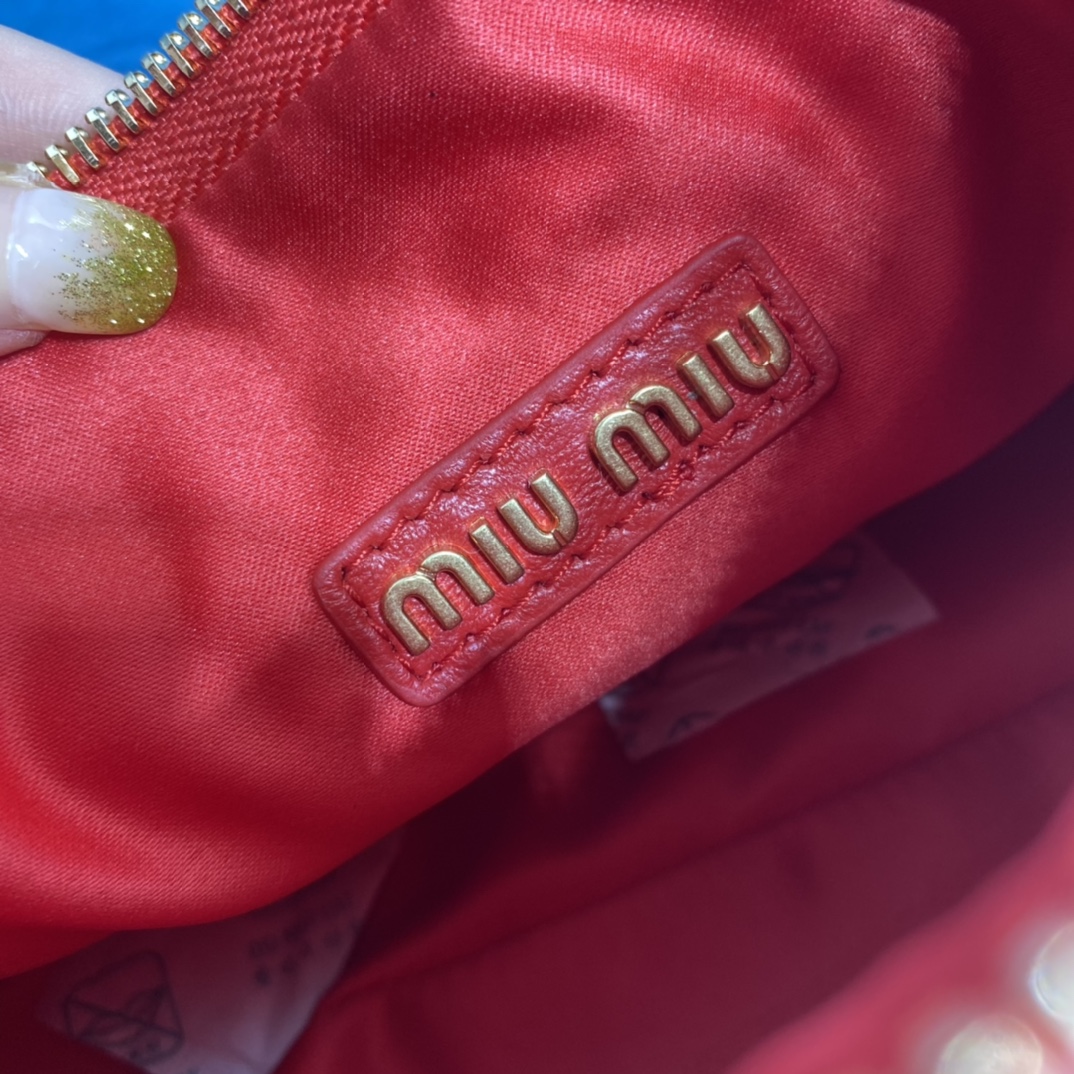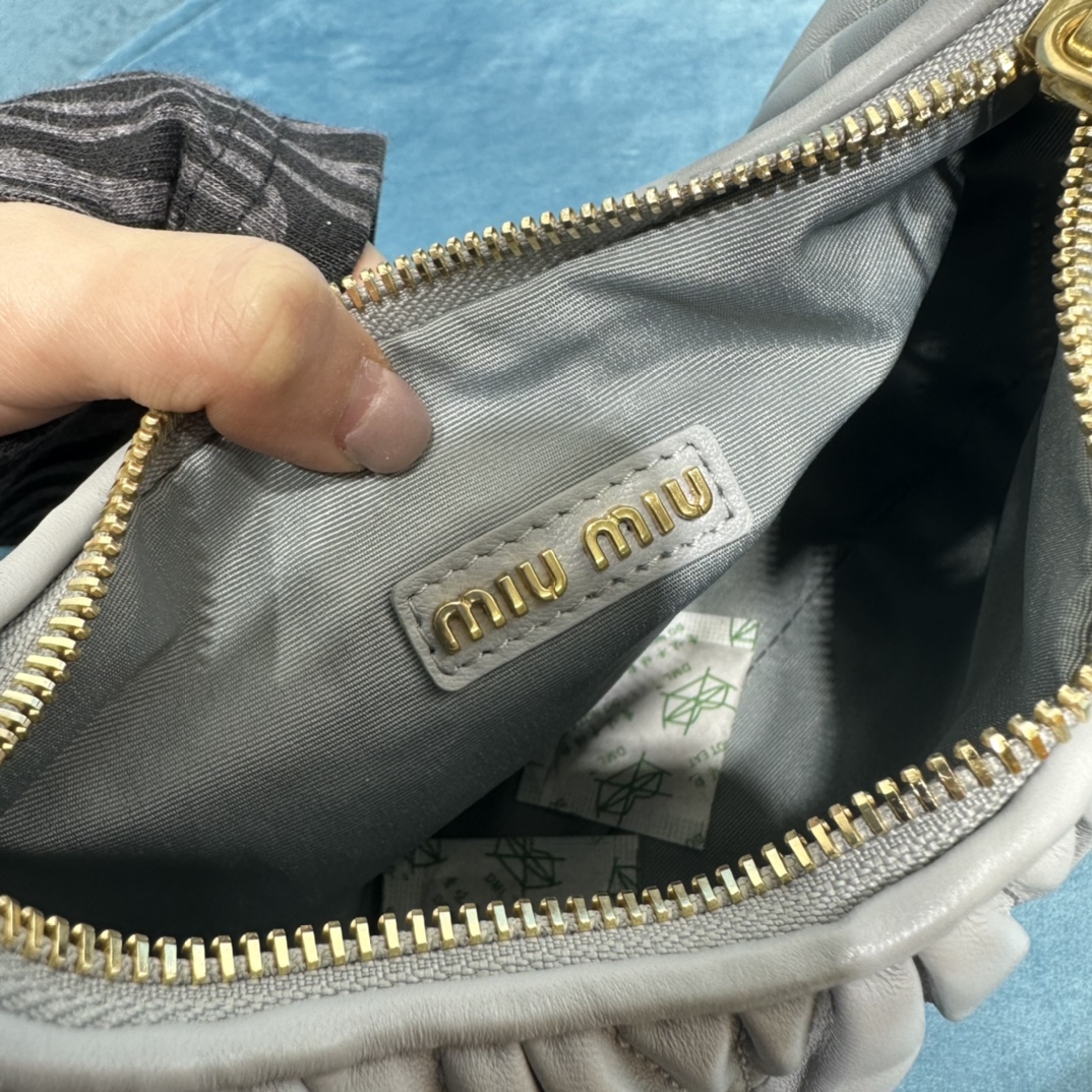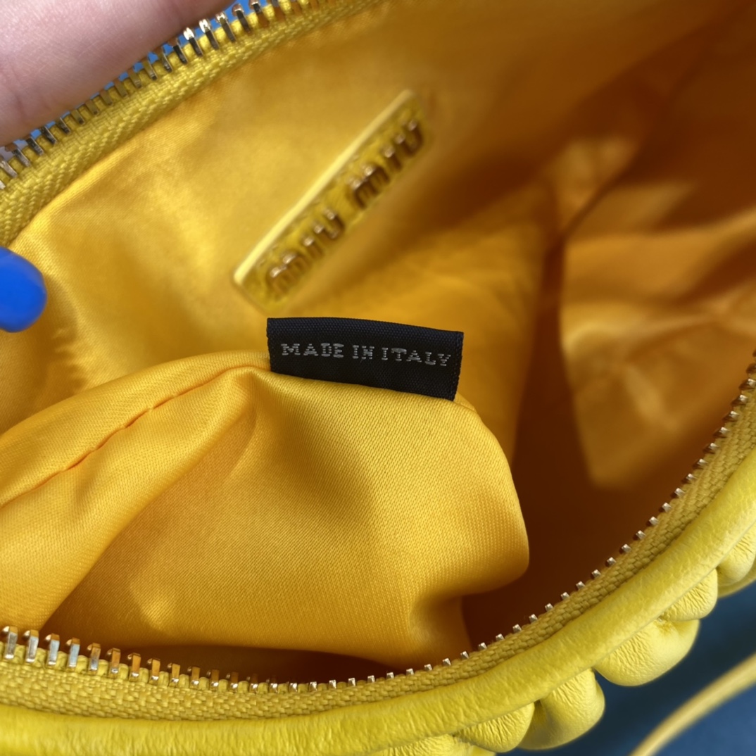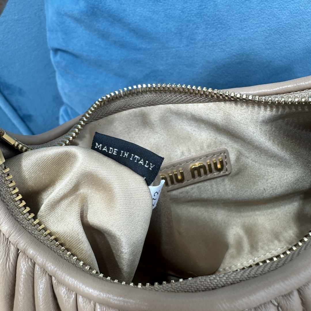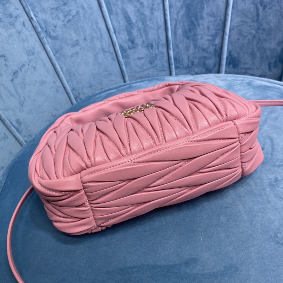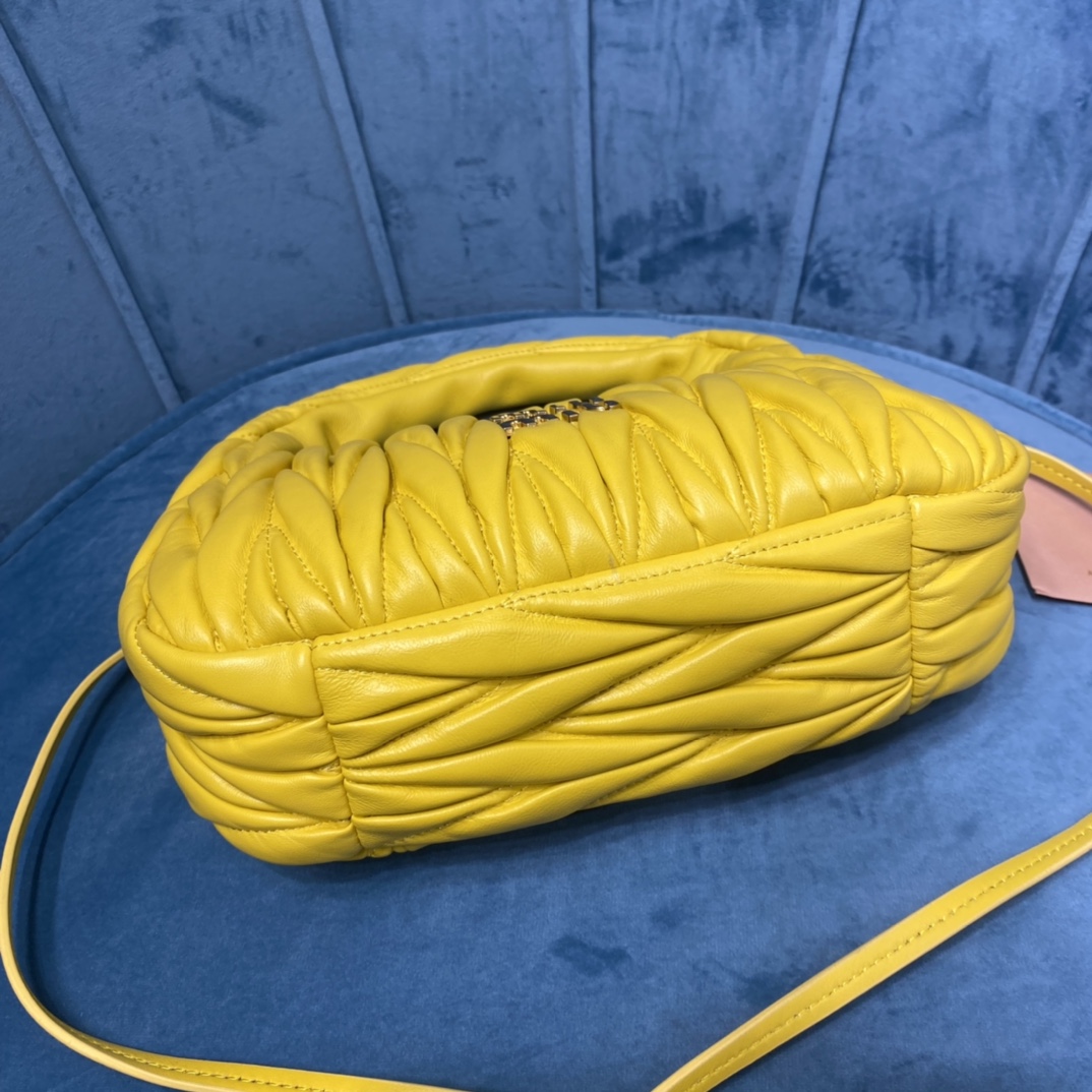 MiuMiu新品MiuWander手袋,采用进口小羊皮经典品牌标志性Matelasse纹理绣花,复古磨砂五金,利用圆孤的曲线,