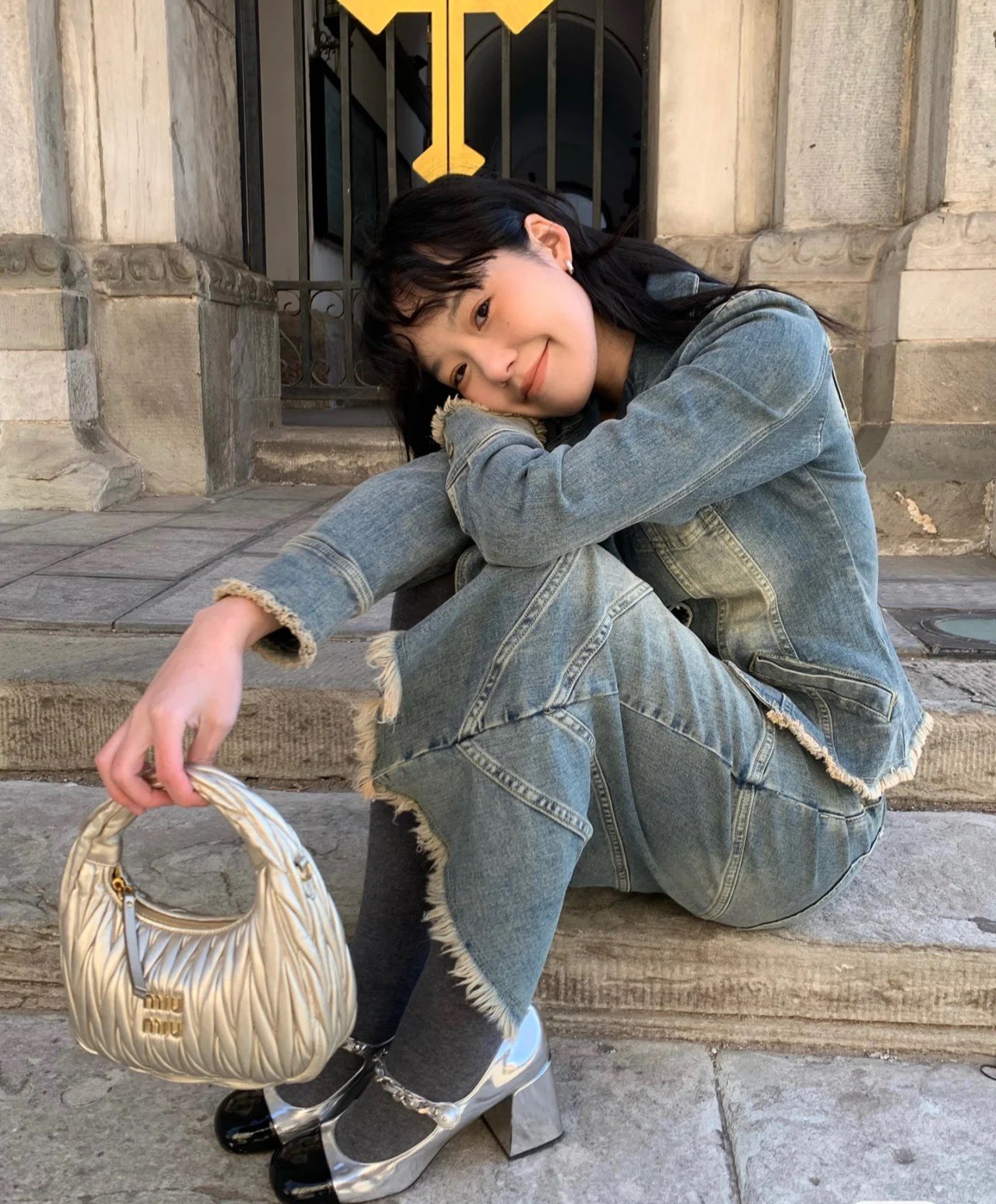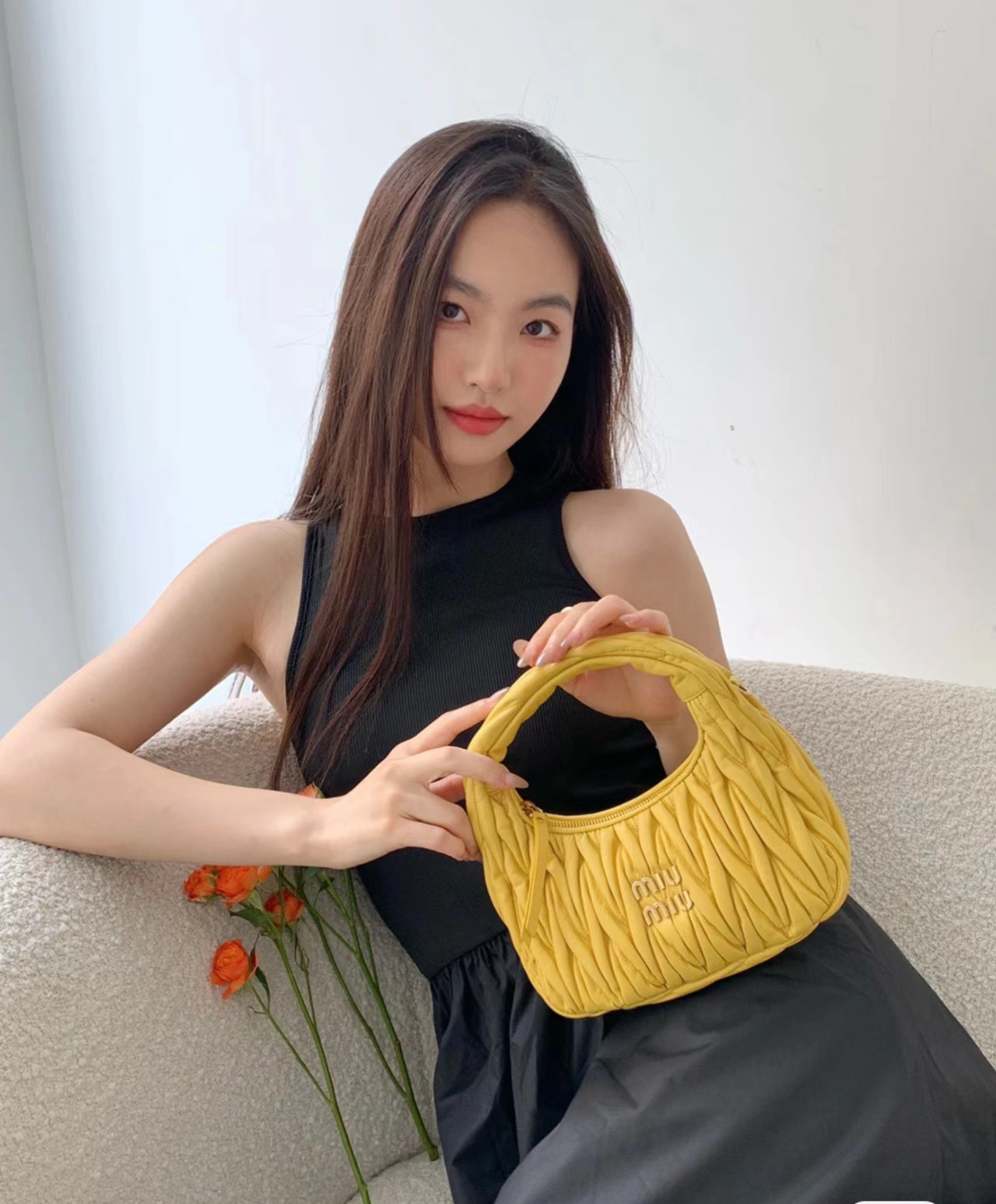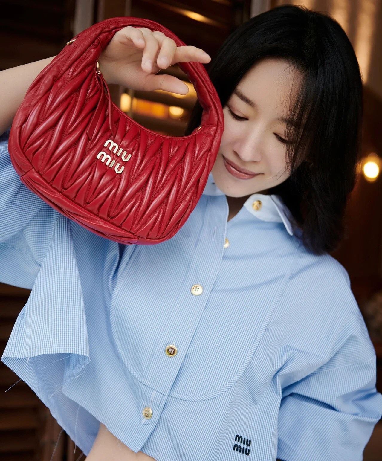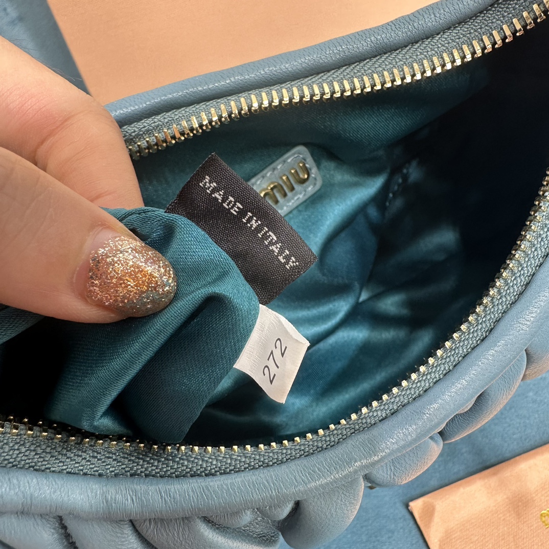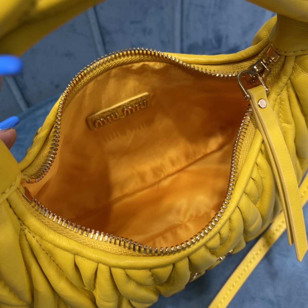 MiuMiu新品MiuWander手袋,采用进口小羊皮经典品牌标志性Matelasse纹理绣花,复古磨砂五金,利用圆孤的曲线,
