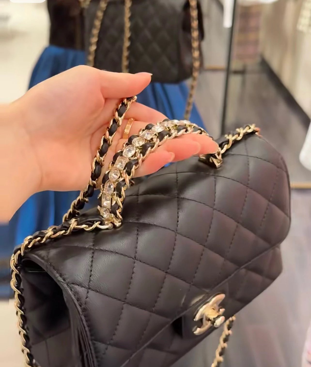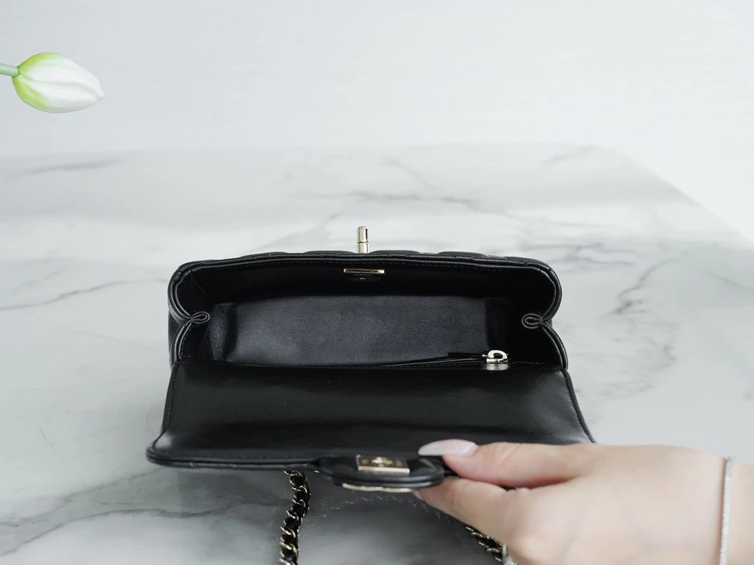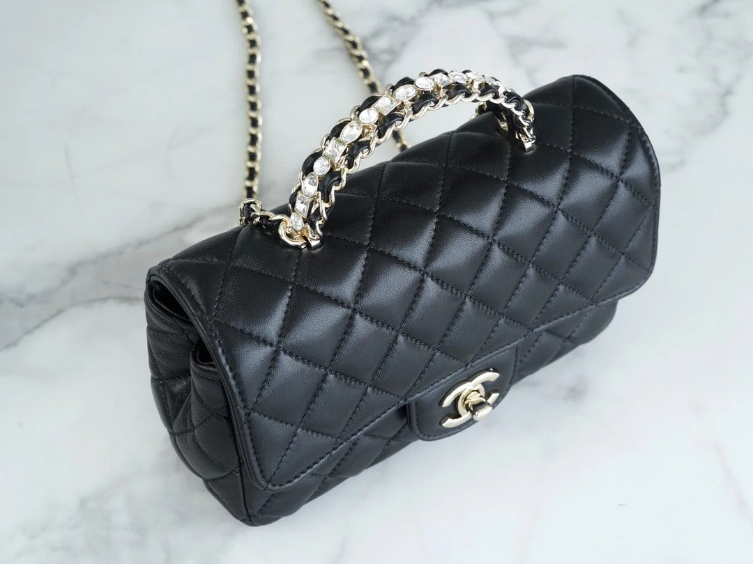 ?????? ???水钻手柄cf mini黑色〰️ 梦中情包再添一员~软糯的小羊皮材质,搭配bling bling的水钻手柄,耀眼又经典,妥妥的本季颜值天花板,瞬间爱上 尺寸:18*7*12cm