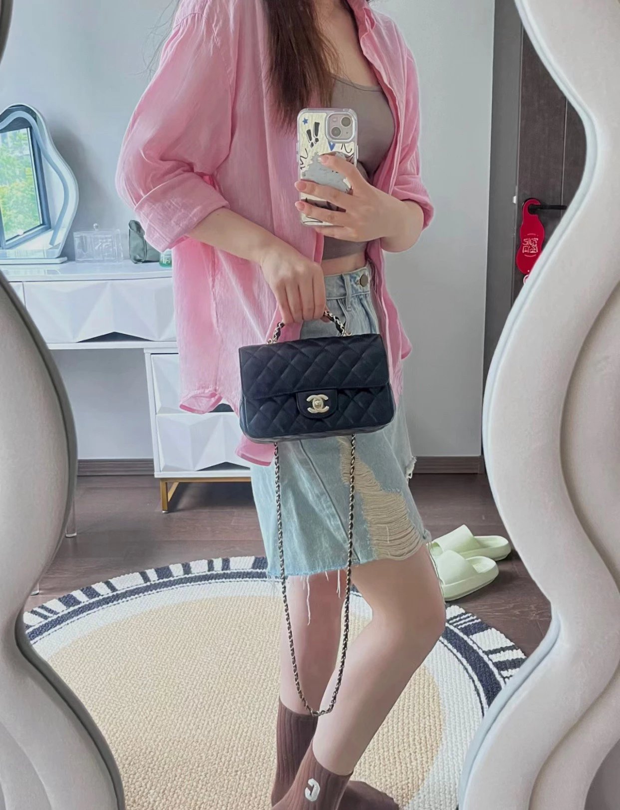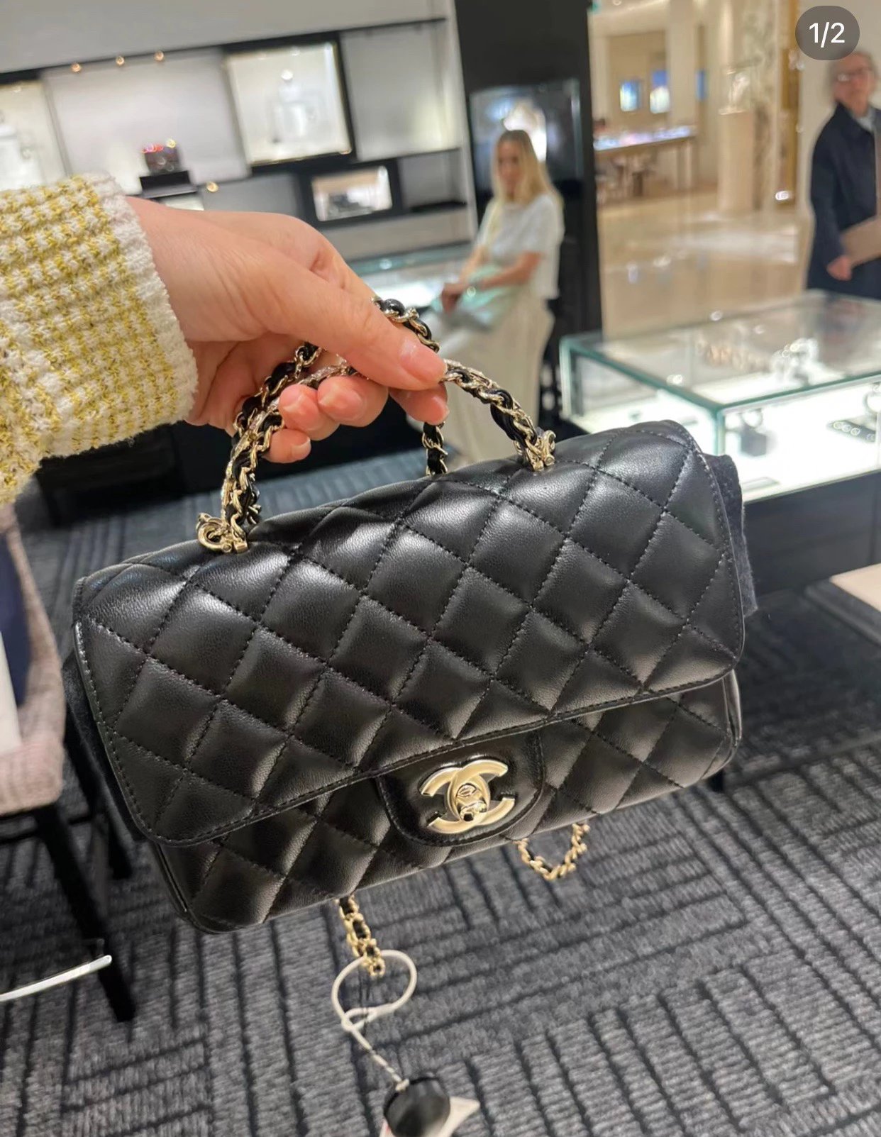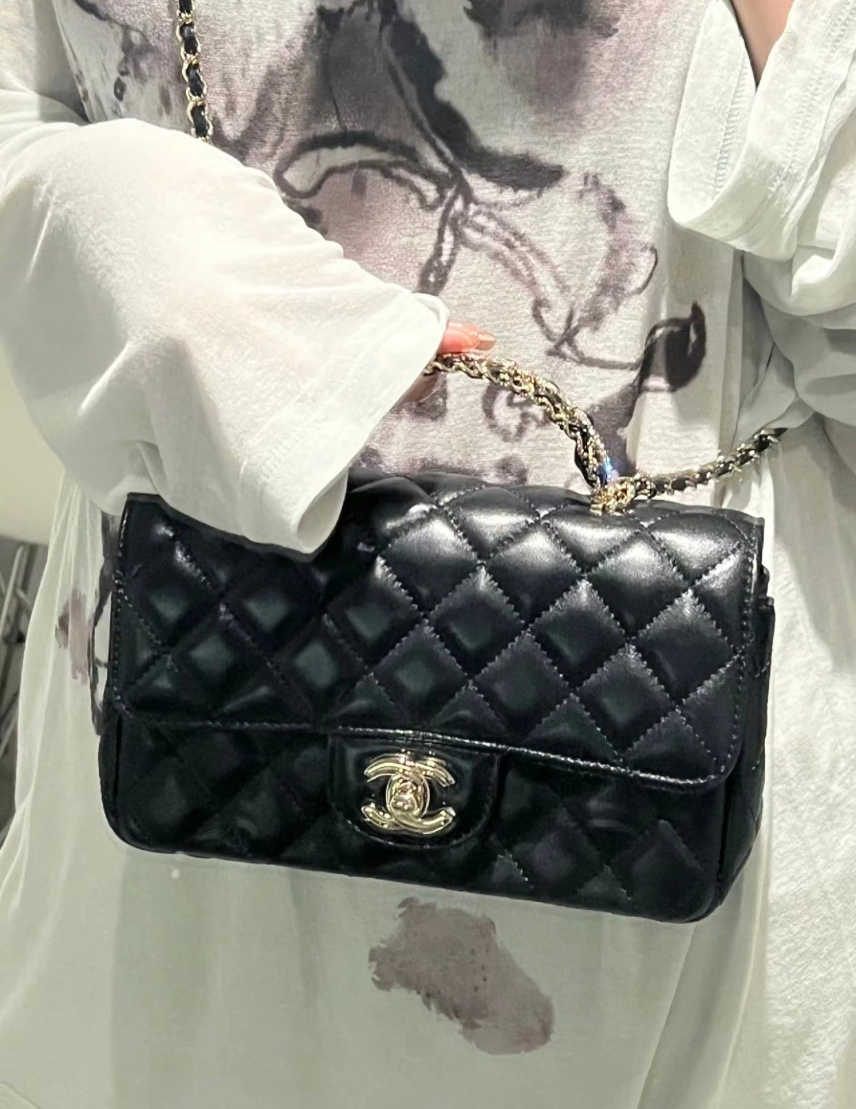 ?????? ???水钻手柄cf mini黑色〰️ 梦中情包再添一员~软糯的小羊皮材质,搭配bling bling的水钻手柄,耀眼又经典,妥妥的本季颜值天花板,瞬间爱上 尺寸:18*7*12cm