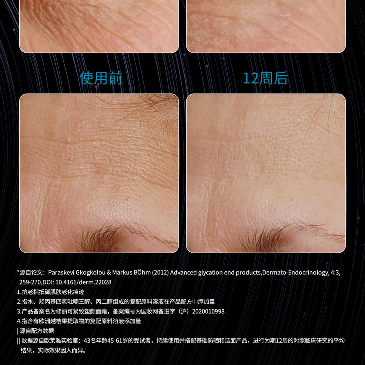 4.使用化妆品过程中出现红斑,红肿,痒,刺激等异常情况,请立即停止使用该产品并向皮肤科医生进行相关咨询。