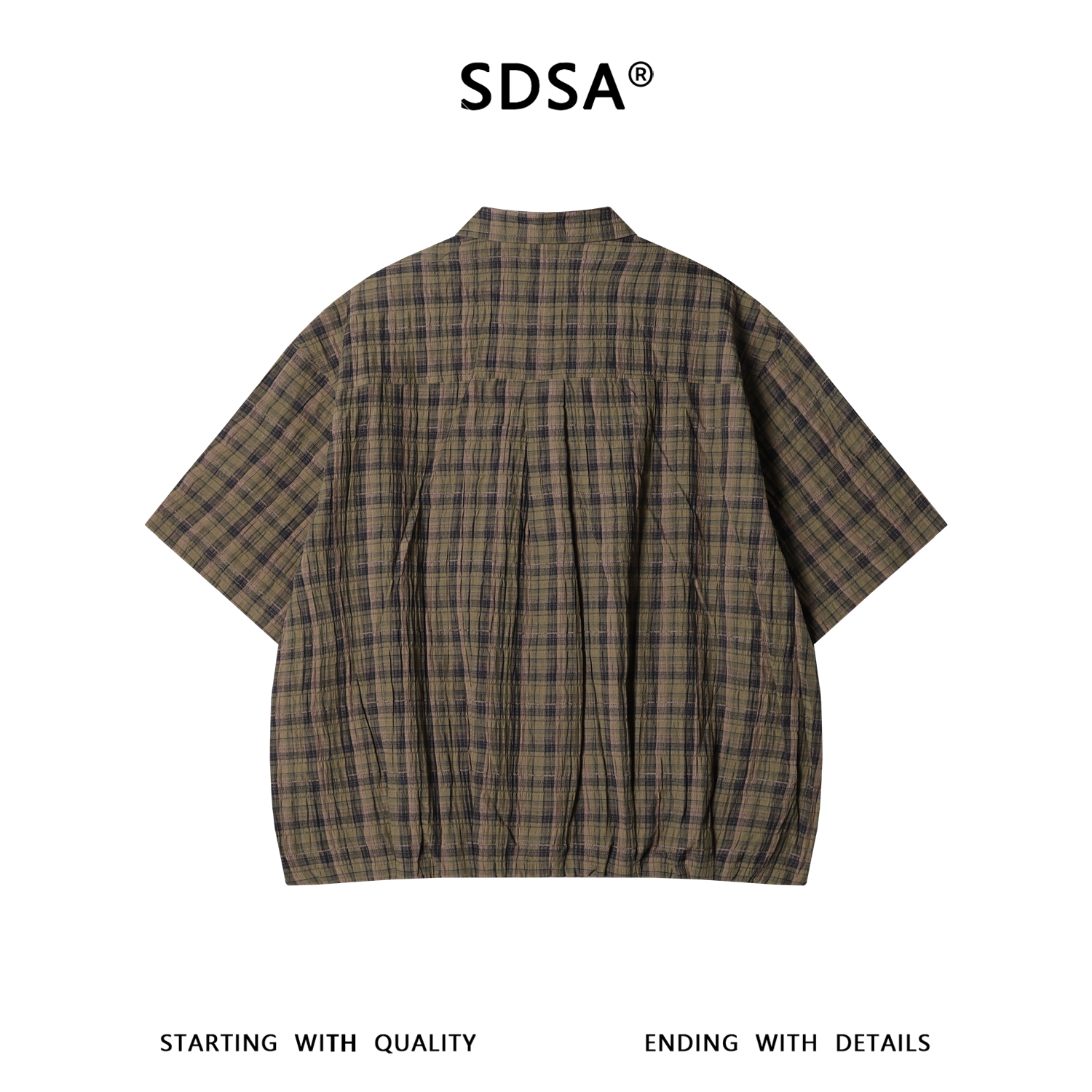 SDSA男装2026新款高贵轻奢港风复古撞色格子短袖衬衫百搭简约上衣