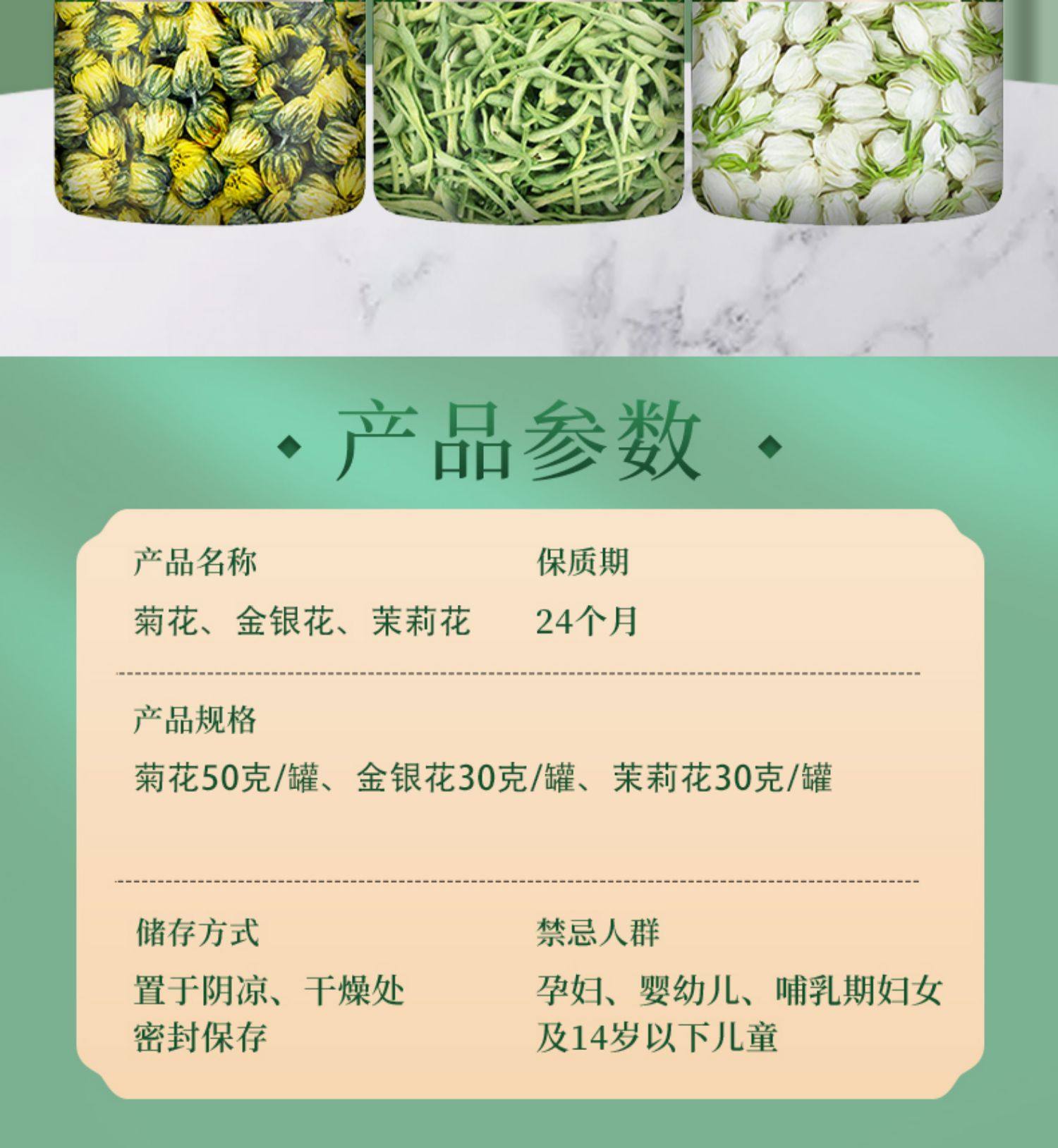 金银花菊花茉莉花干正品官方旗舰店中药材野生特级去火清热解毒茶