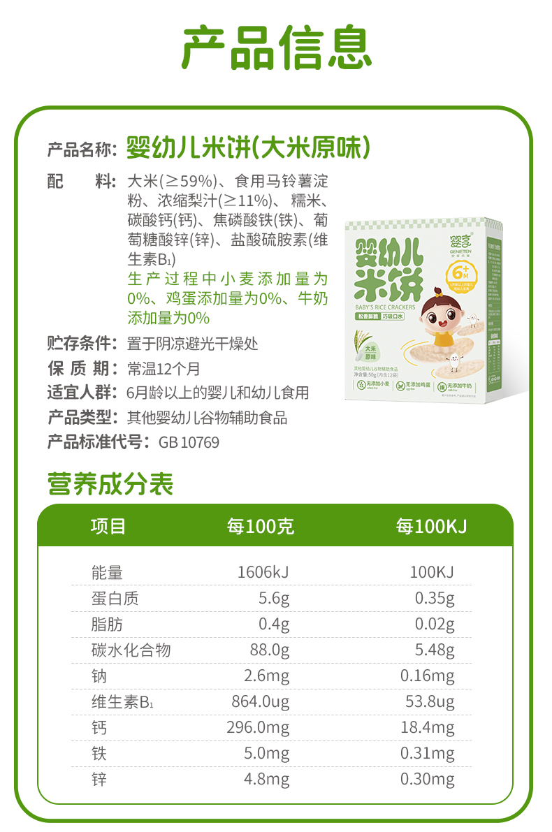 婴享婴幼儿米饼6个月无小麦无蛋奶无麸质儿童饼干