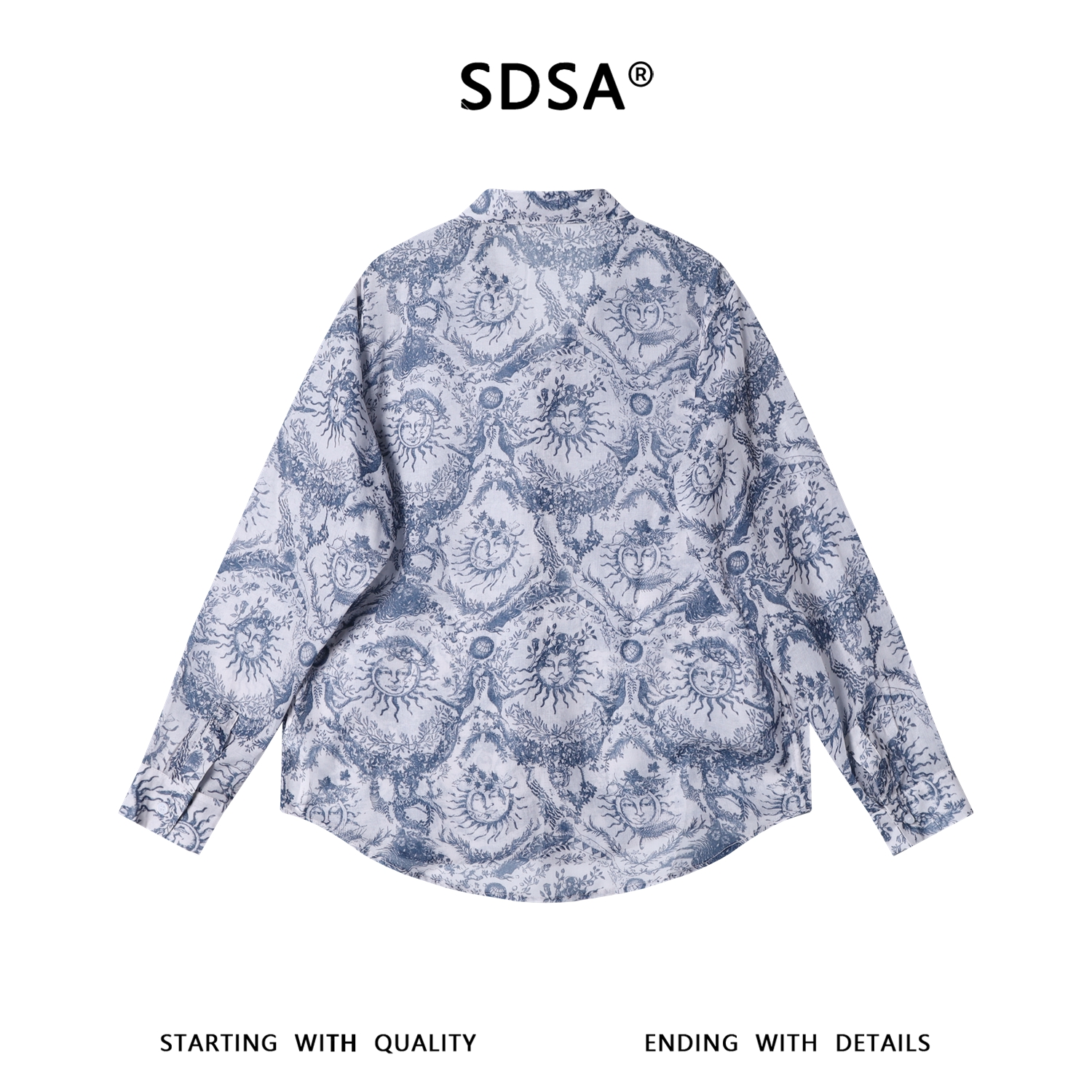 SDSA男装2026新款高贵轻奢复古新中式太阳神满印垂感长袖衬衫百搭