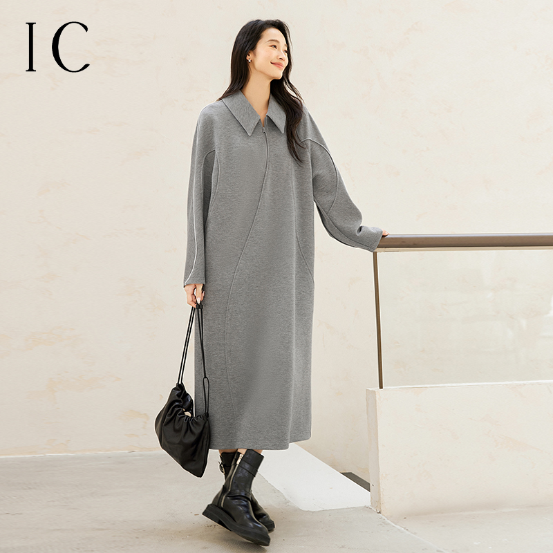 IC 新款秋冬设计感加厚气质针织连衣裙女优雅高级通勤裙子