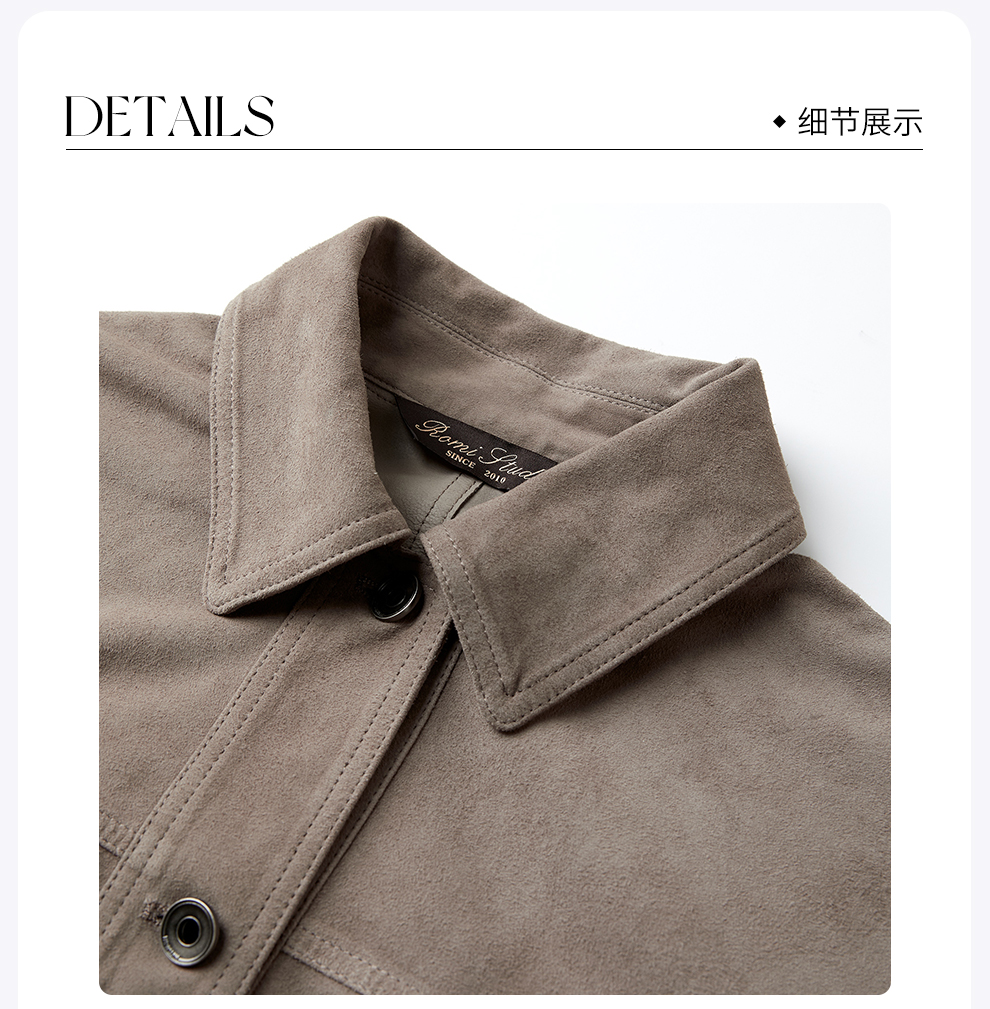 ROMI STUDIO“棕标甄选”进口小羊皮卓越质感翻领皮夹克 RWCWWG5998