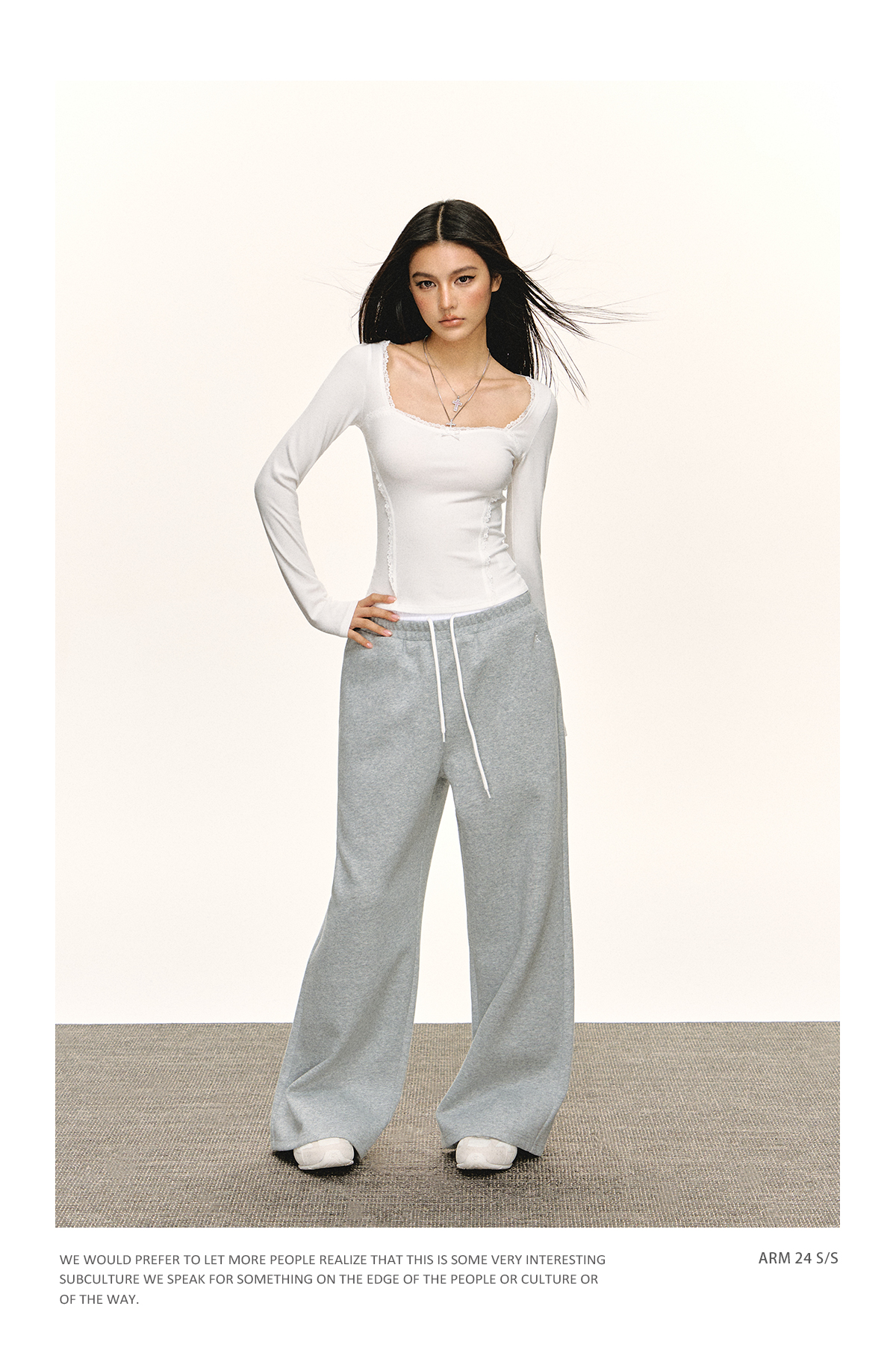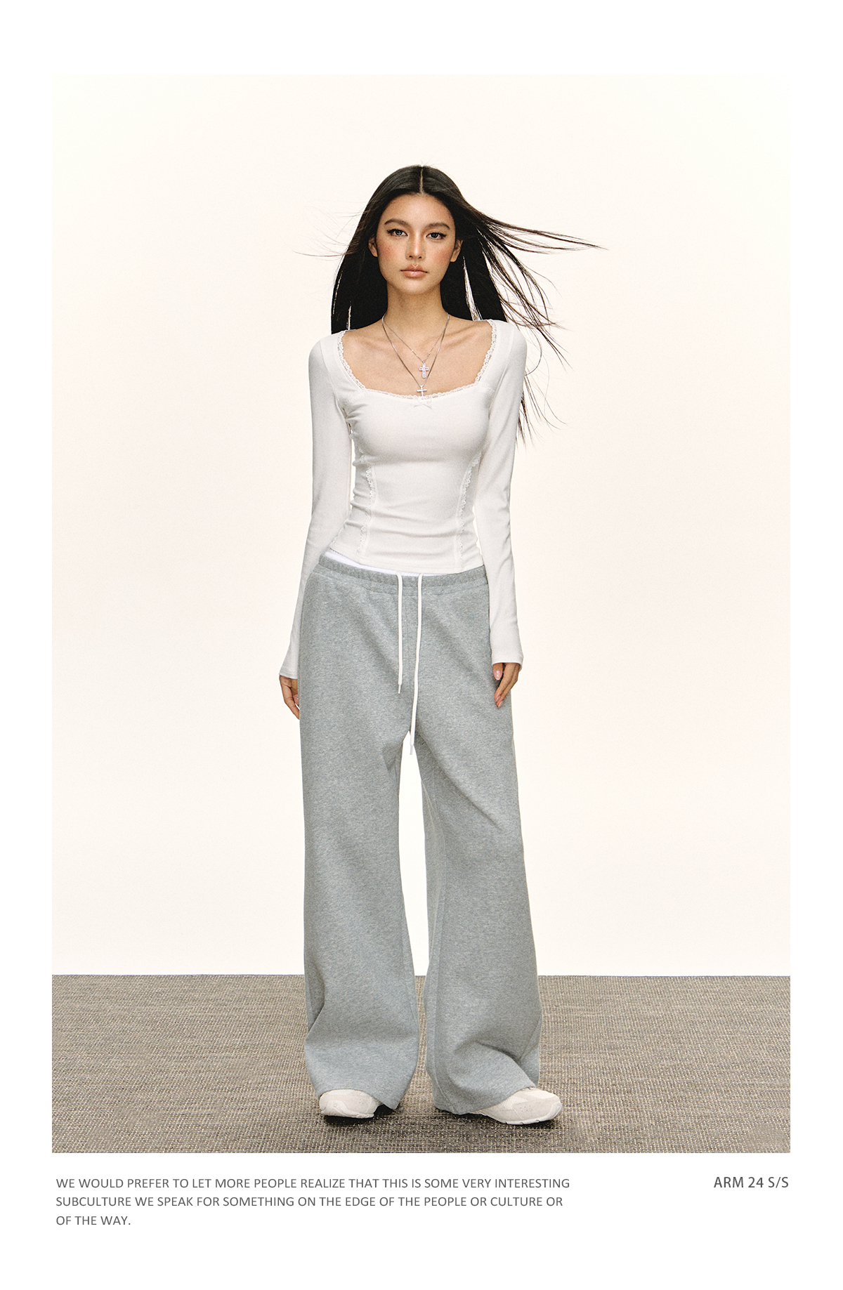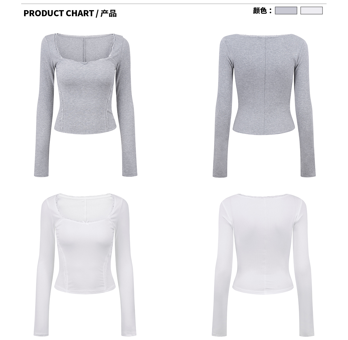 Ariseism 美式复古蕾丝领长袖t恤女春秋新款修身内搭打底上衣