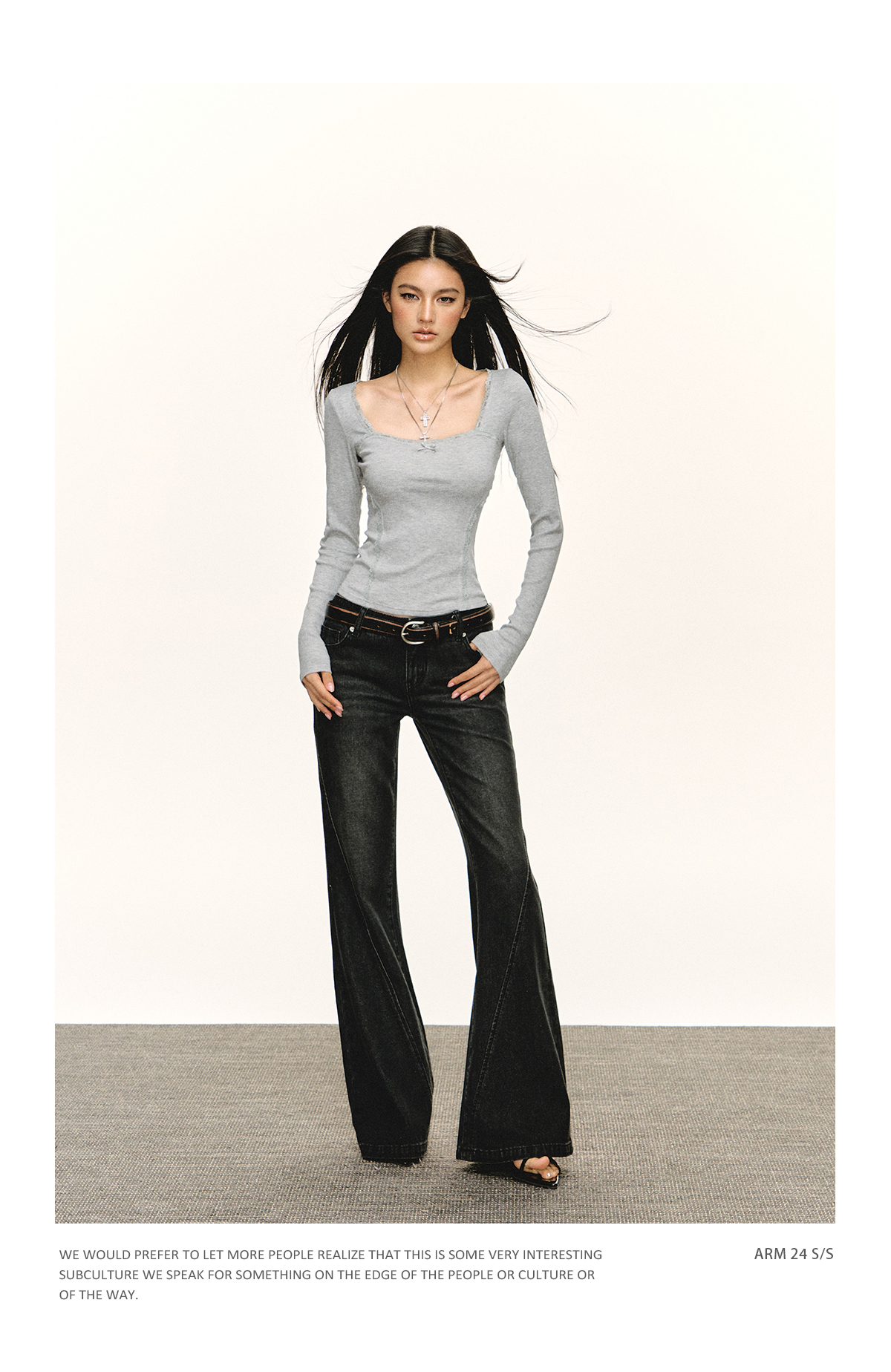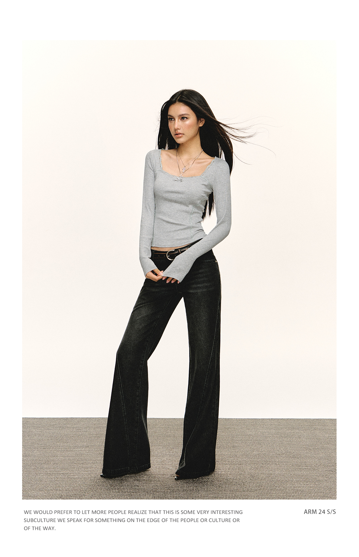 Ariseism美式复古高级感一字肩长袖针织衫女春季新款内搭打底上衣