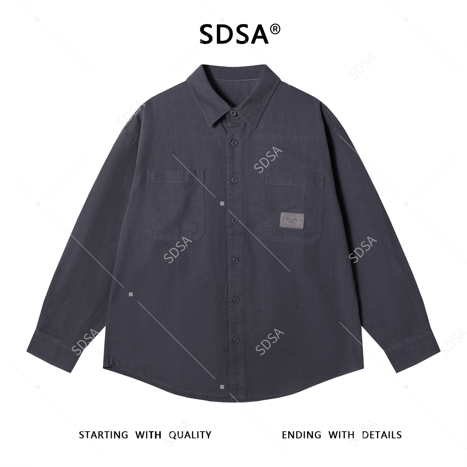 SDSA男士秋冬新款痞帅男装韩版休闲纯色口袋纽扣翻领长袖衬衫百搭
