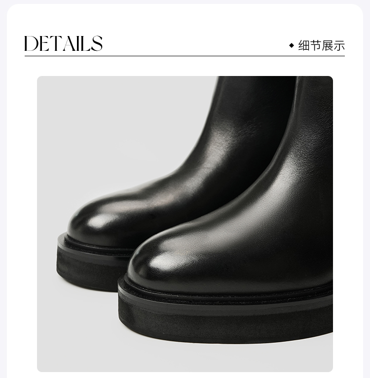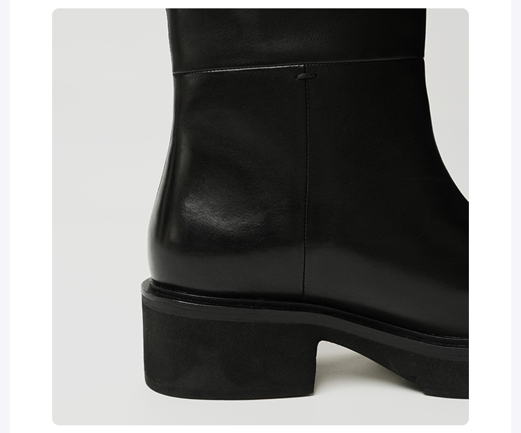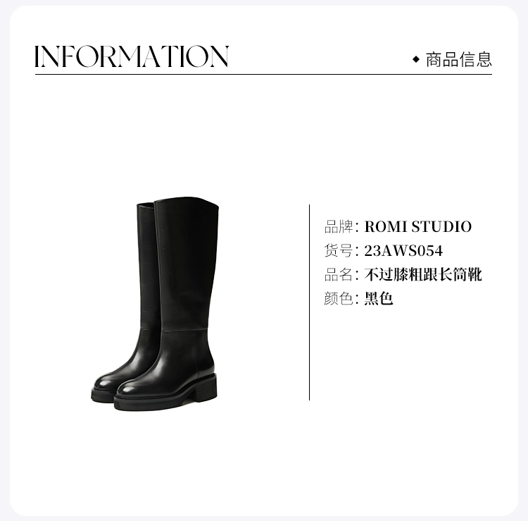 ROMI STUDIO“经典升级”头层牛皮斜口不过膝粗跟长筒靴23AWS054