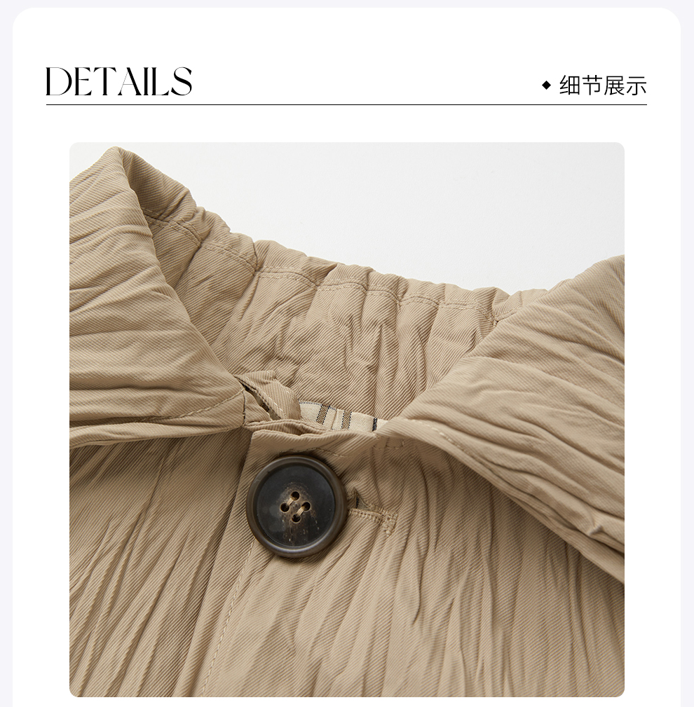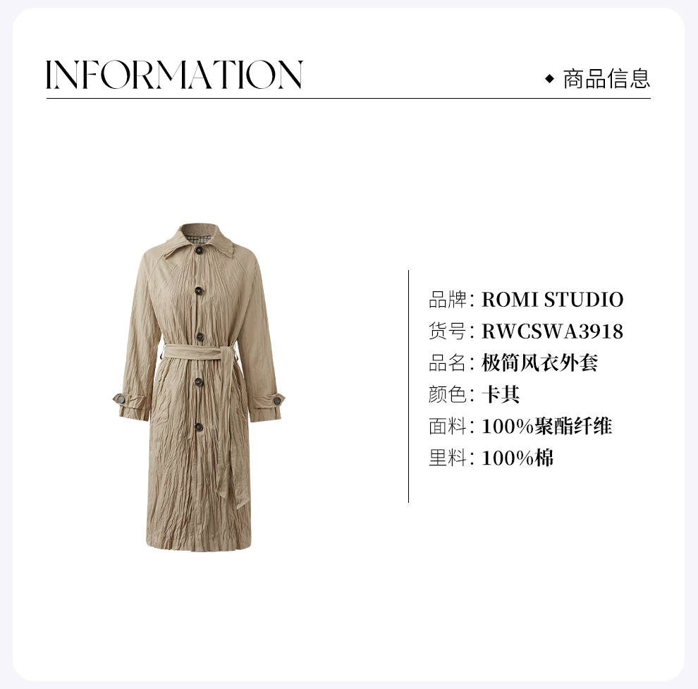 ROMI STUDIO 独特肌理感不规则褶皱翻领收腰风衣外套 RWCSWA3918