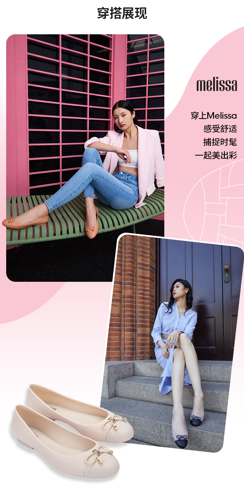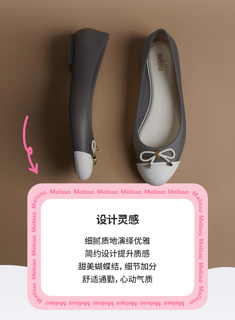 Melissa/梅丽莎 春季新款蝴蝶结低跟一脚蹬气质浅口单鞋32772