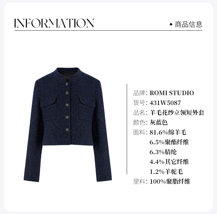 ROMI STUDIO“法式优雅”绵羊毛羊驼毛混纺花纱小香风外套 431W5087