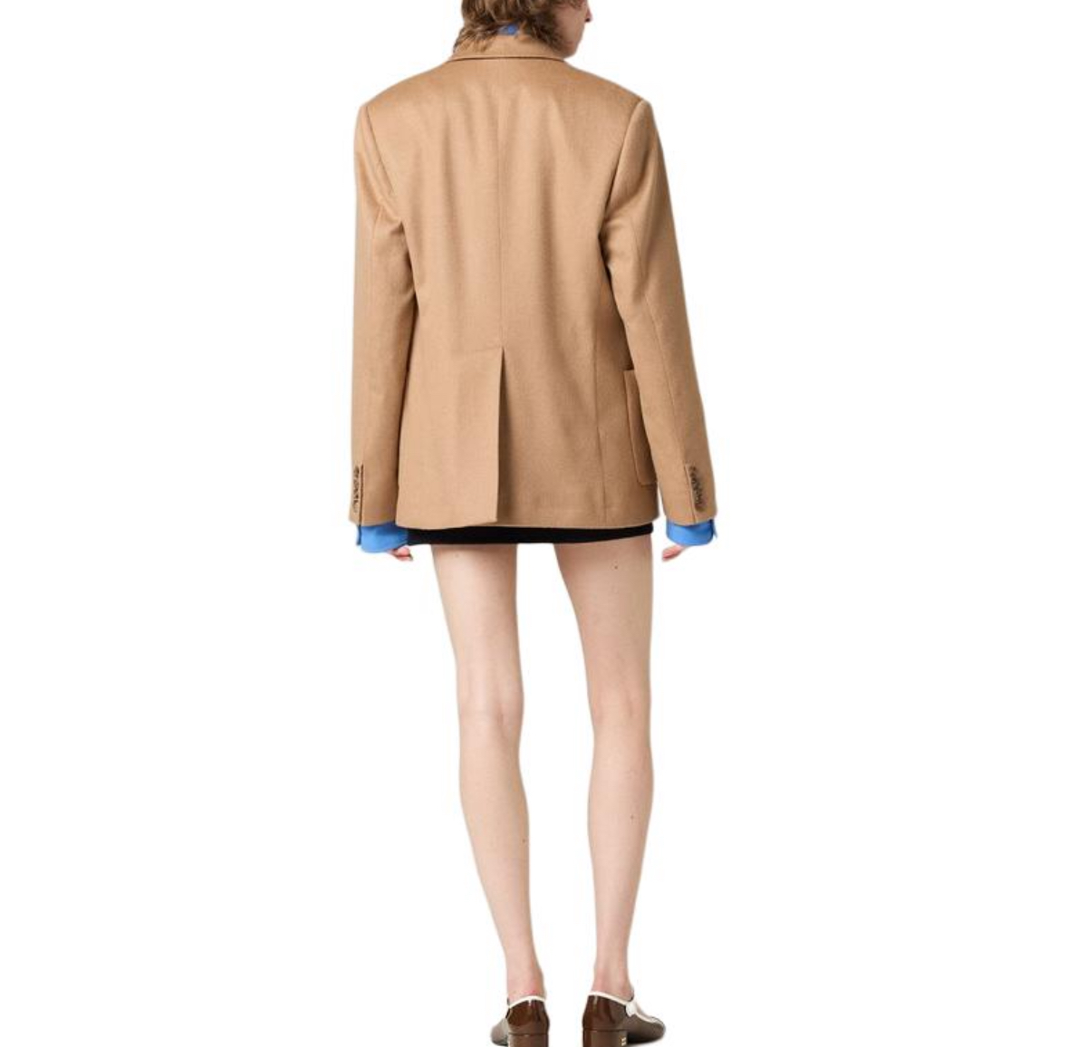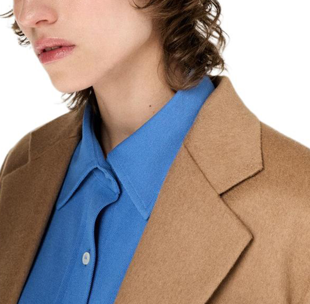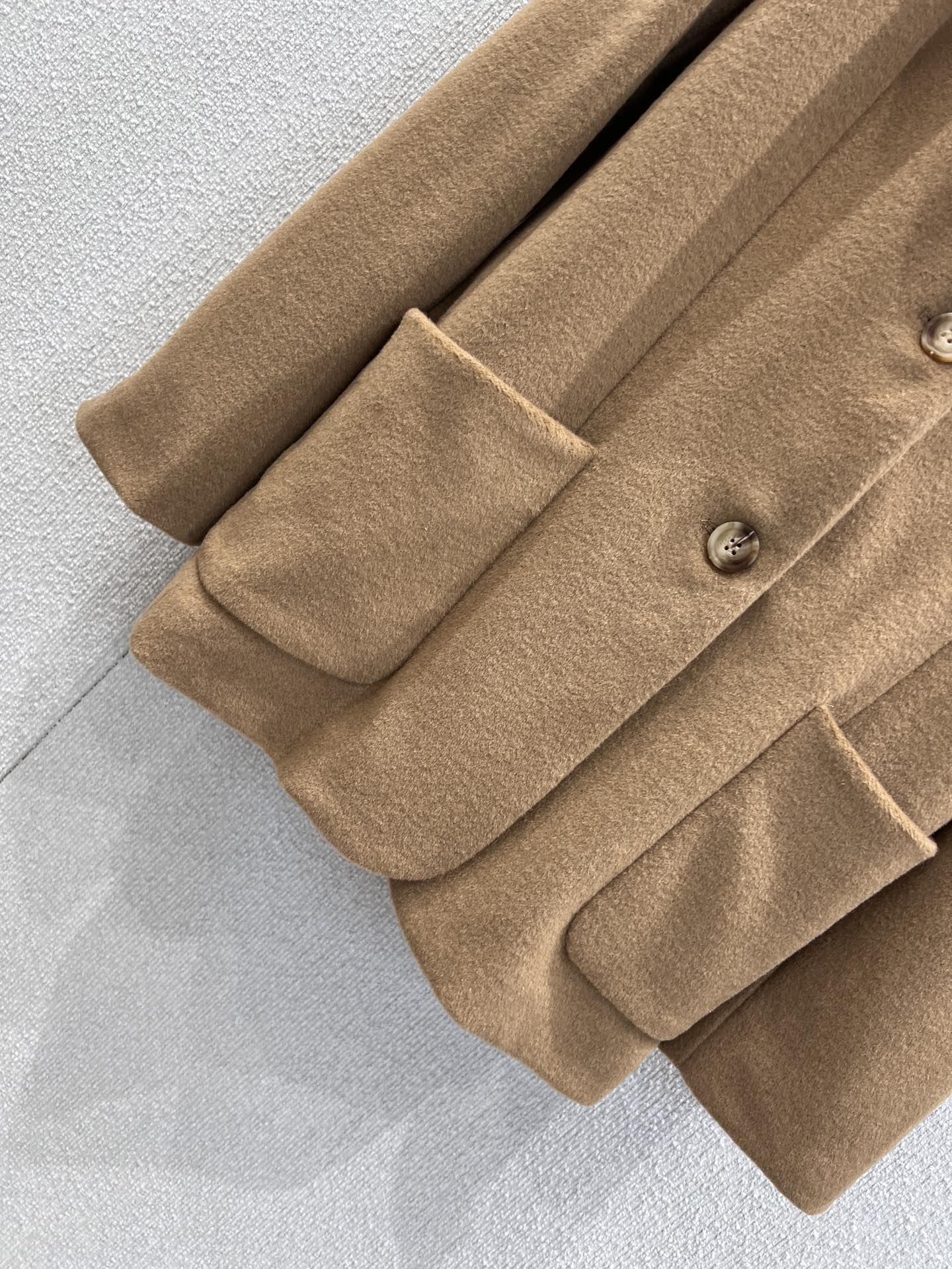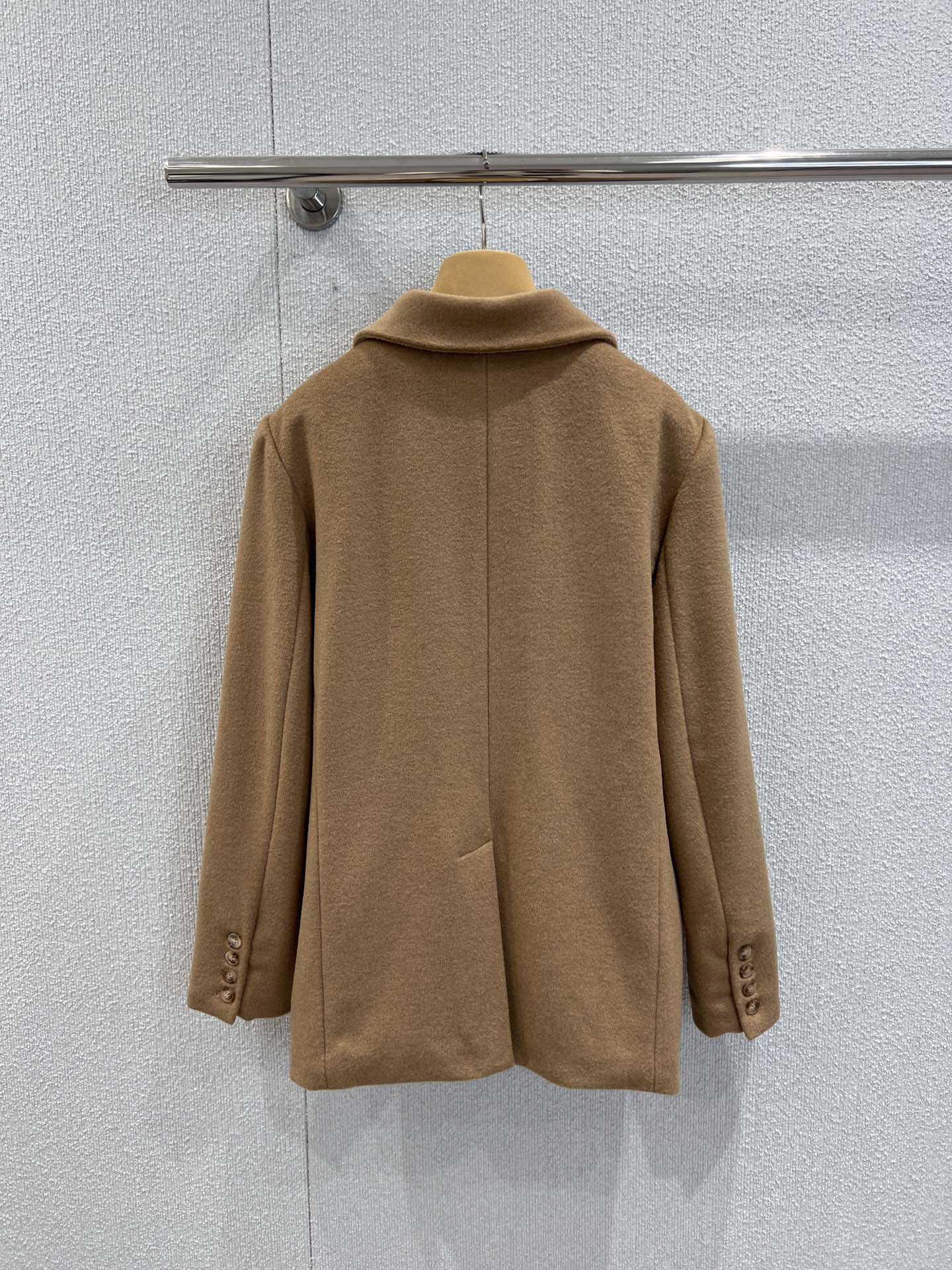 MiuMi* 25FW秋冬新款 贴布绣翻领西装外套丨⚠独家yb开发!高版出品!驼色羊毛面料自带高级质感,经典翻领+双排扣设计是通勤装的优雅底色,而胸口的品牌贴布绣细节,又悄悄泄露了Miu式少女的俏皮心思。宽松剪裁弱化了西装的正式感,却在随性中保留了“上东区大小姐”的慵懒贵气,无论是单穿还是叠搭,都能轻松拿捏风格层次。