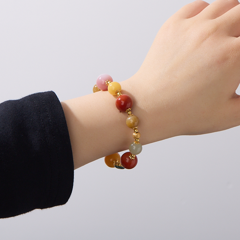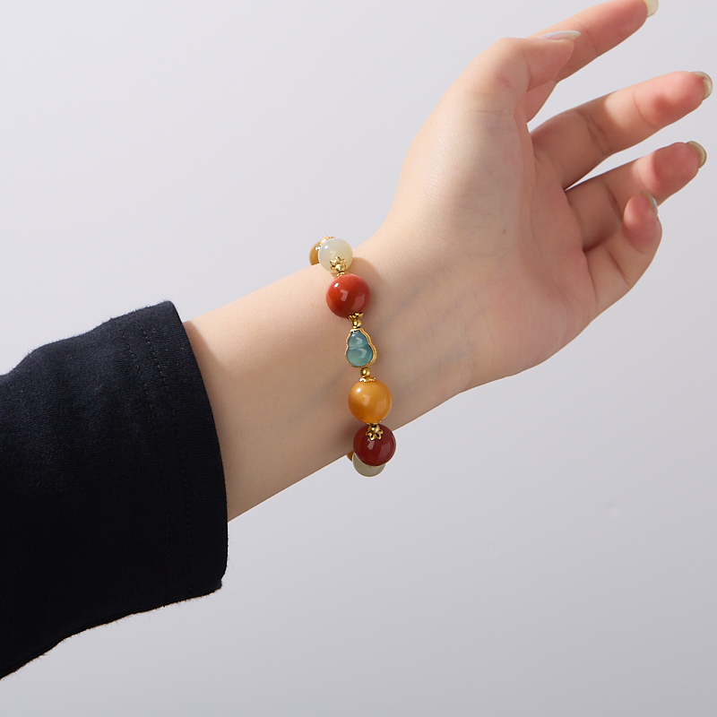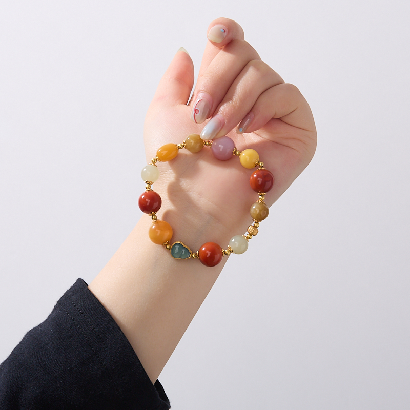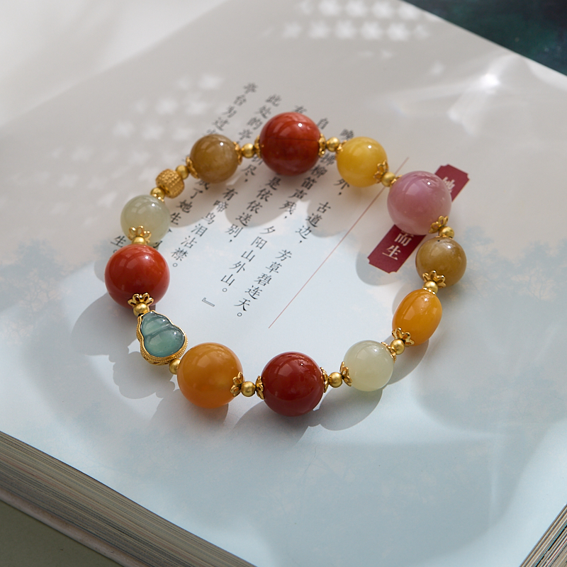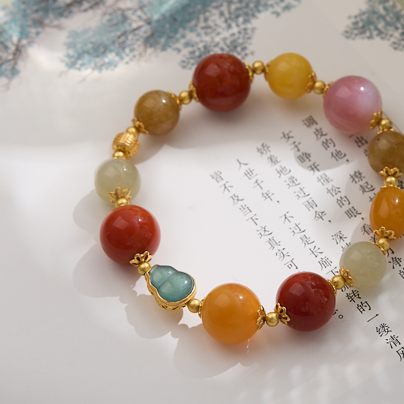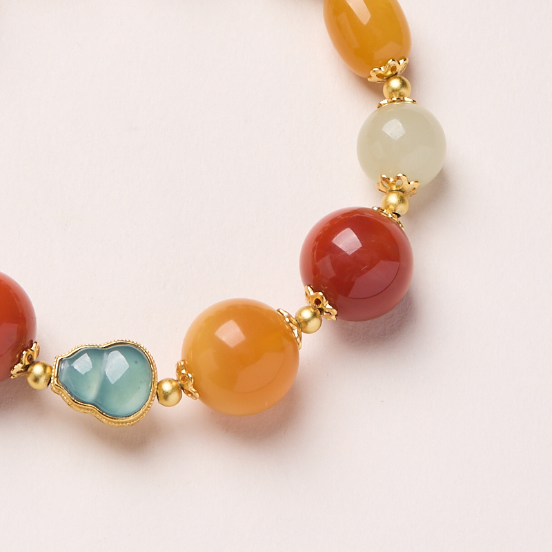 【普陀山】福运连绵 多宝手链14mm大蜜蜡 南红 925银 镀金 蓝水葫芦 多宝手链